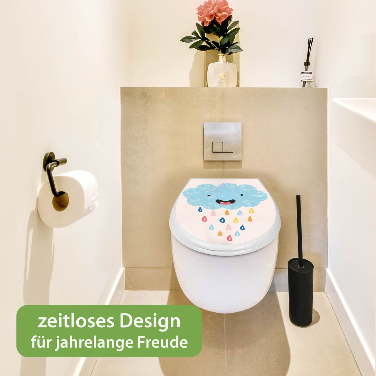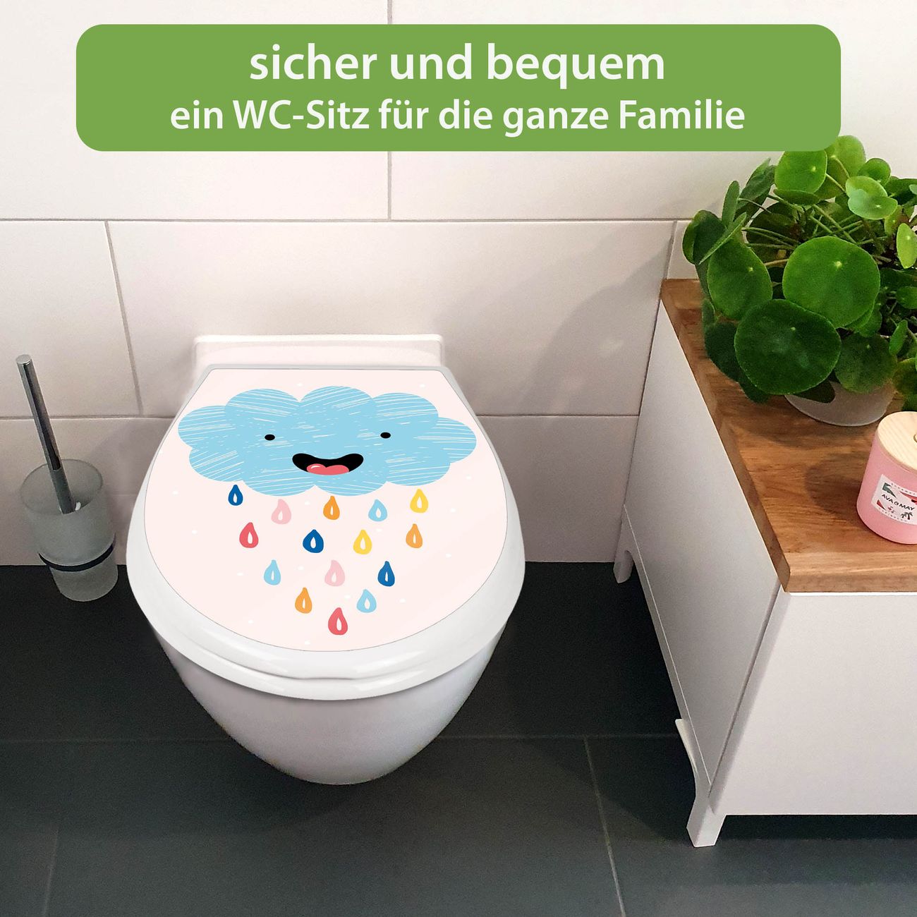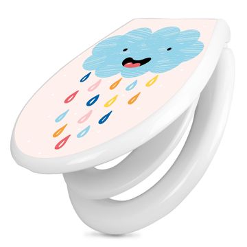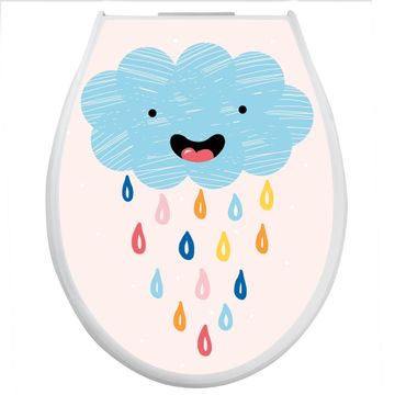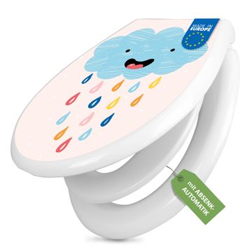 Toilettendeckel weiß mit Absenkautomatik Motiv glückliche Regenwolke