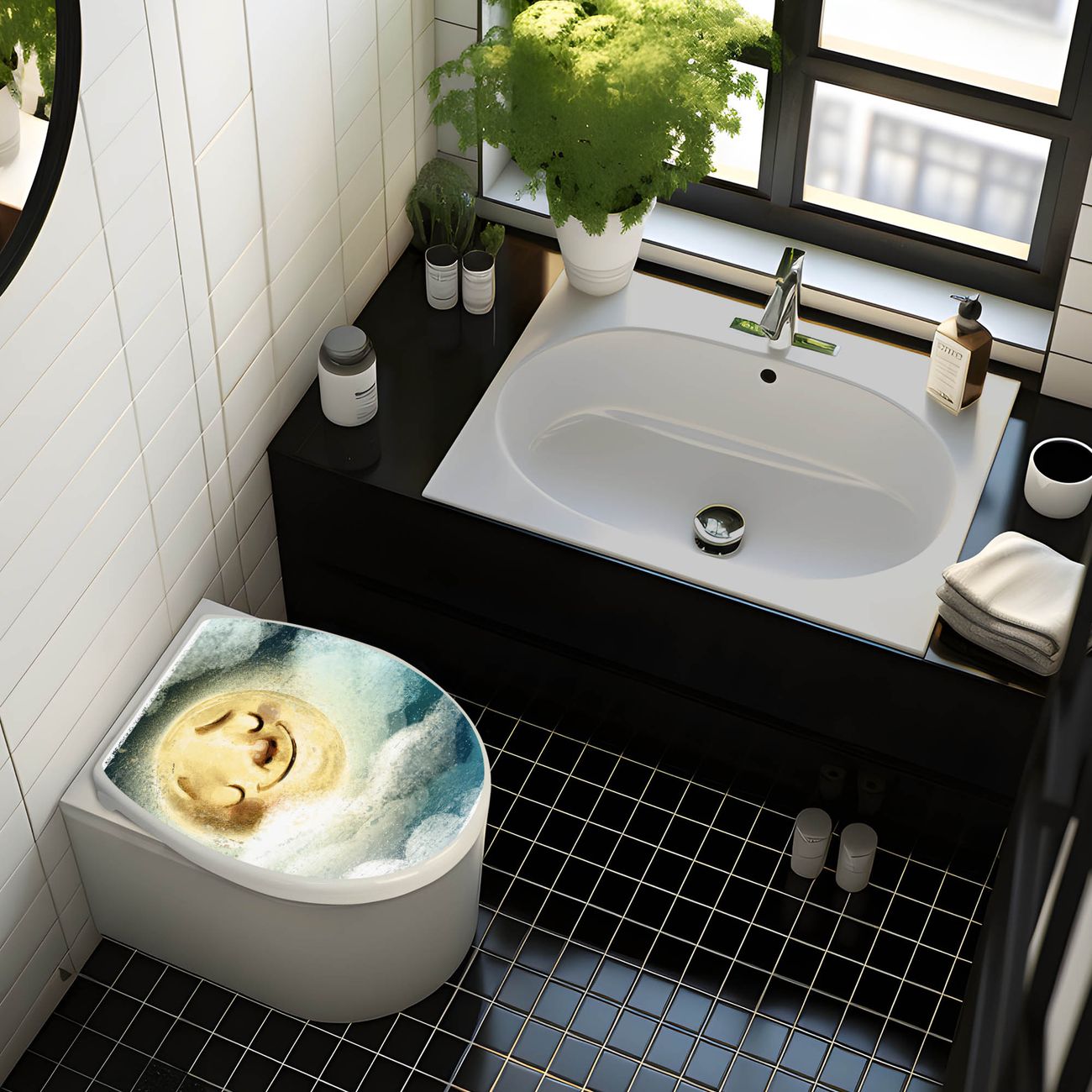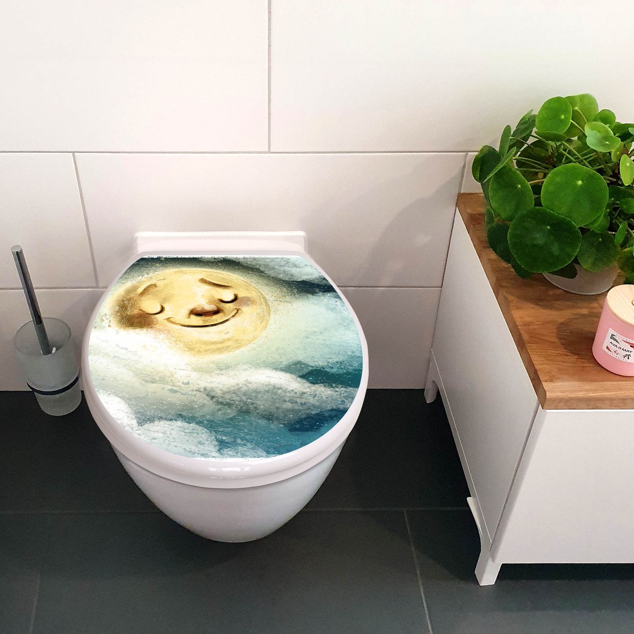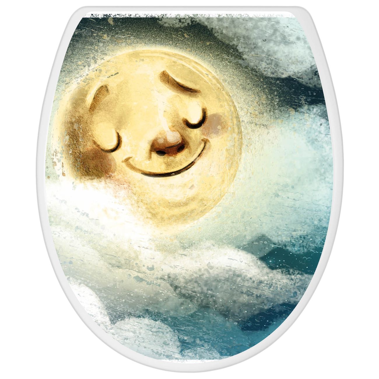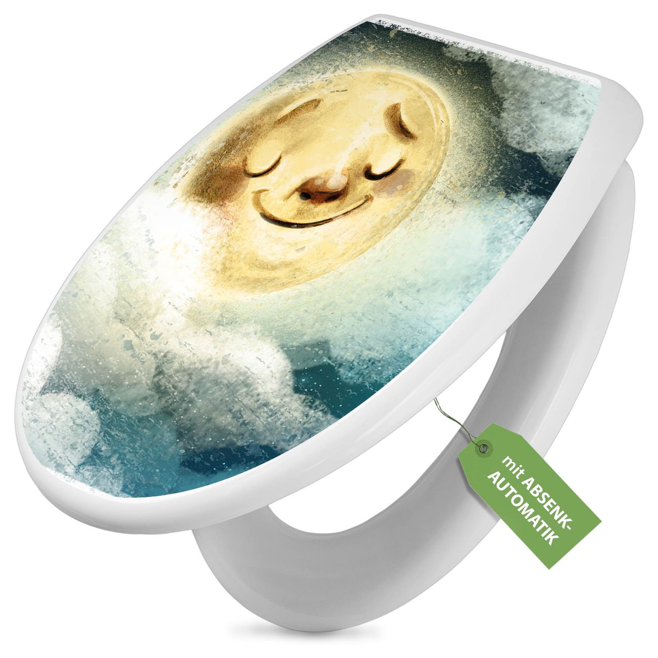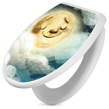 Toilettendeckel weiß mit Absenkautomatik Motiv Glücksmond