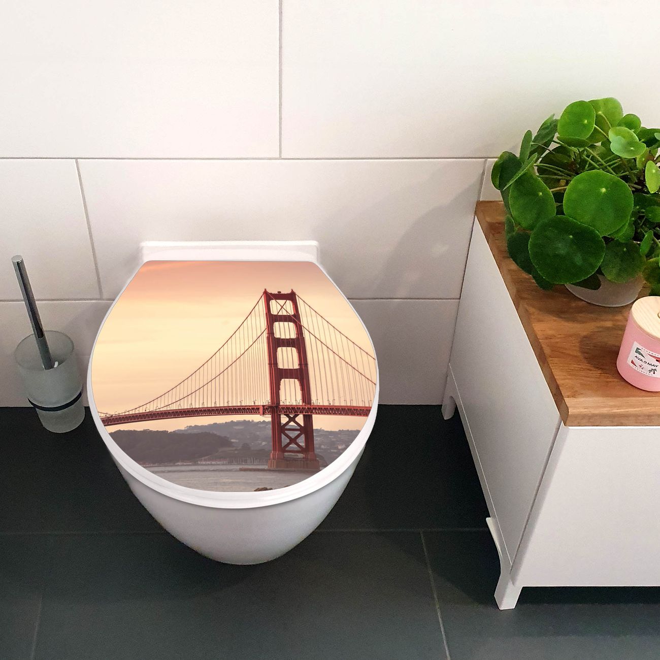 Toilettendeckel weiß mit Absenkautomatik Motiv Golden Gate Bridge 2