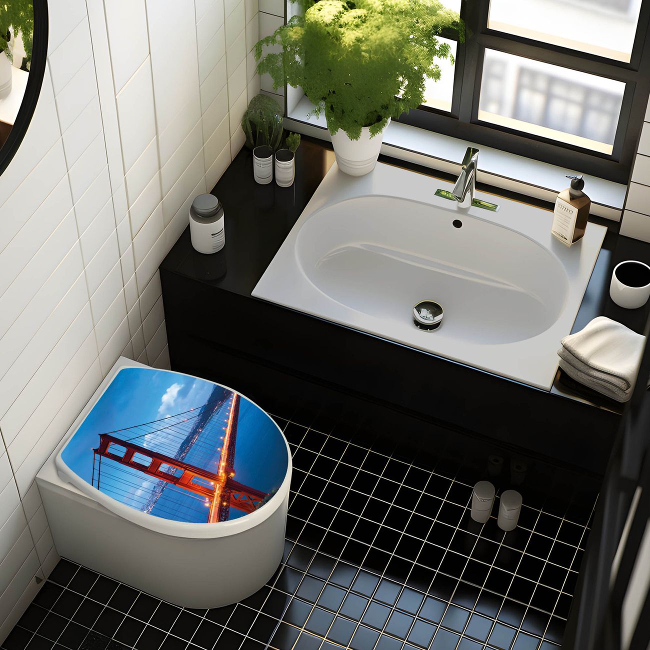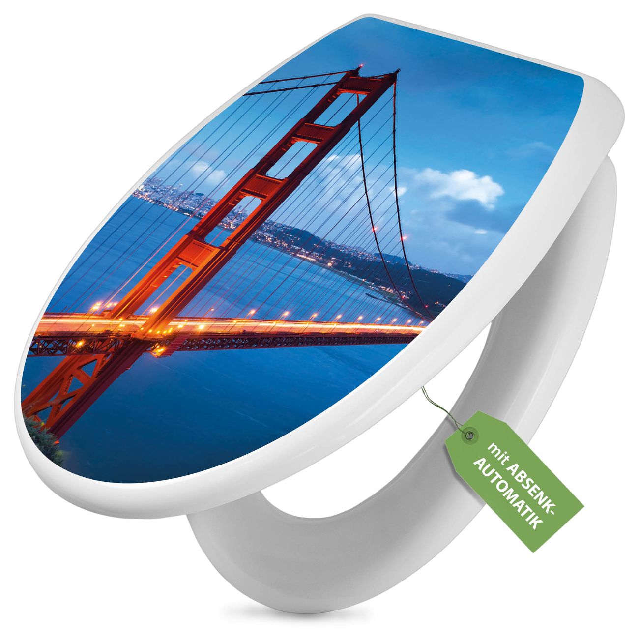 Toilettendeckel weiß mit Absenkautomatik Motiv Golden Gate Bridge