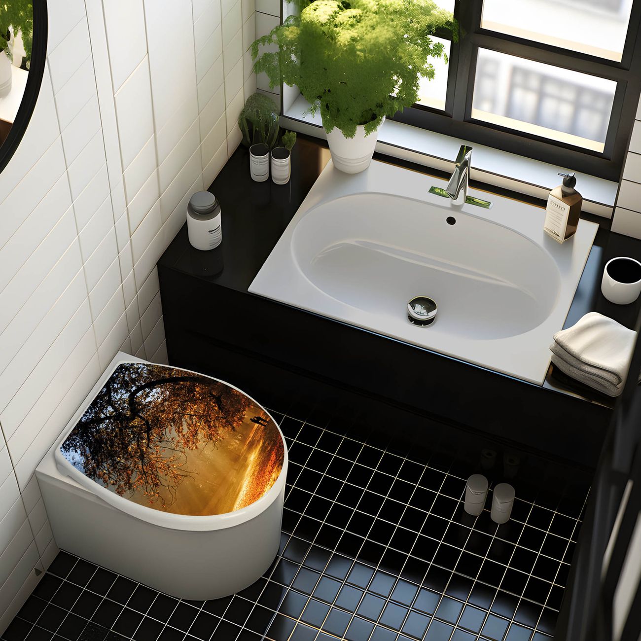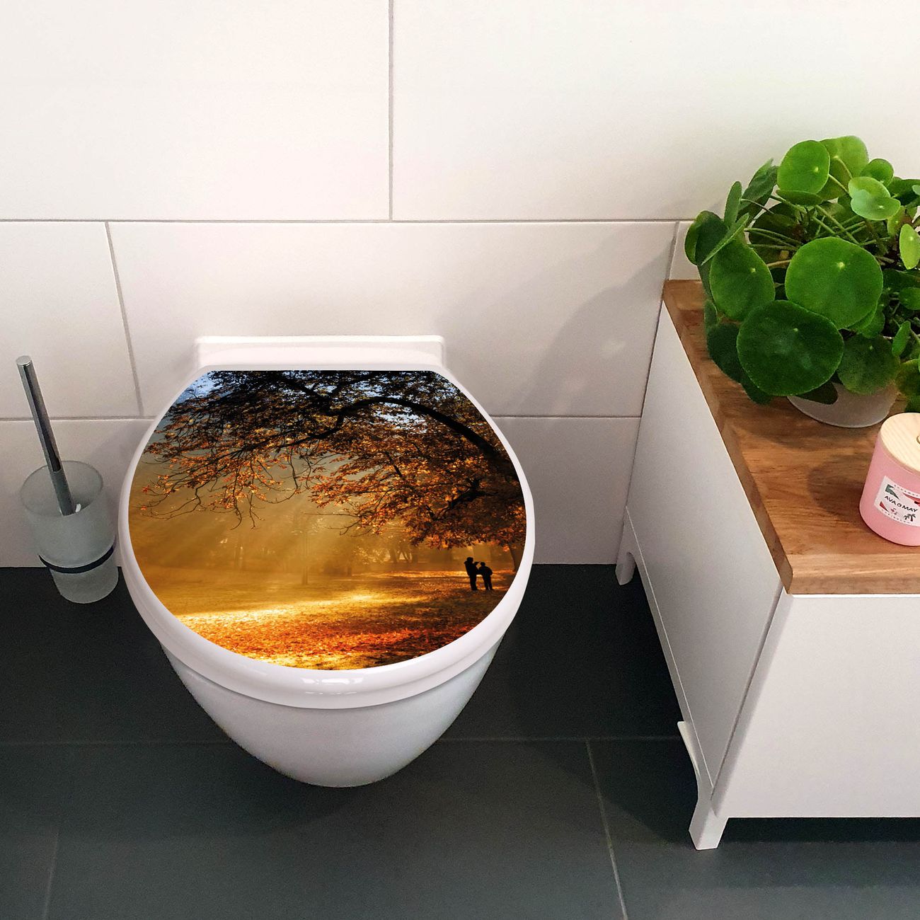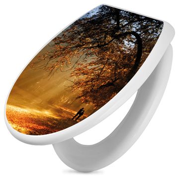 Toilettendeckel weiß mit Absenkautomatik Motiv Goldener Herbst