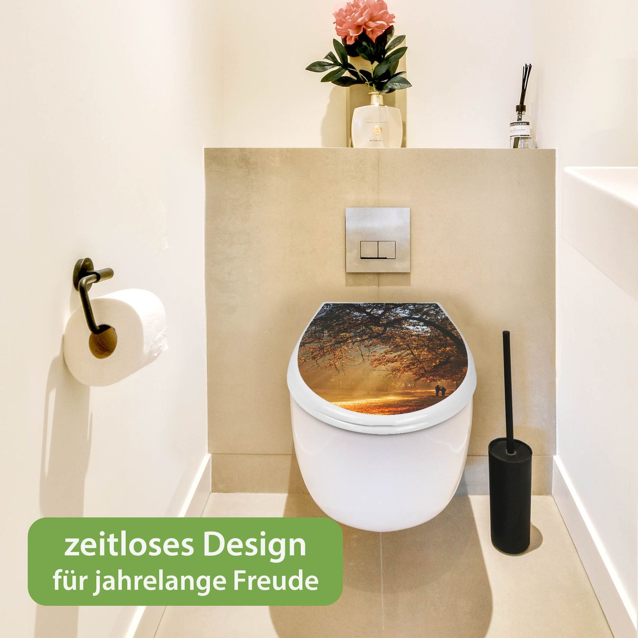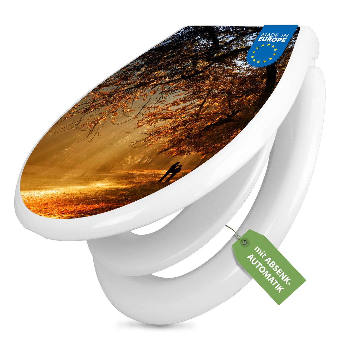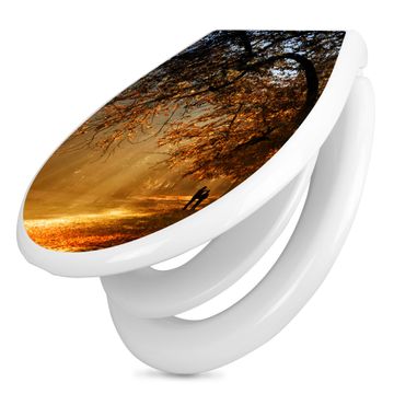 Toilettendeckel weiß mit Absenkautomatik Motiv Goldener Herbst