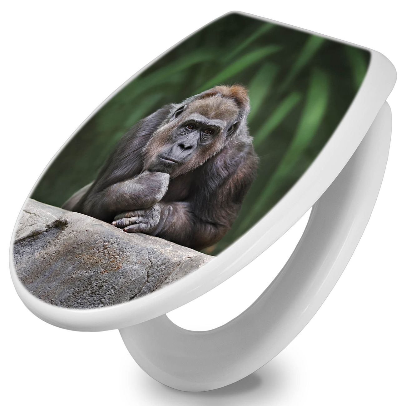Toilettendeckel weiß mit Absenkautomatik Motiv Gorilla