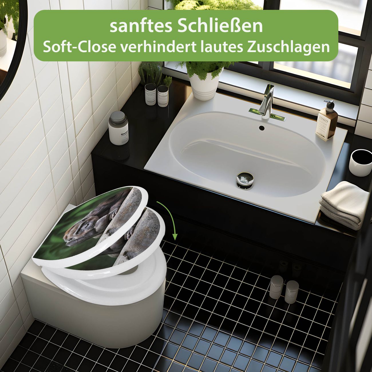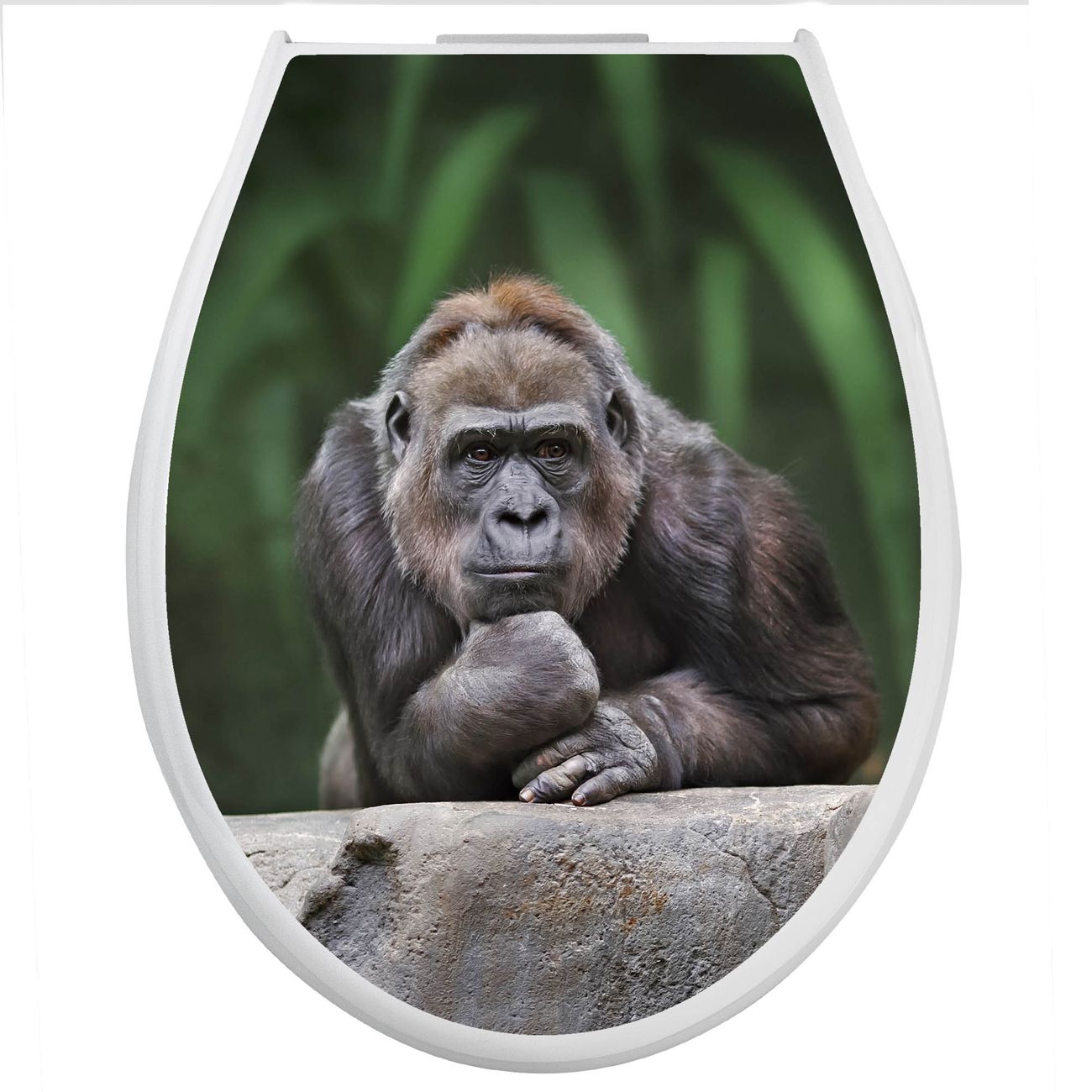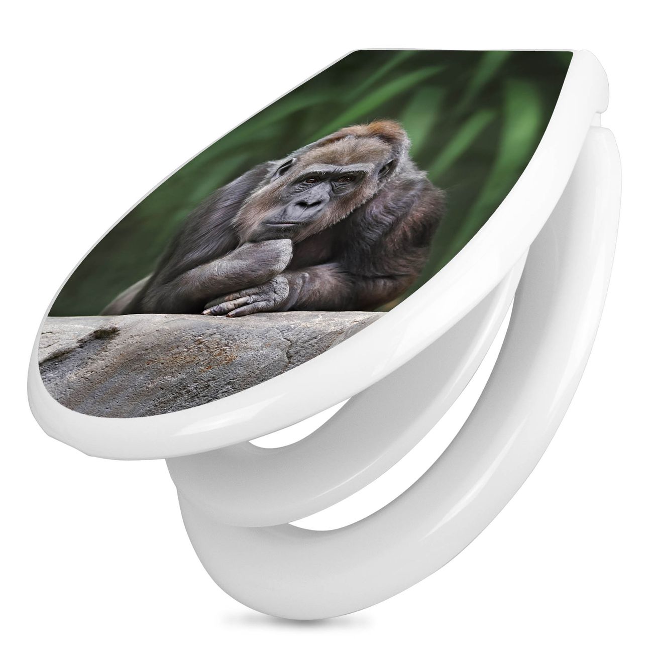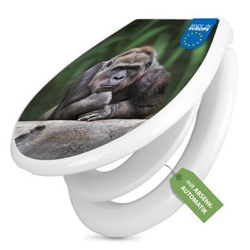 Toilettendeckel weiß mit Absenkautomatik Motiv Gorilla