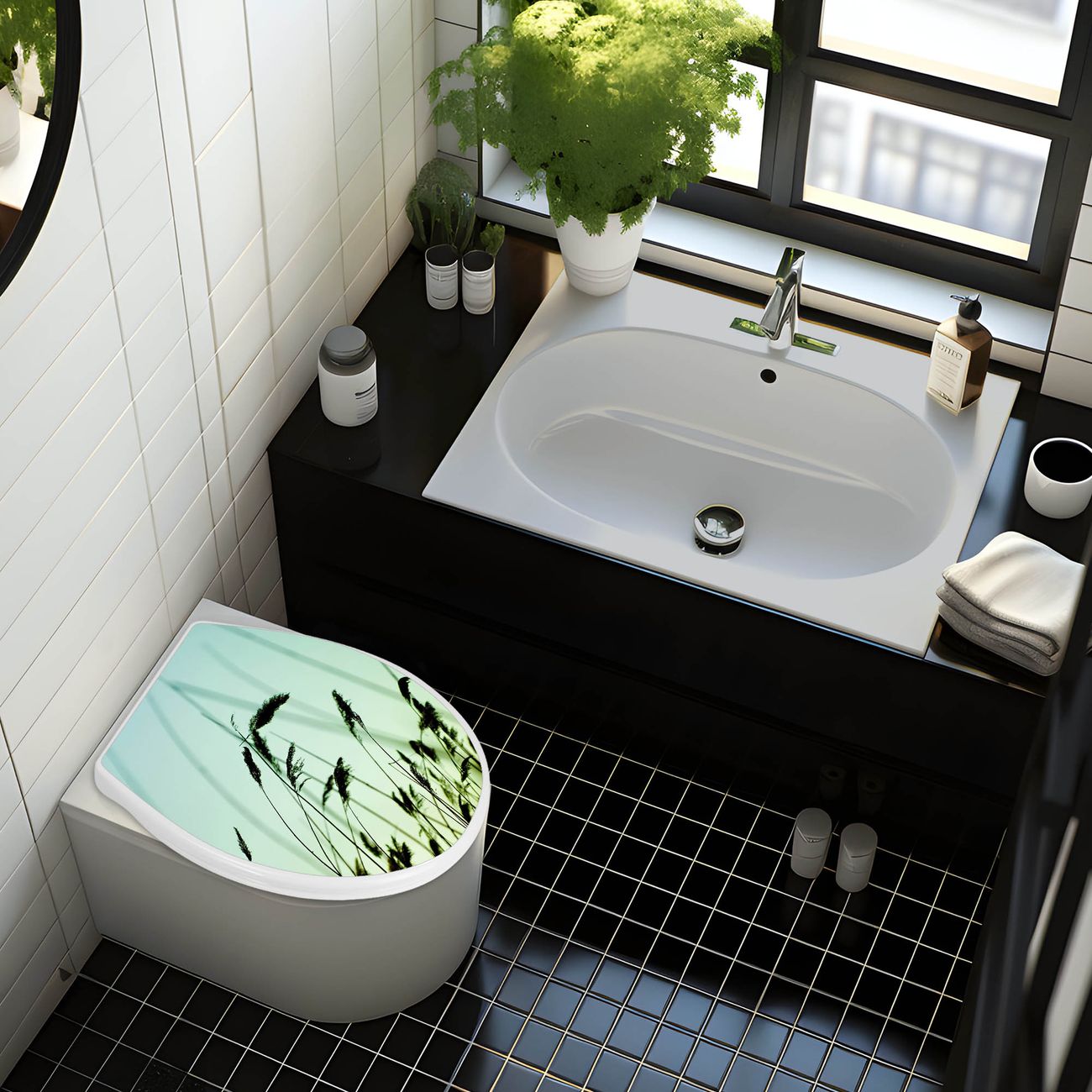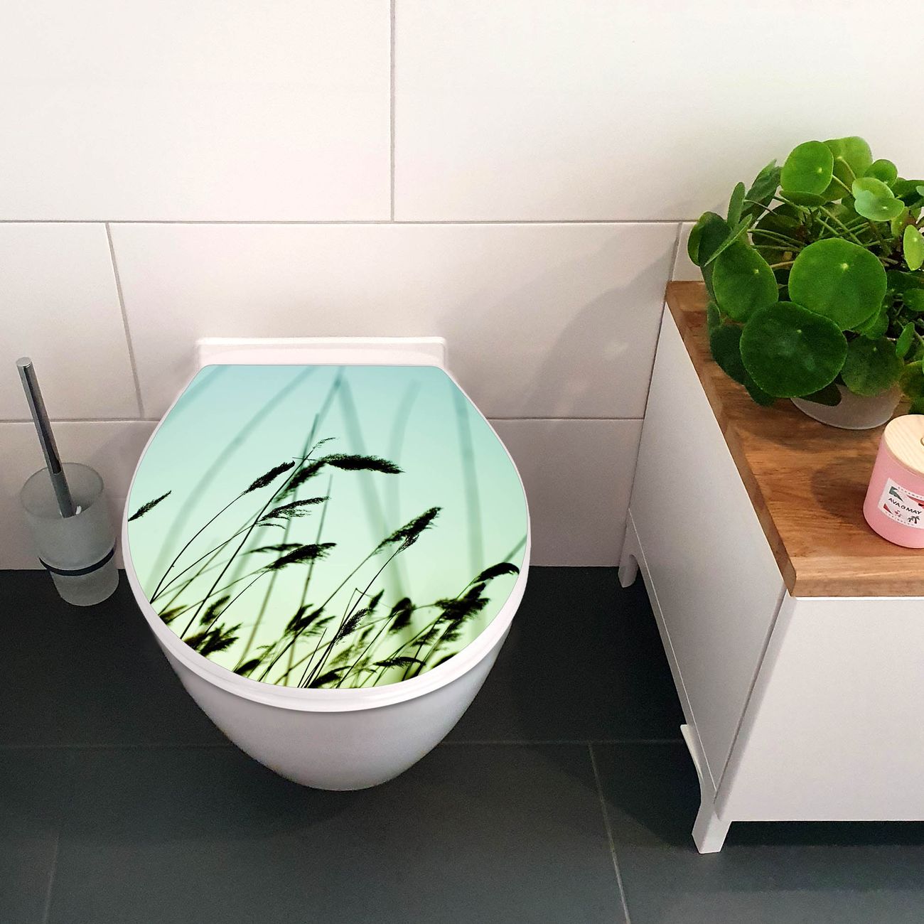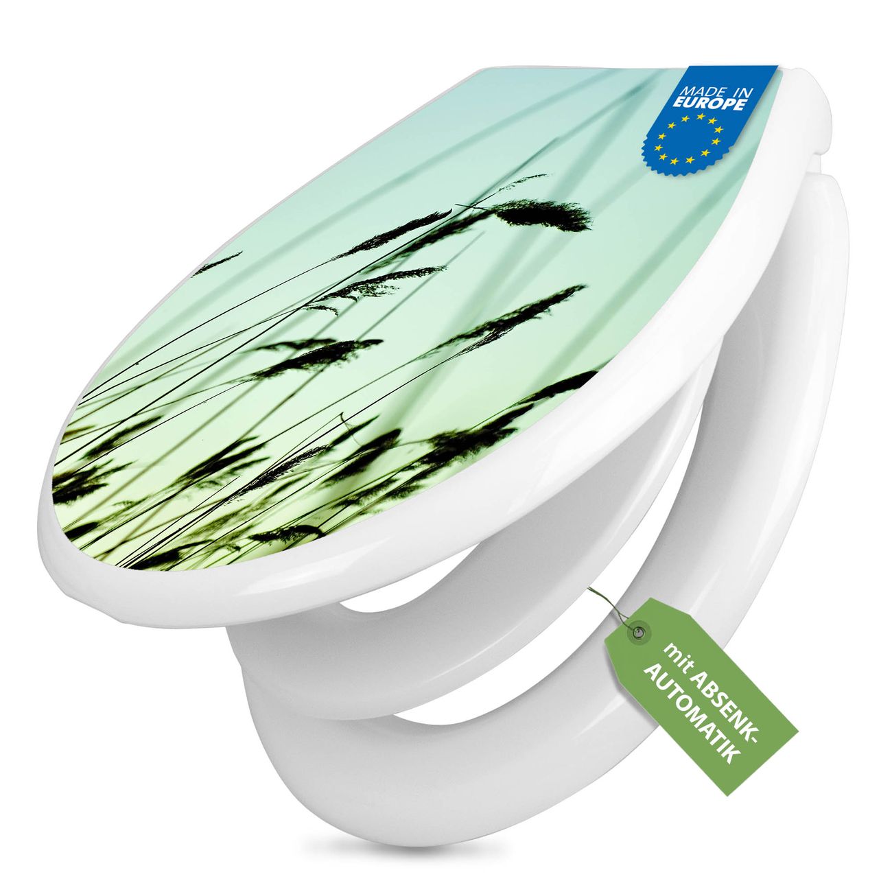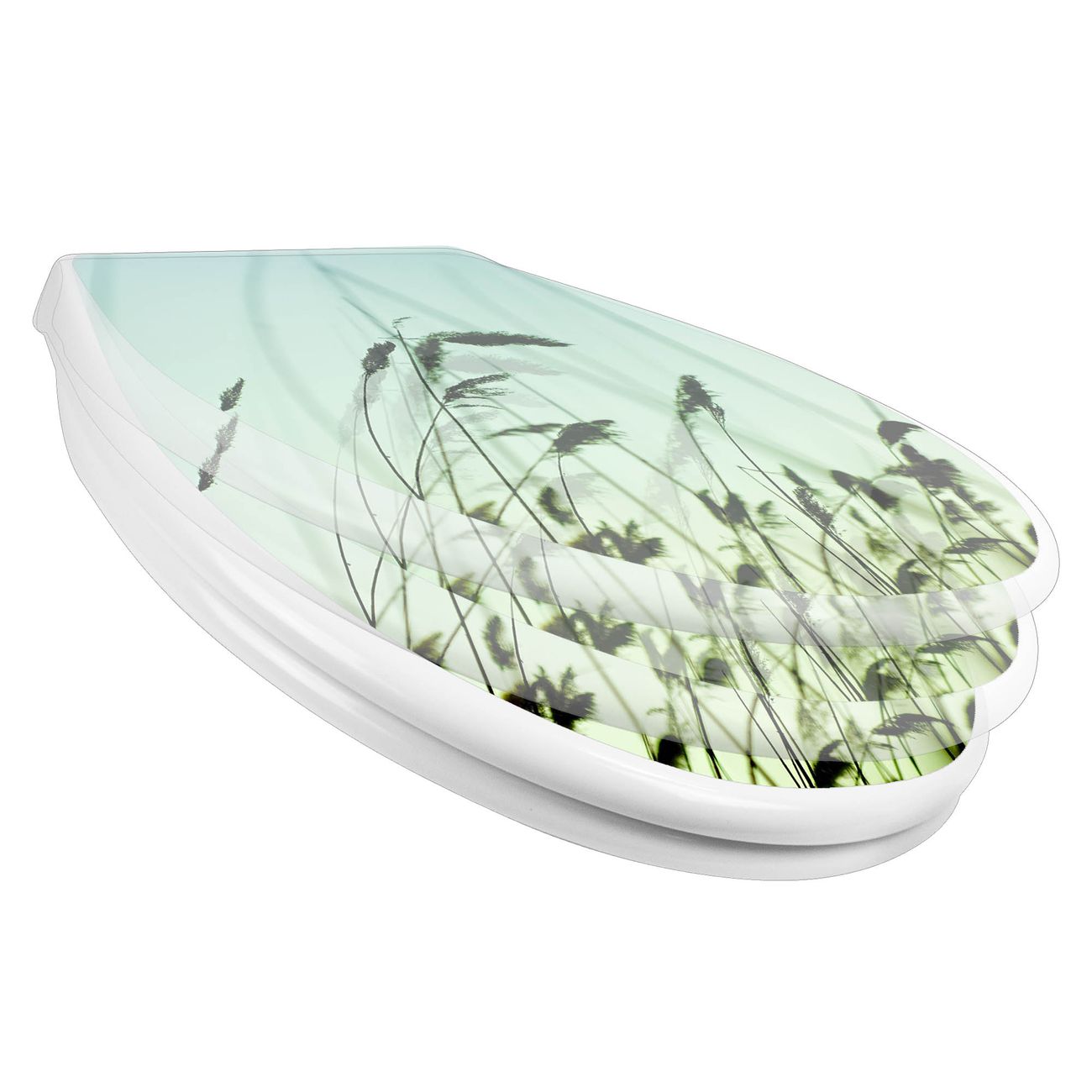 Toilettendeckel weiß mit Absenkautomatik Motiv Gräser