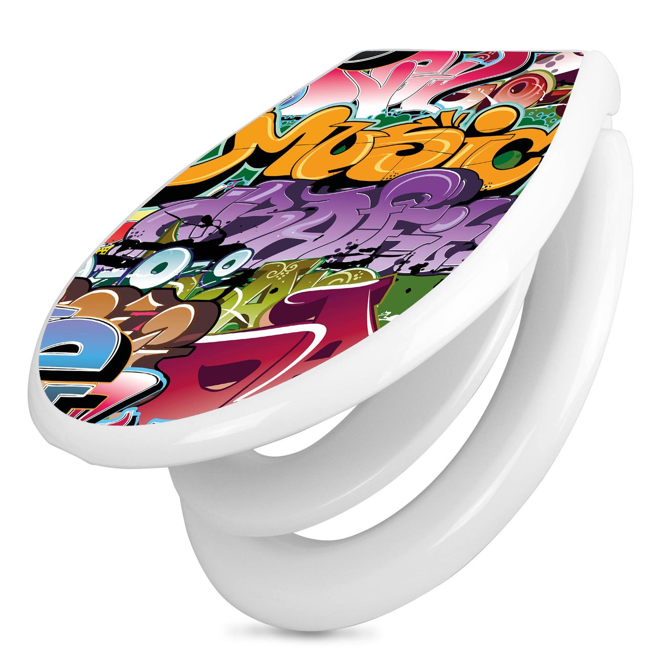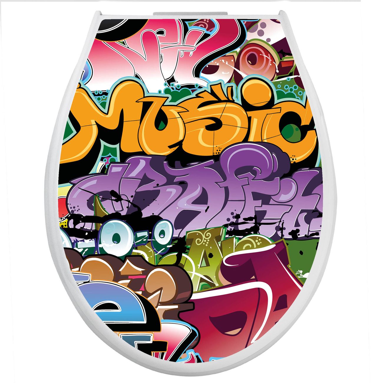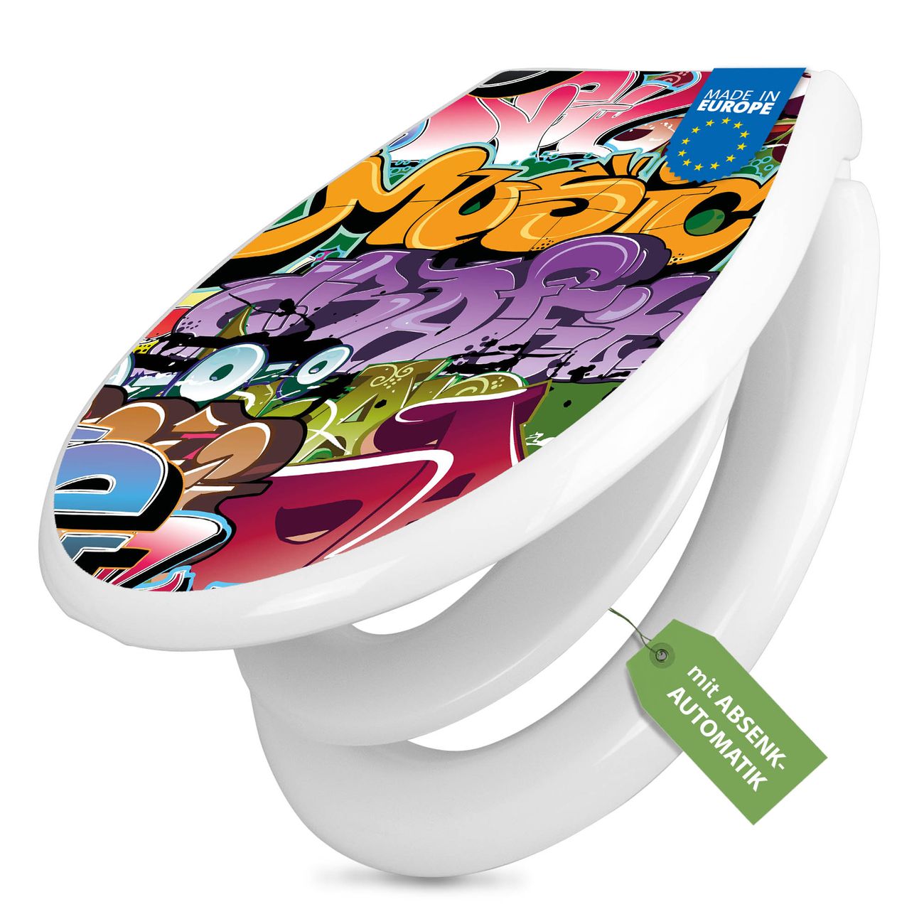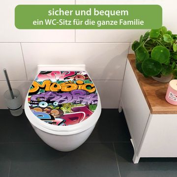 Toilettendeckel weiß mit Absenkautomatik Motiv Graffiti