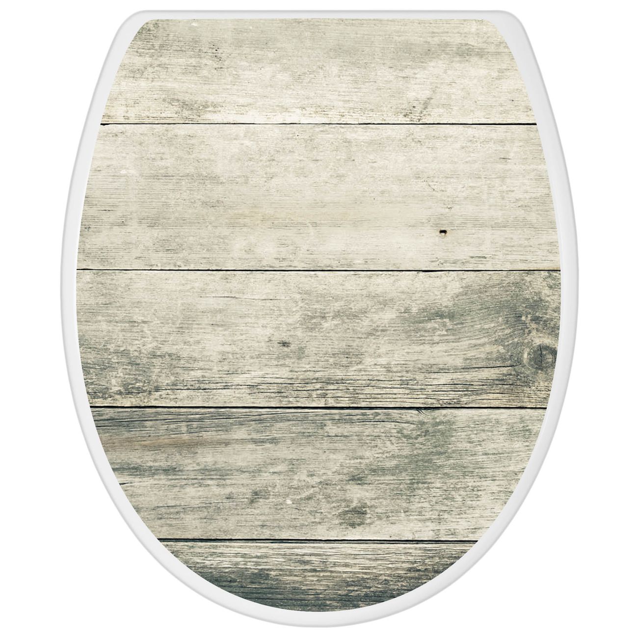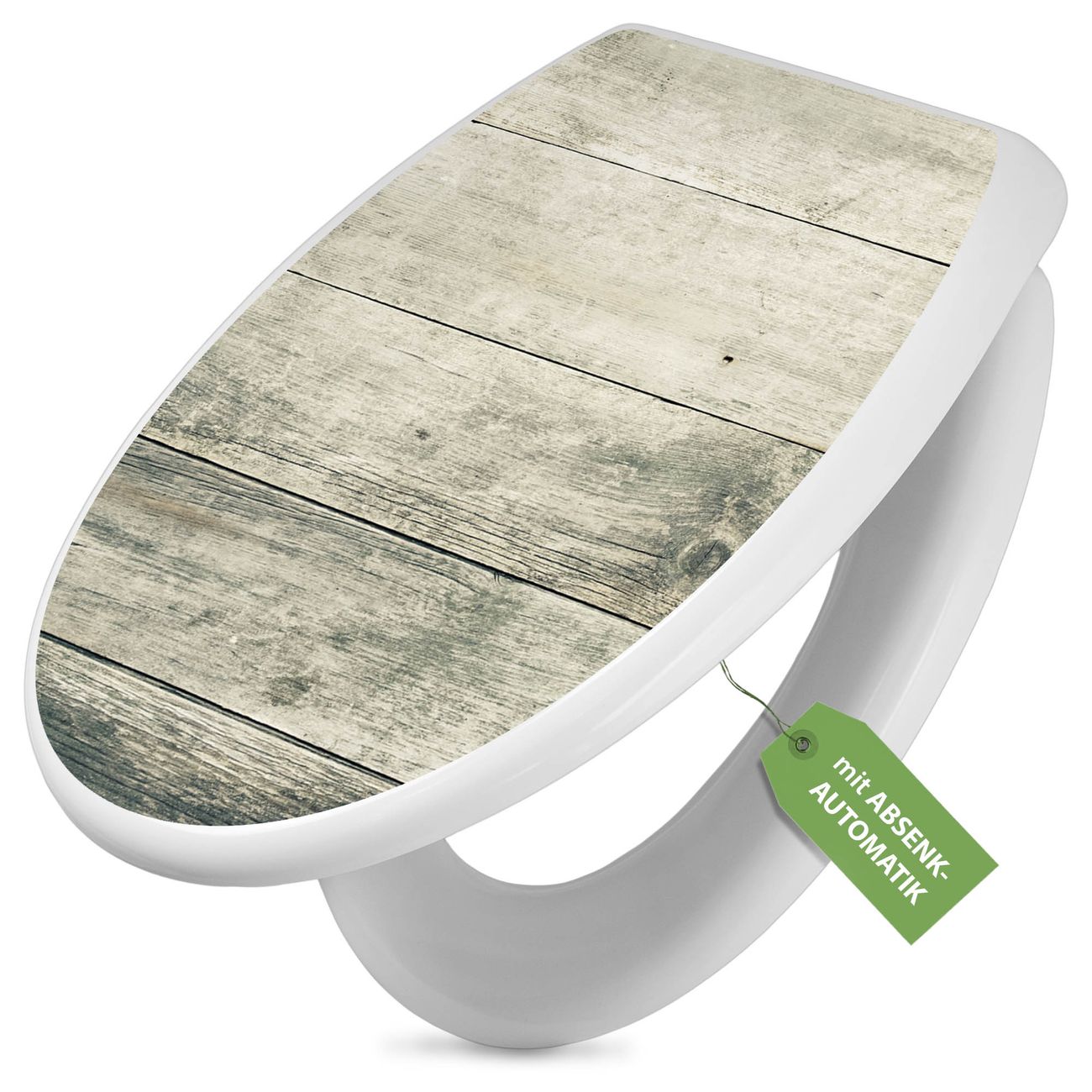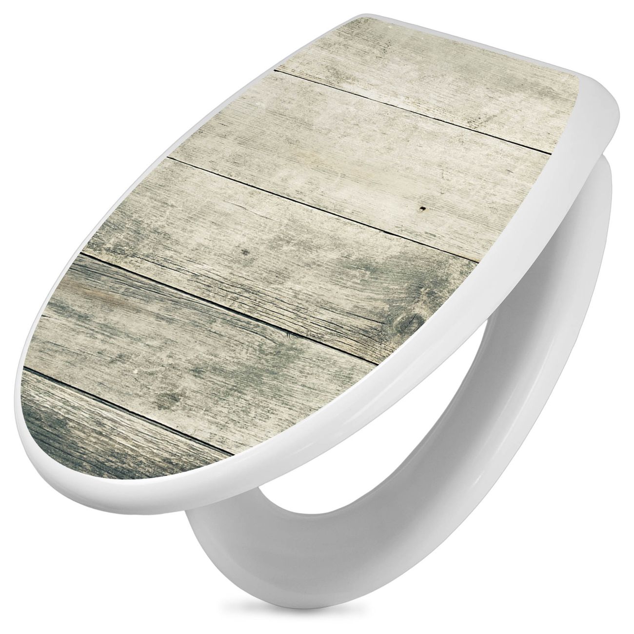 Toilettendeckel weiß mit Absenkautomatik Motiv Graue Planken