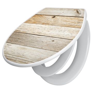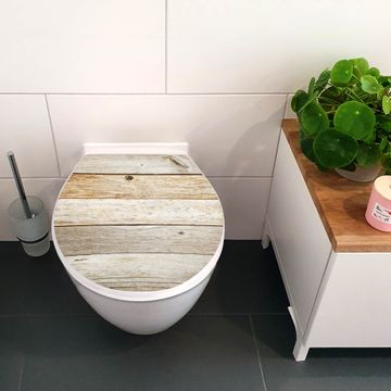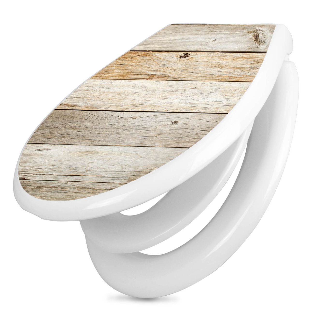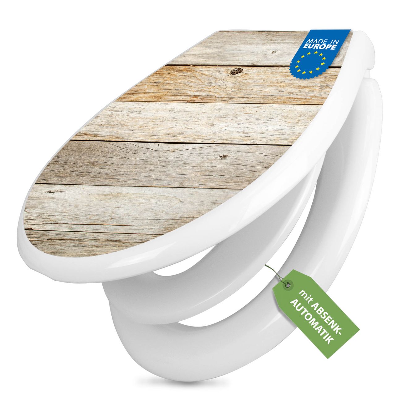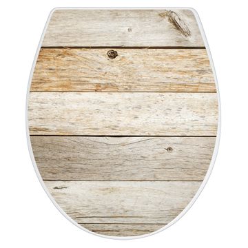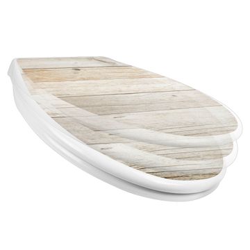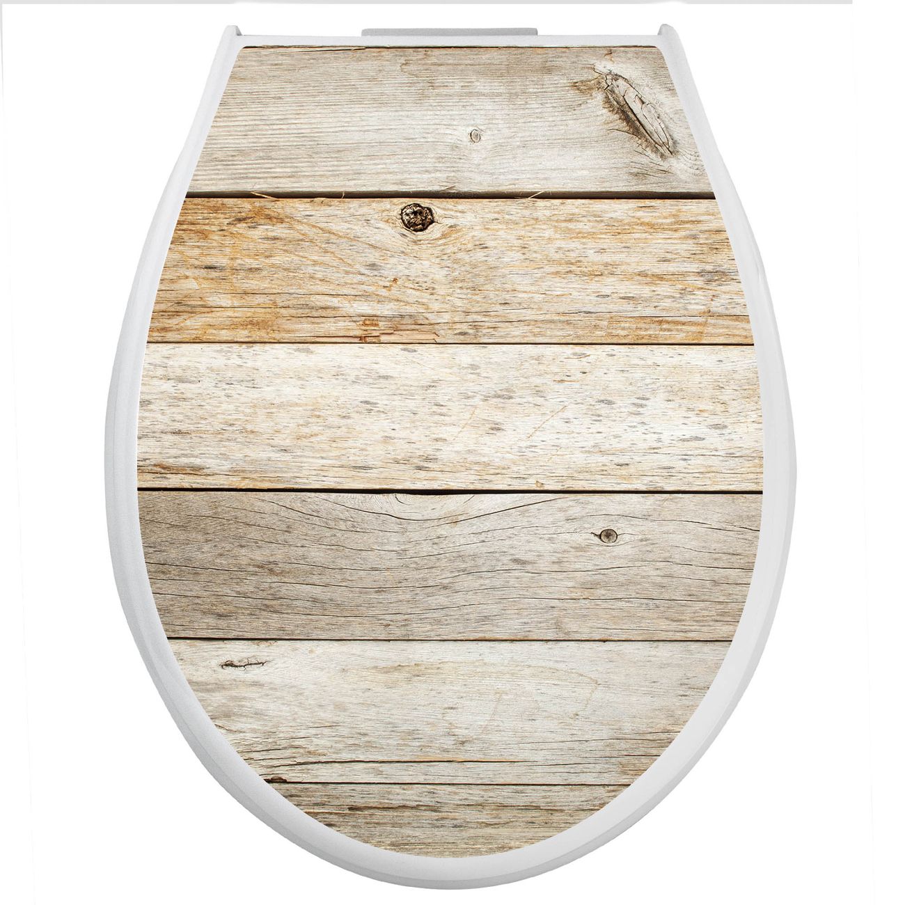 Toilettendeckel weiß mit Absenkautomatik Motiv Graues Holz