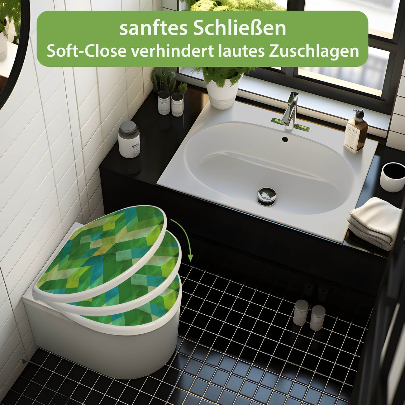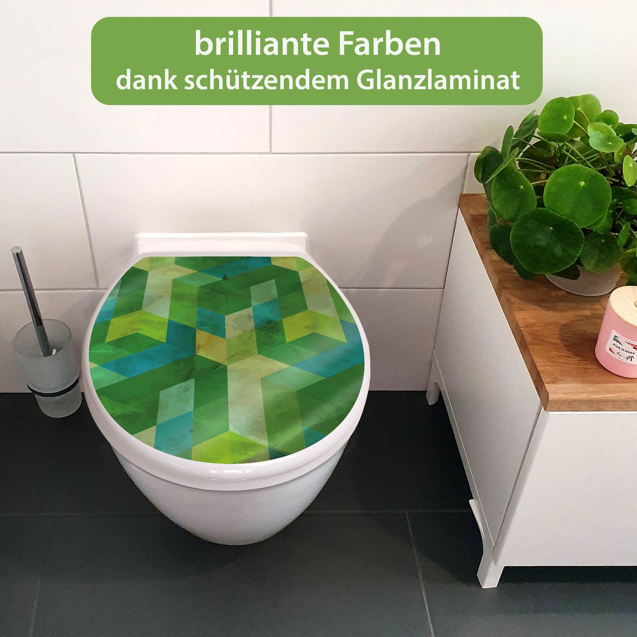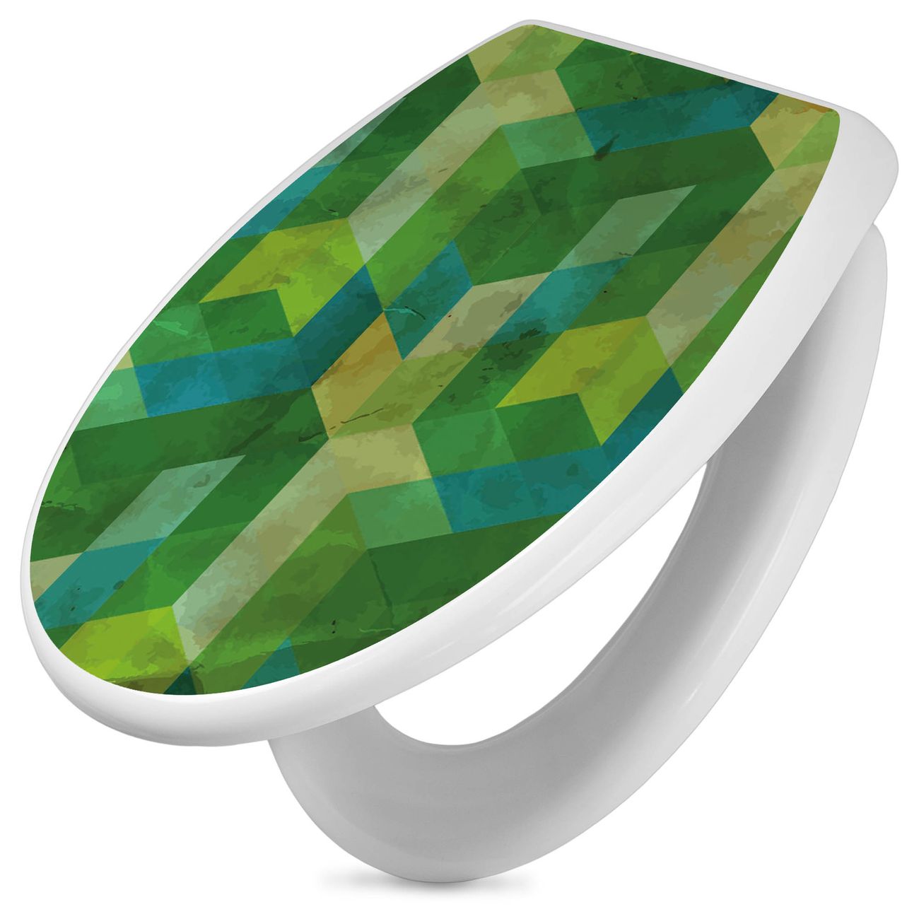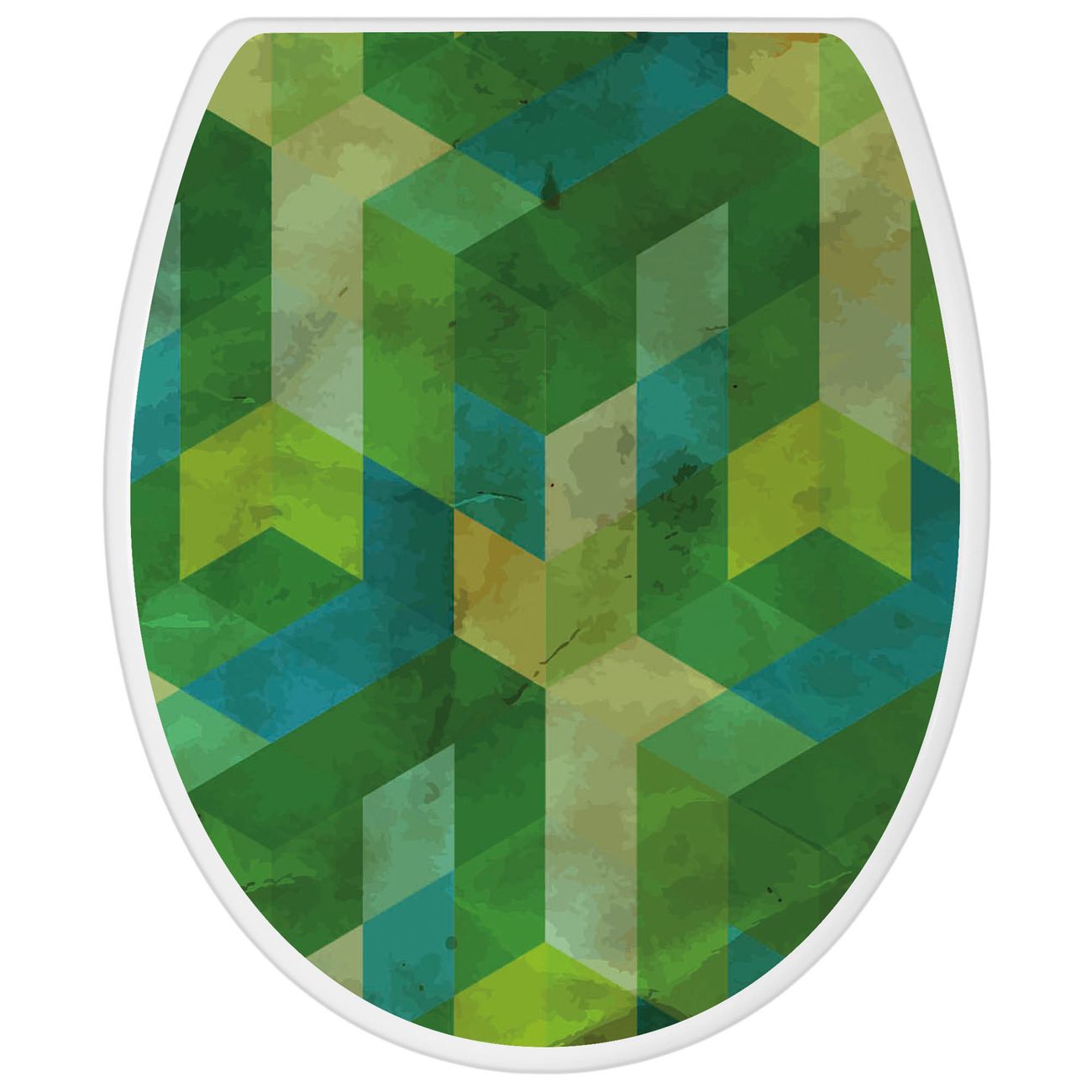 Toilettendeckel weiß mit Absenkautomatik Motiv Grüne Würfel