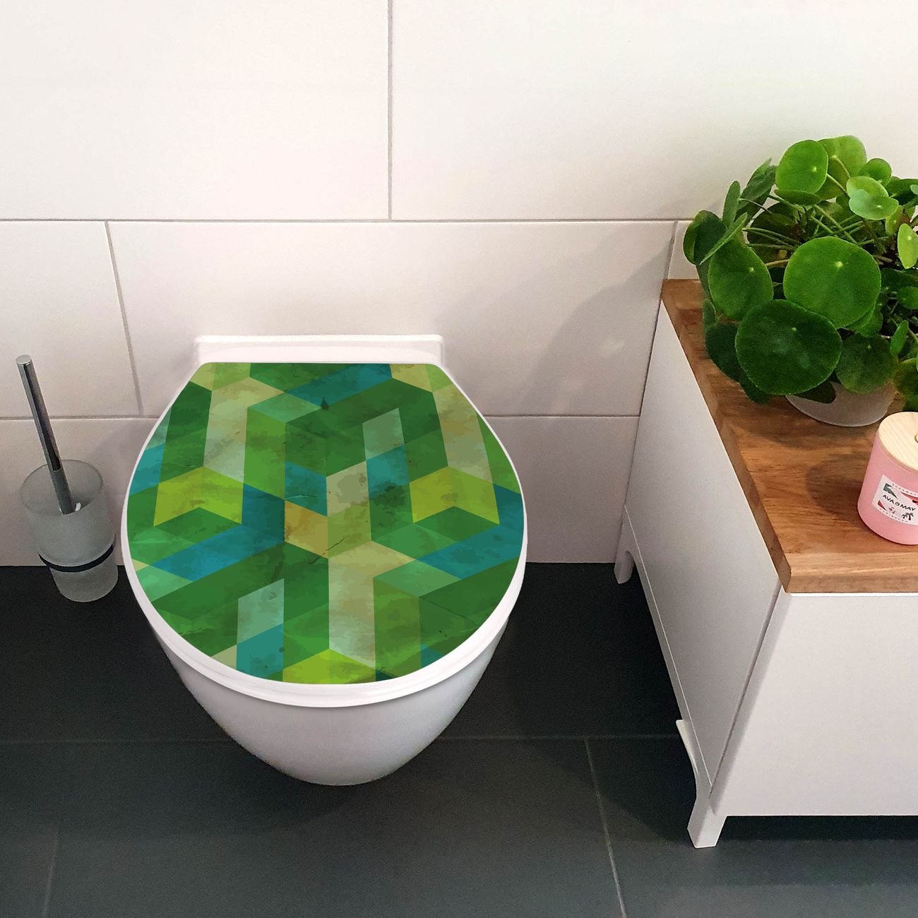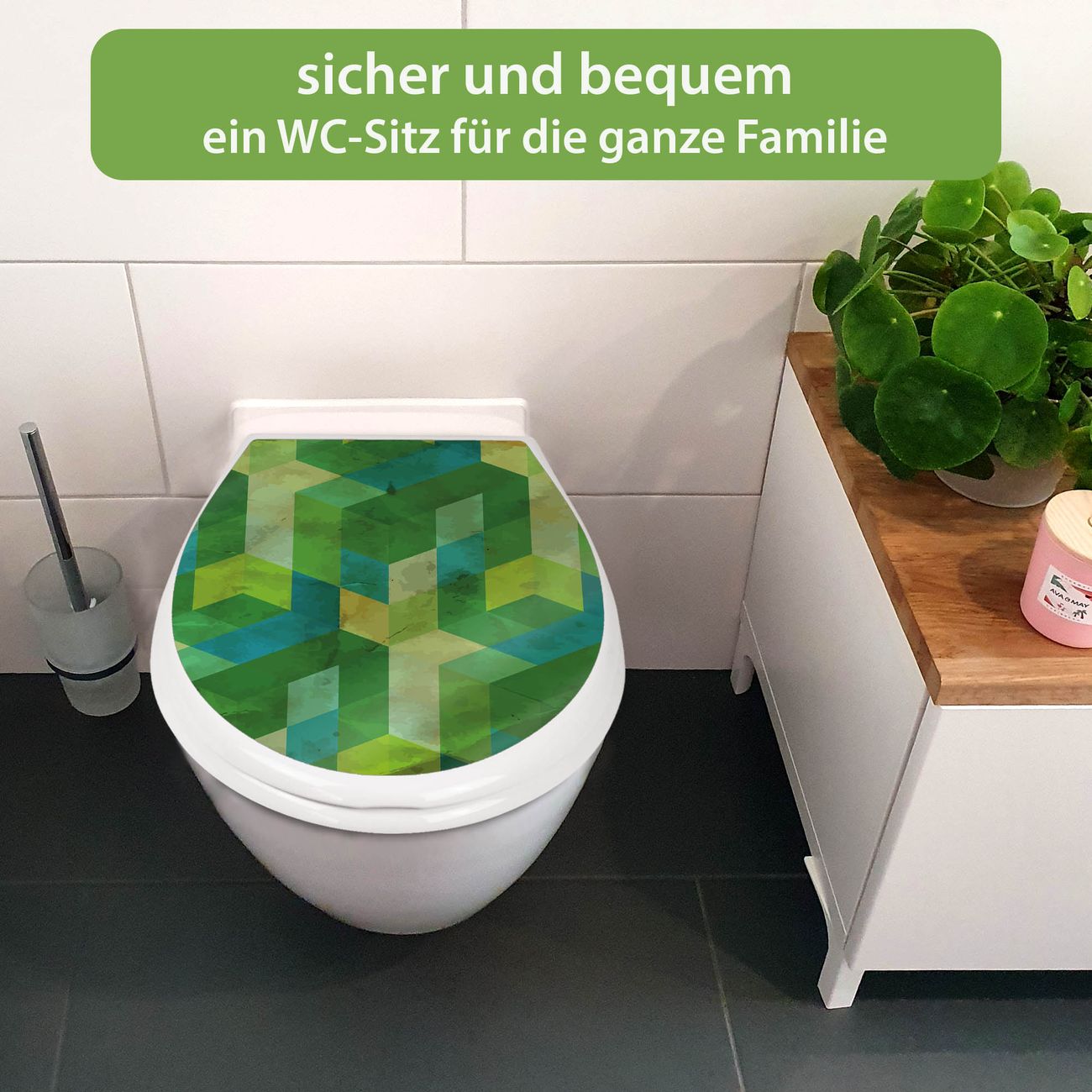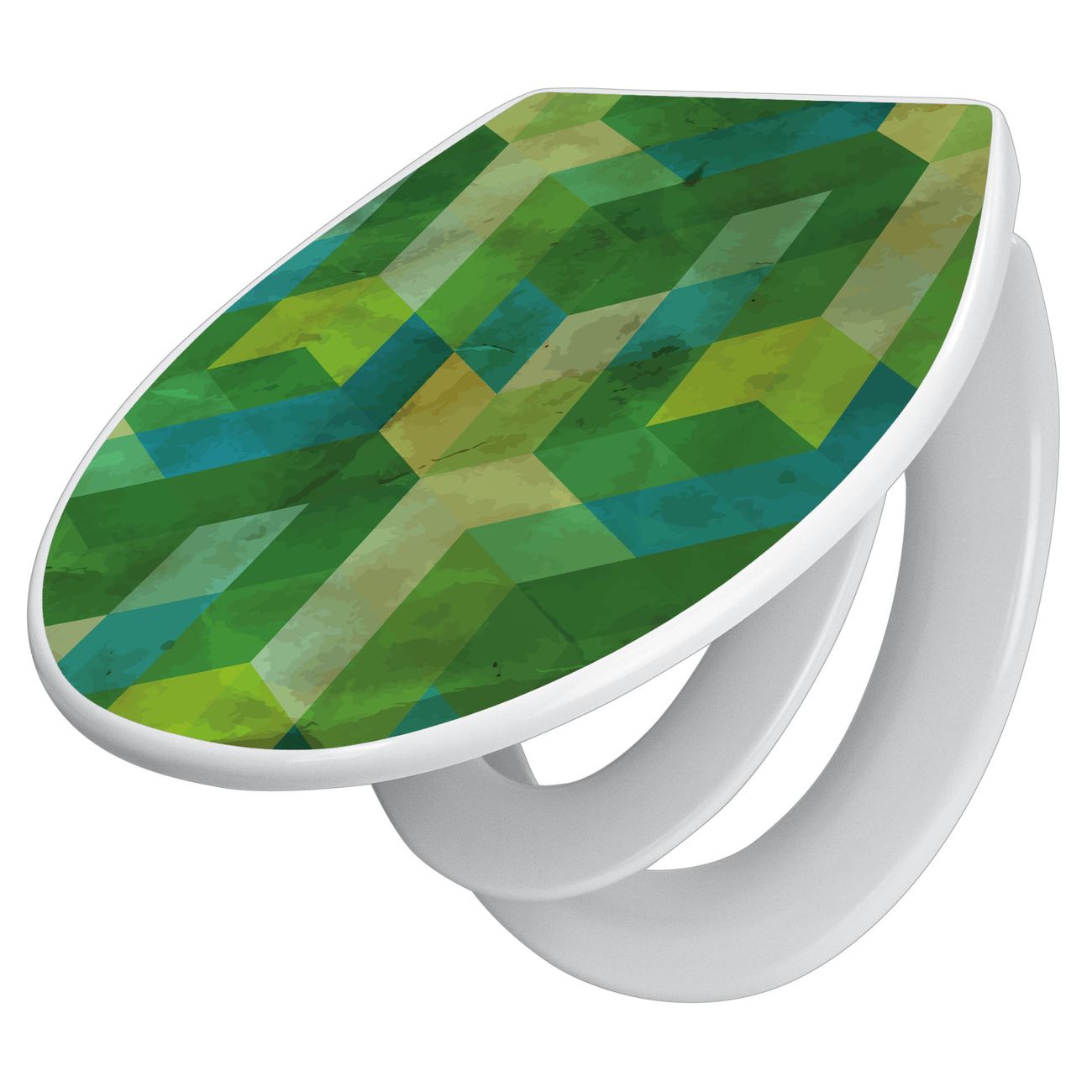 Toilettendeckel weiß mit Absenkautomatik Motiv Grüne Würfel