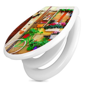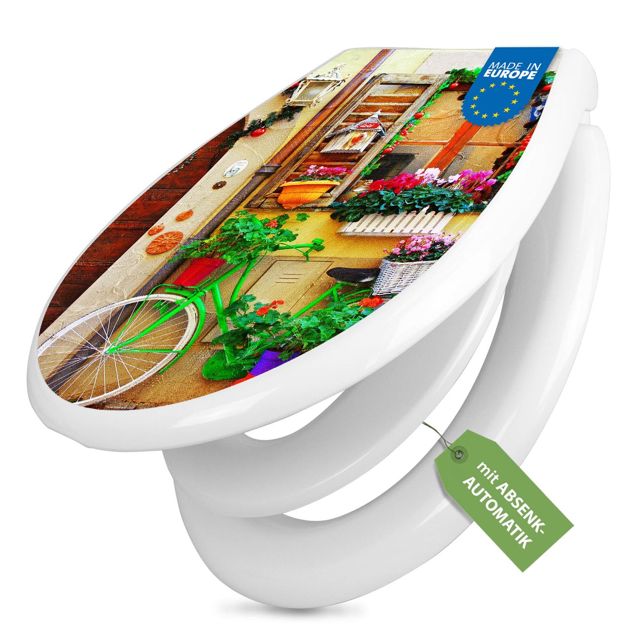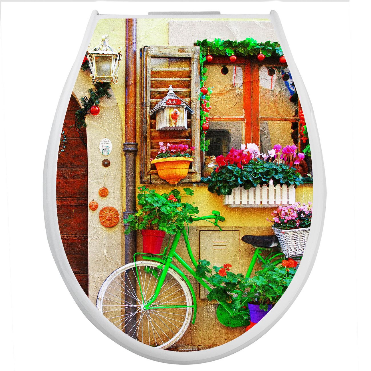 Toilettendeckel weiß mit Absenkautomatik Motiv Grünes Fahrrad