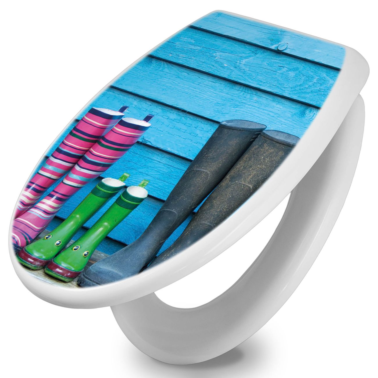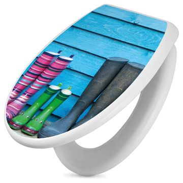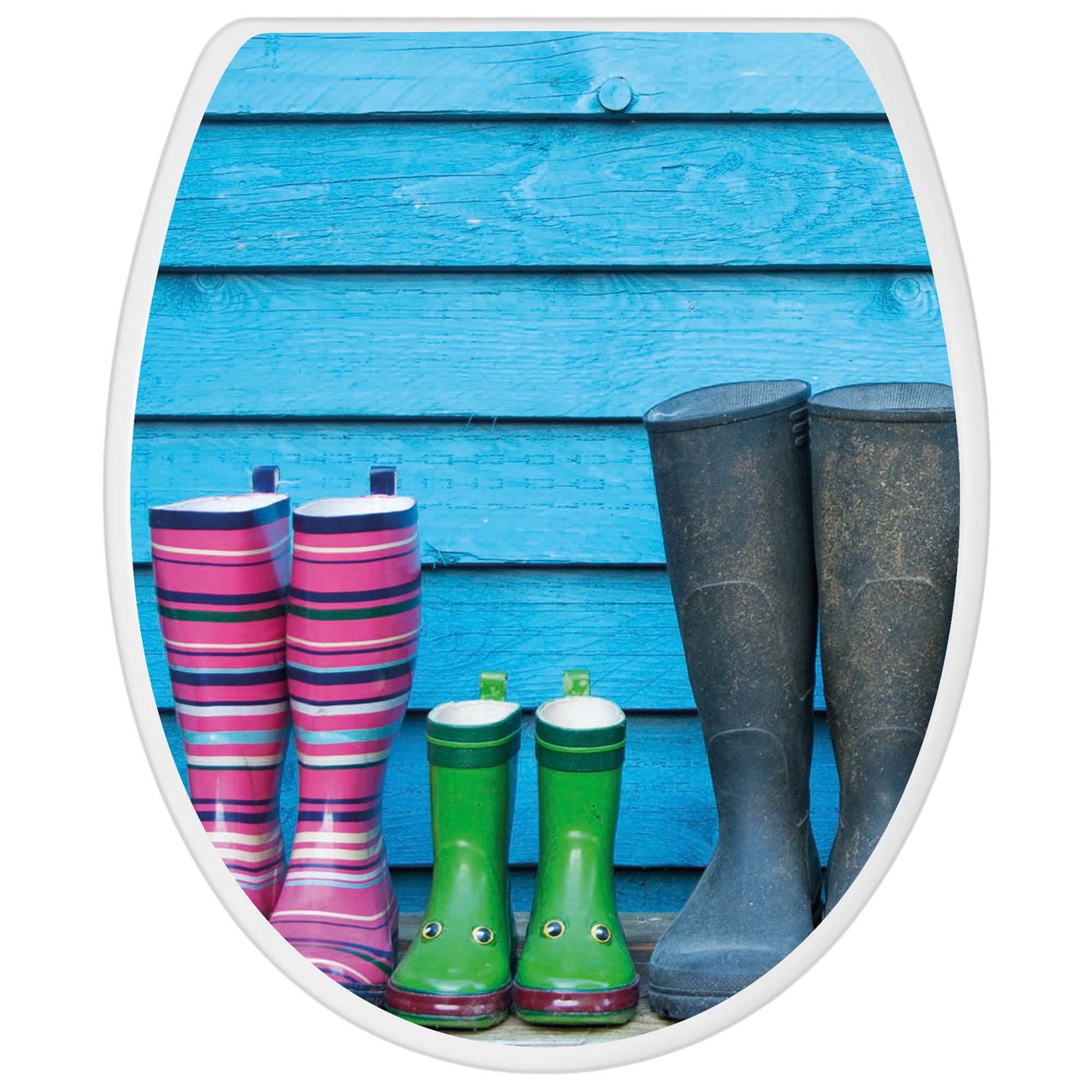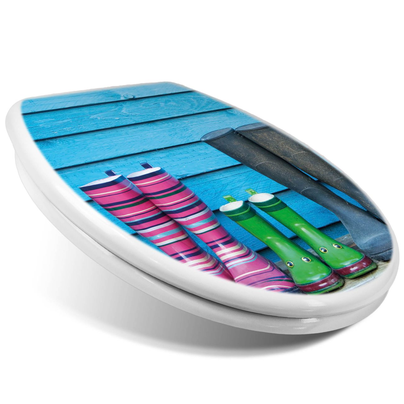 Toilettendeckel weiß mit Absenkautomatik Motiv Gummistiefel