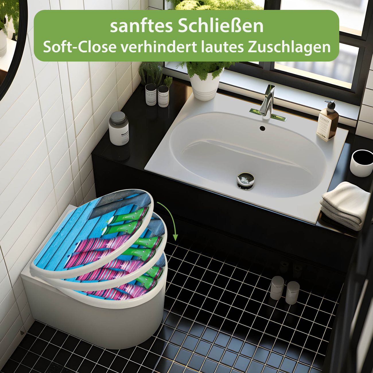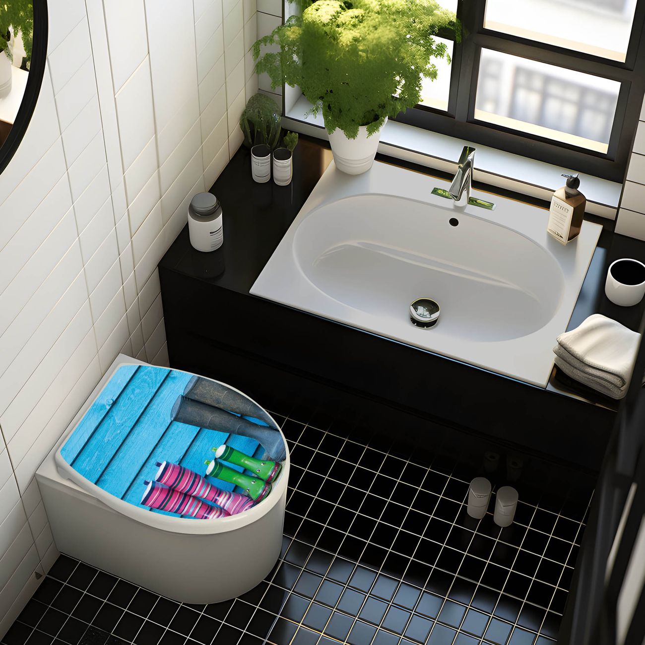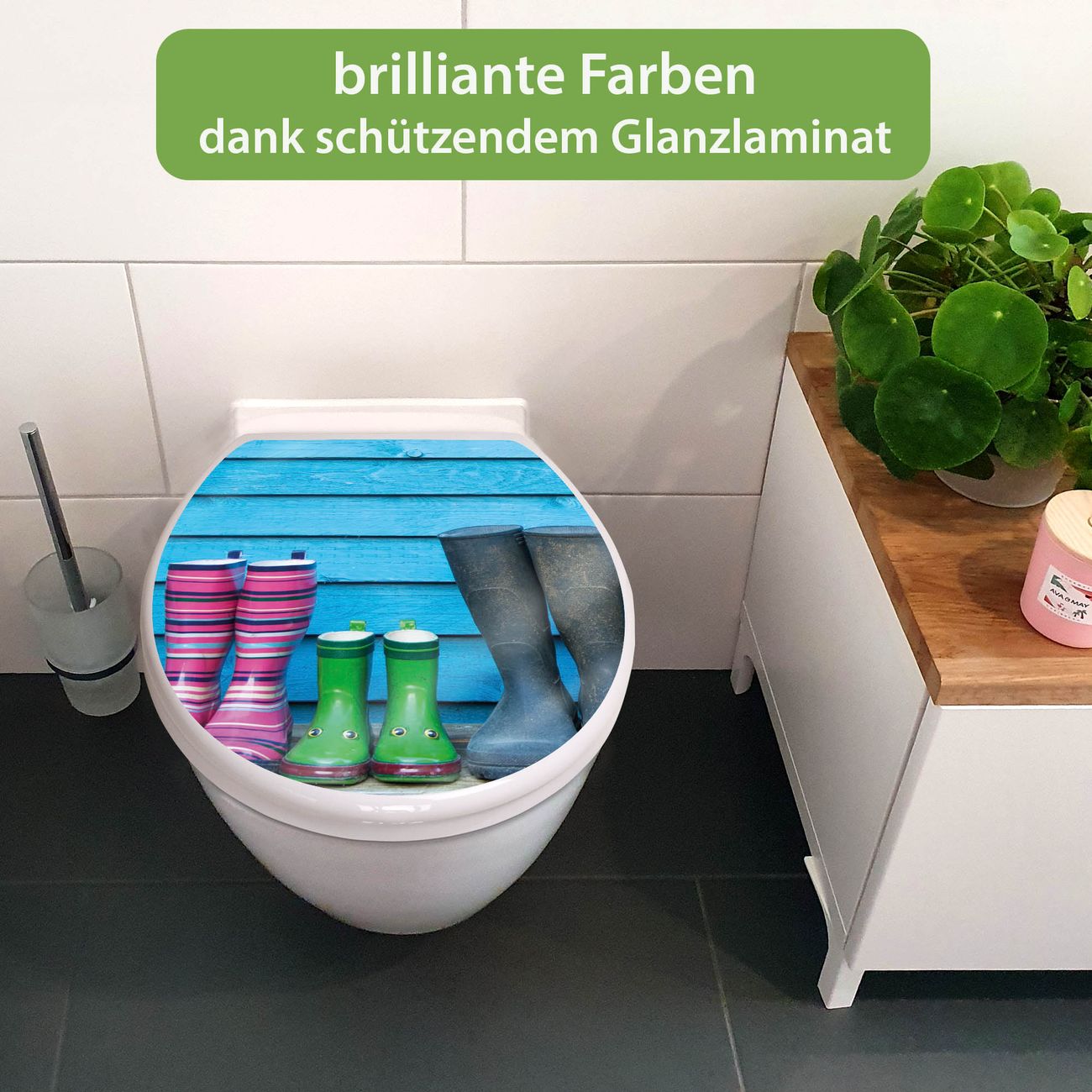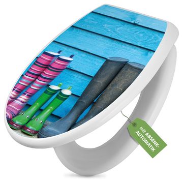 Toilettendeckel weiß mit Absenkautomatik Motiv Gummistiefel