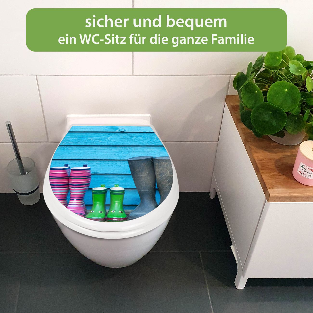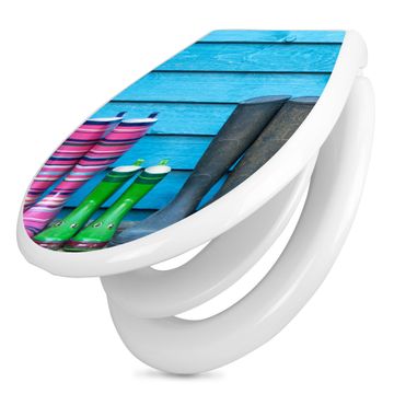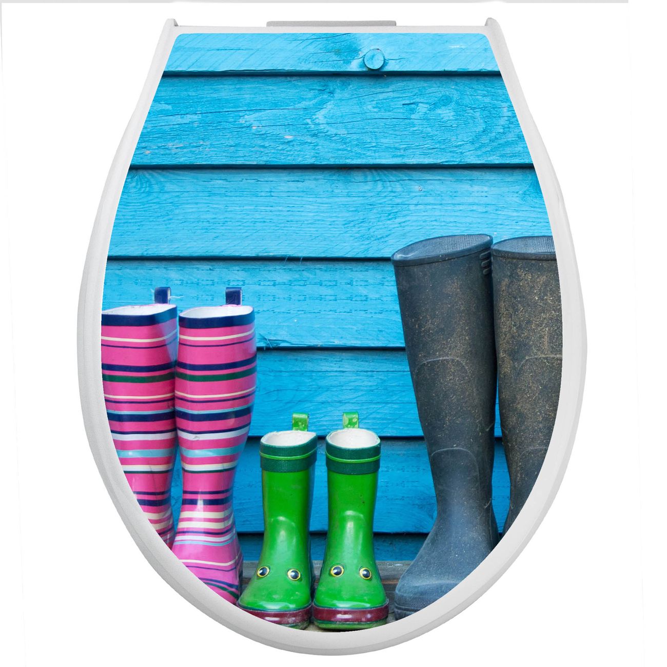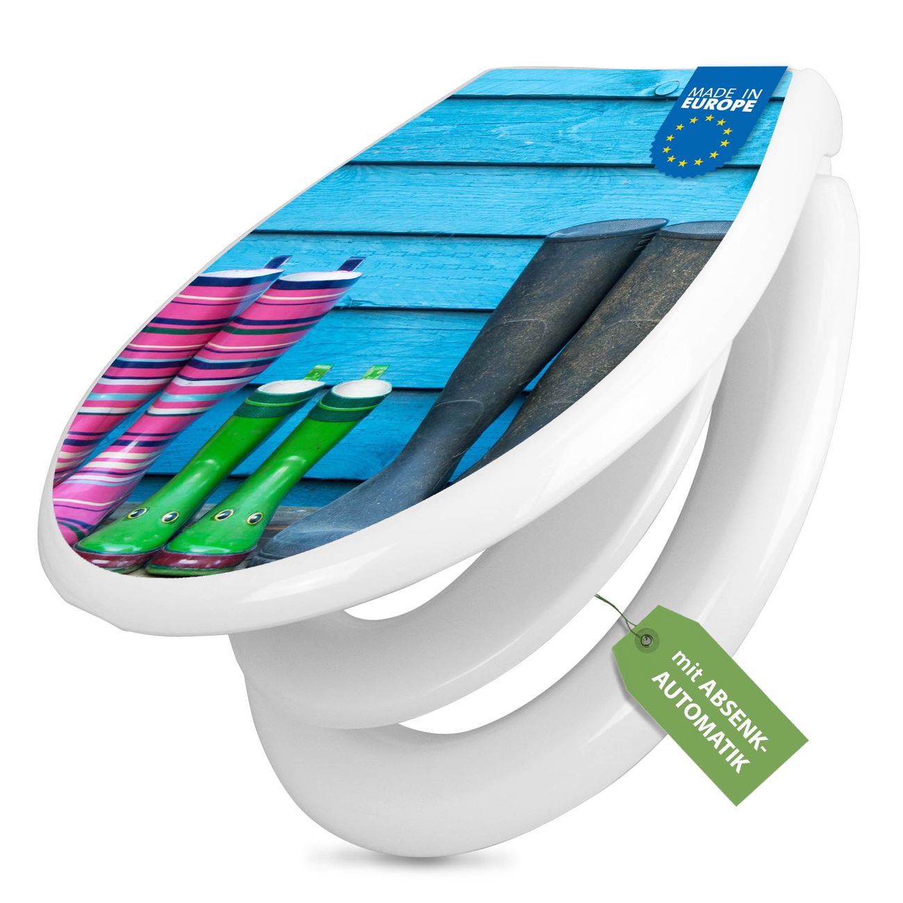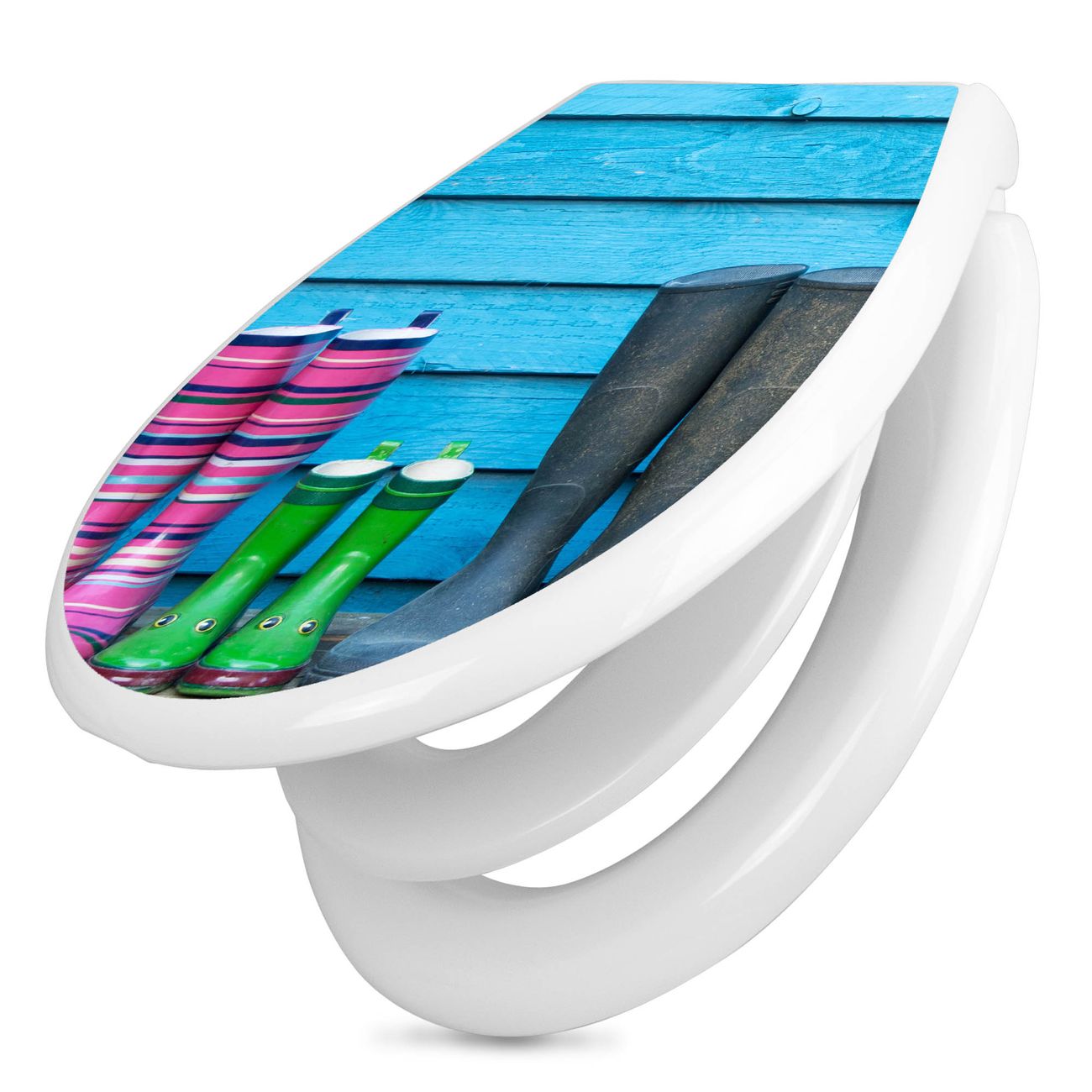 Toilettendeckel weiß mit Absenkautomatik Motiv Gummistiefel