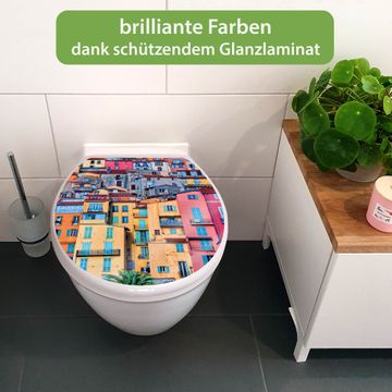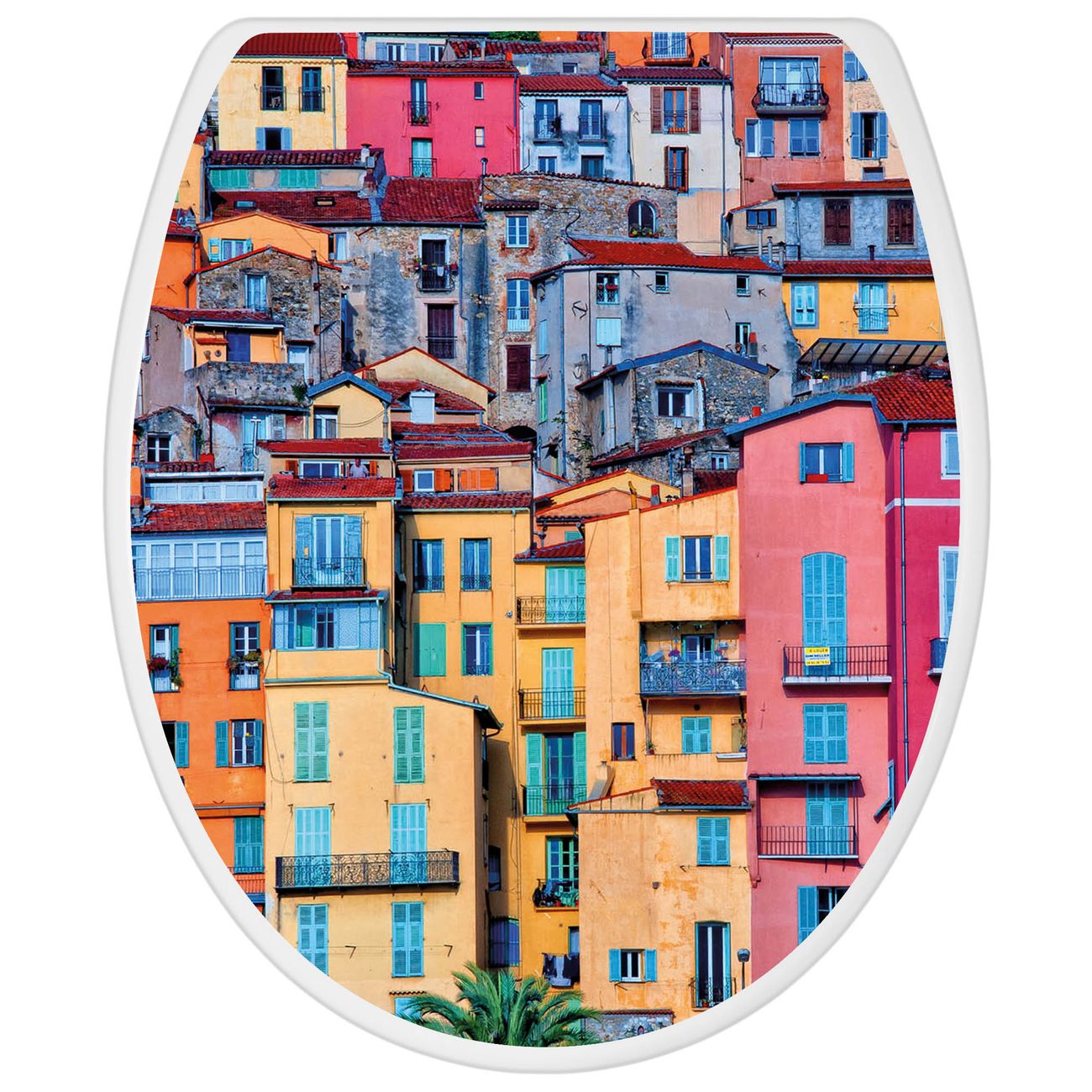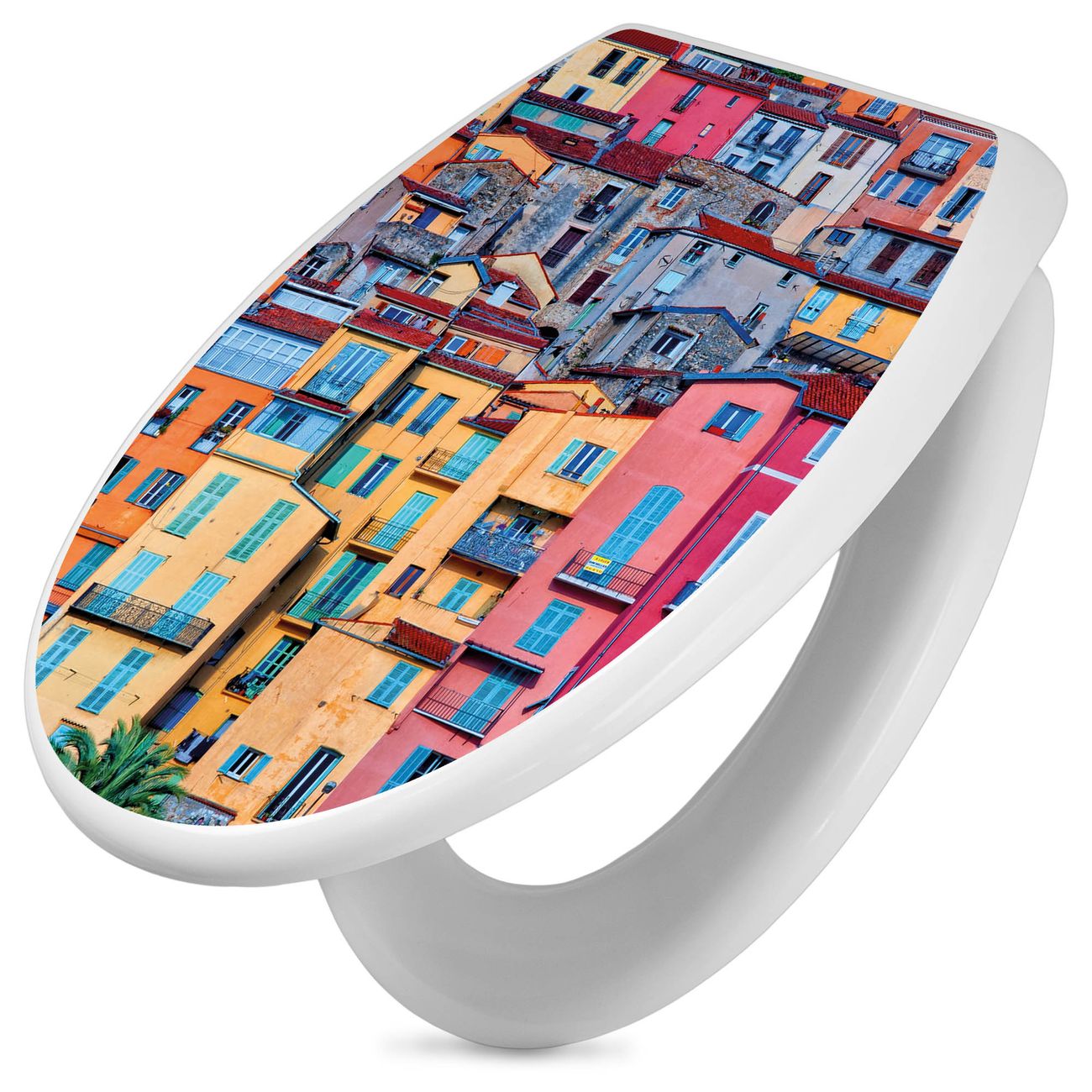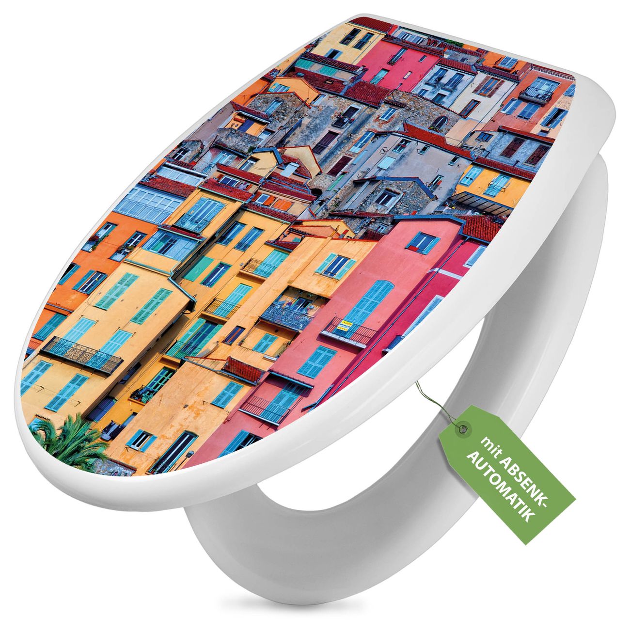Toilettendeckel weiß mit Absenkautomatik Motiv Häuserberg
