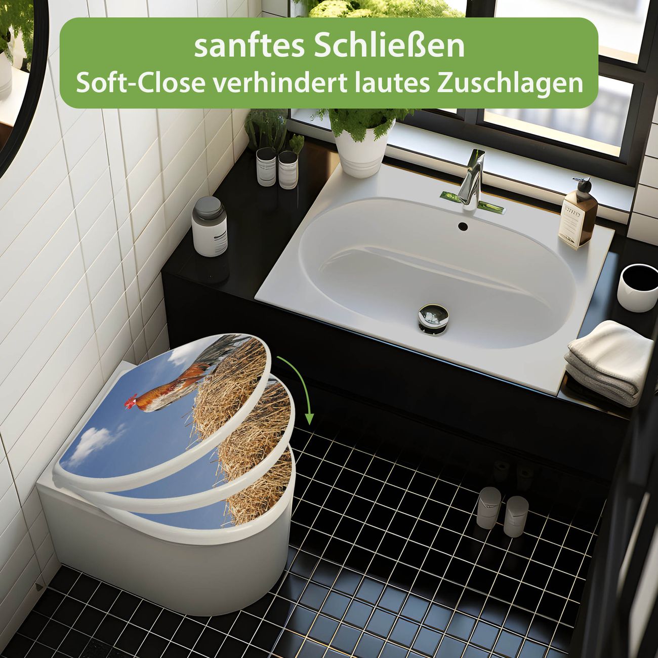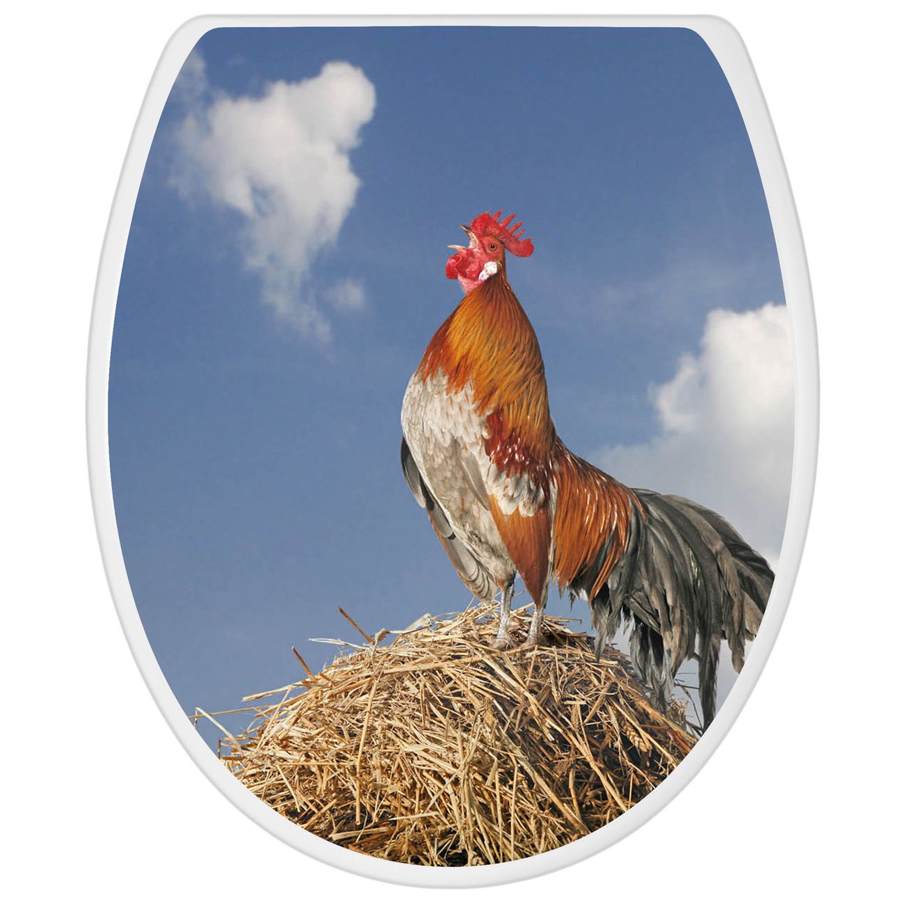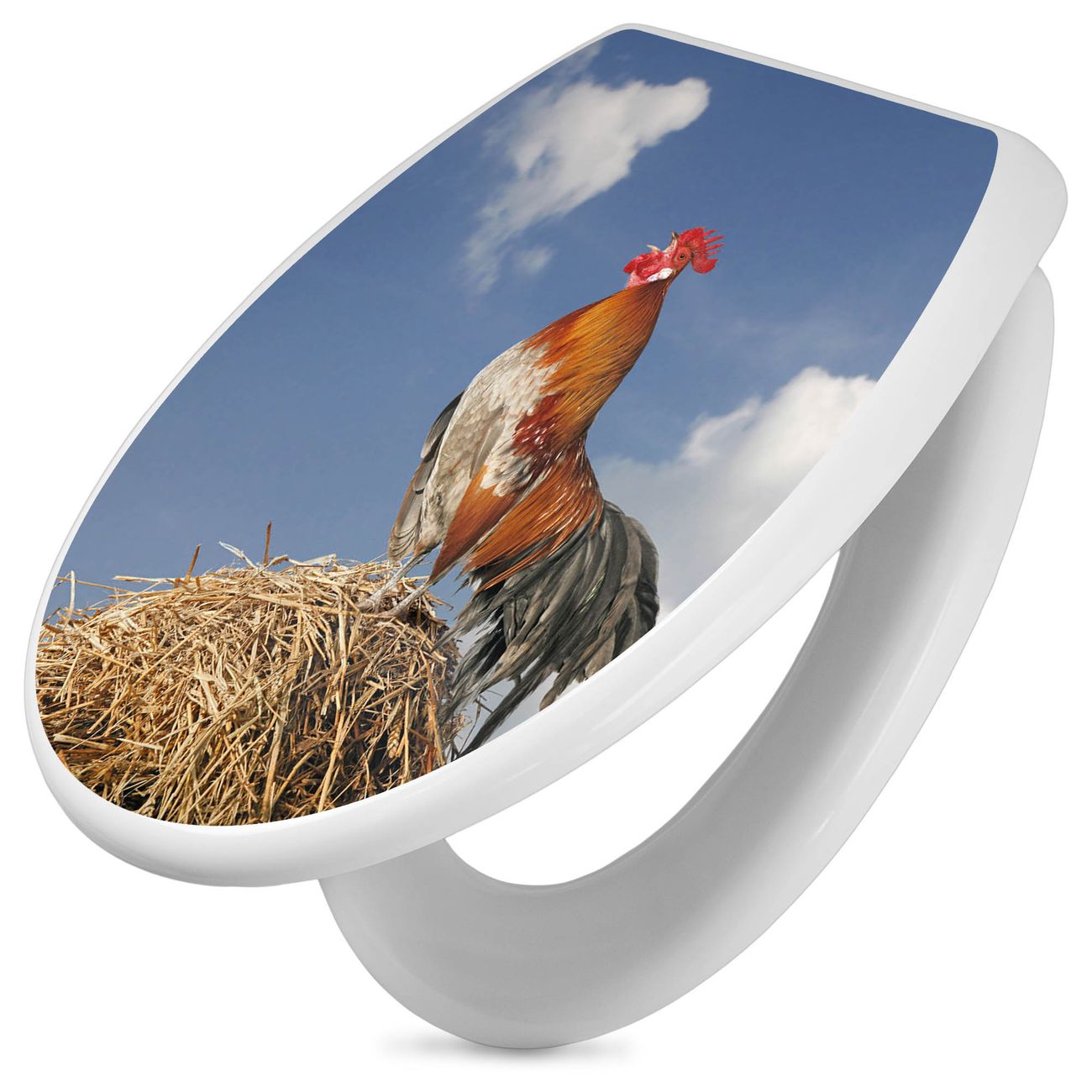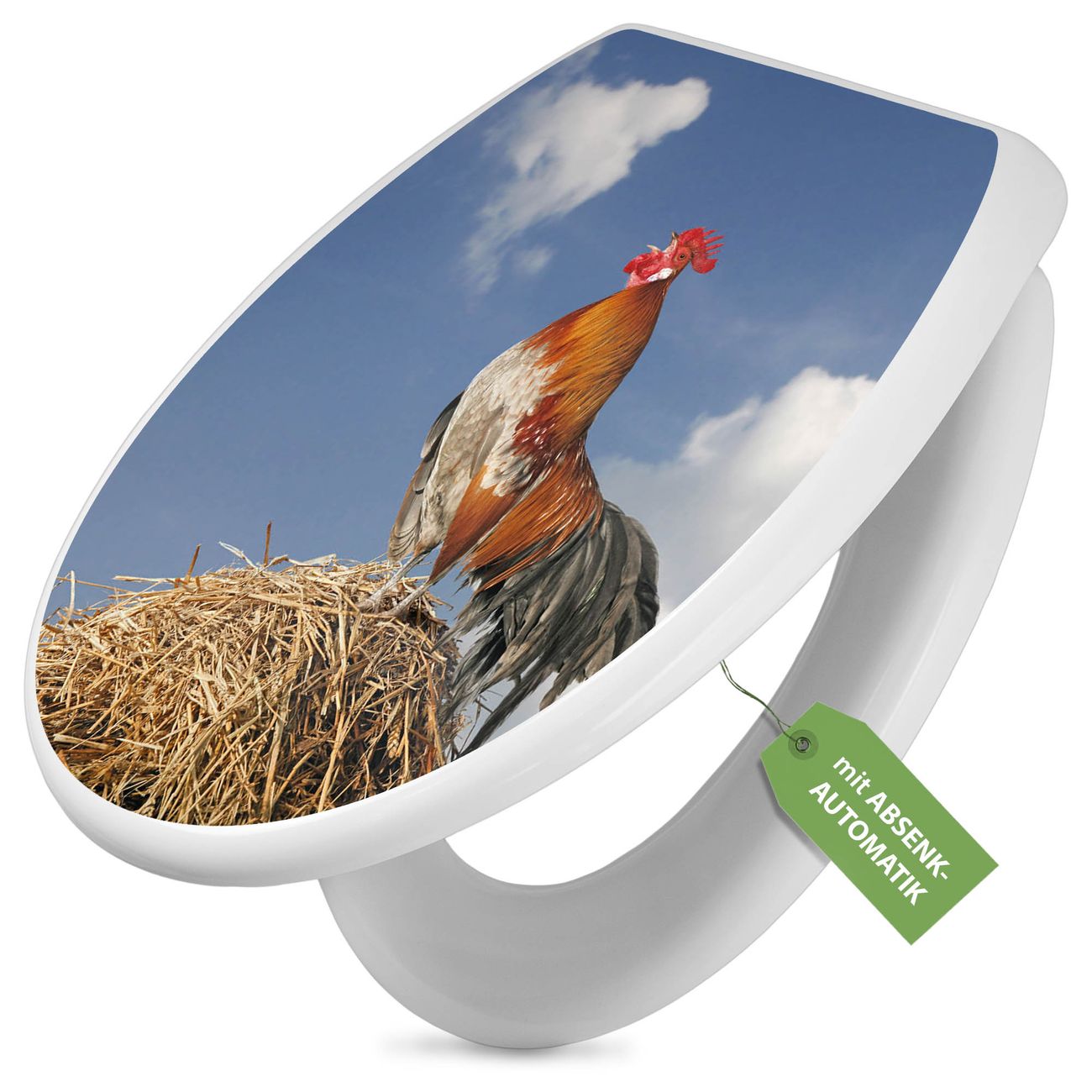 Toilettendeckel weiß mit Absenkautomatik Motiv Hahn