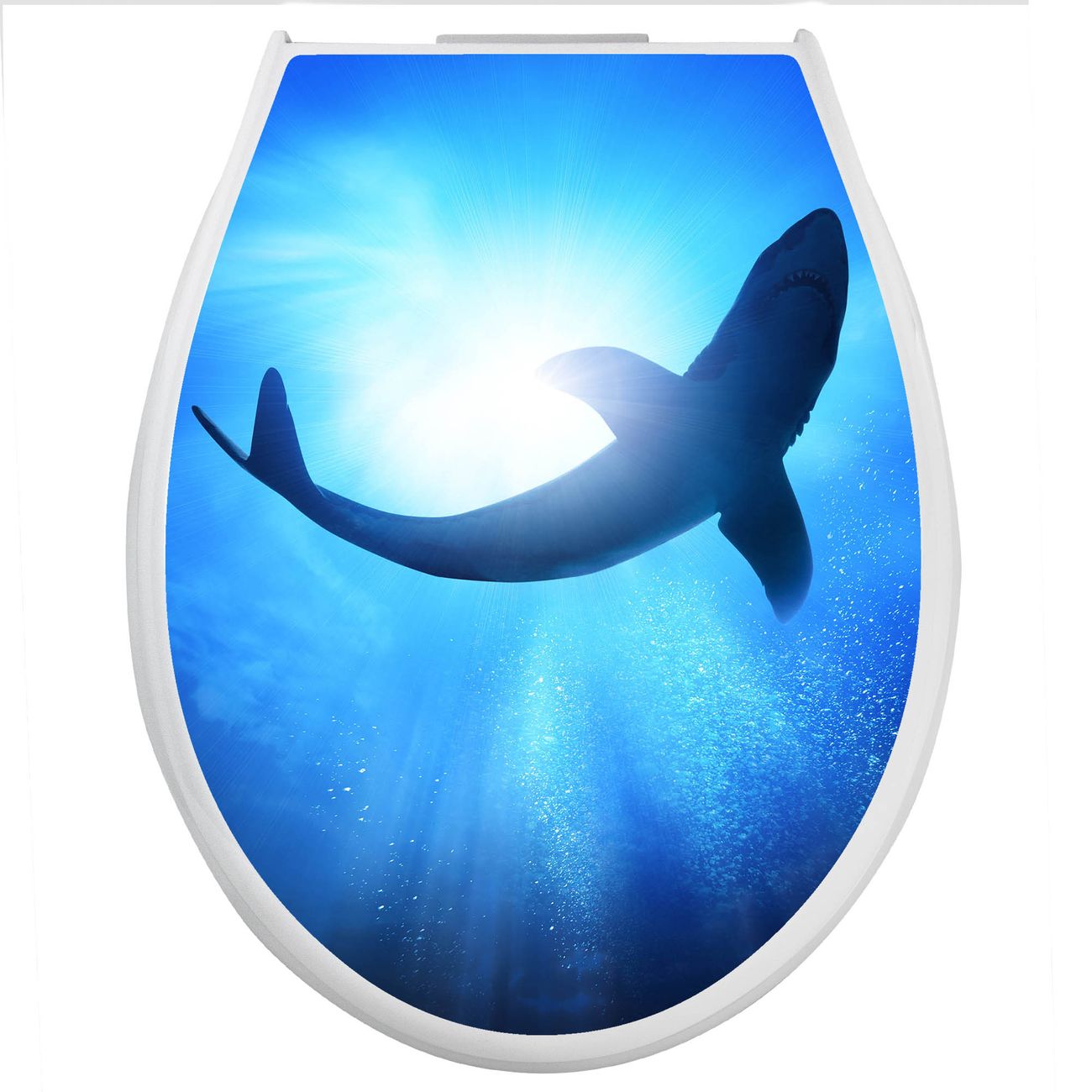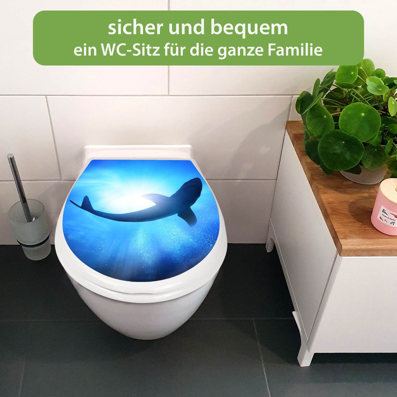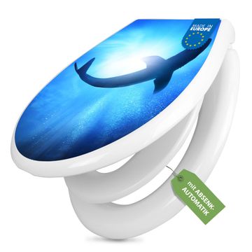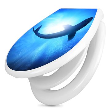 Toilettendeckel weiß mit Absenkautomatik Motiv Hai