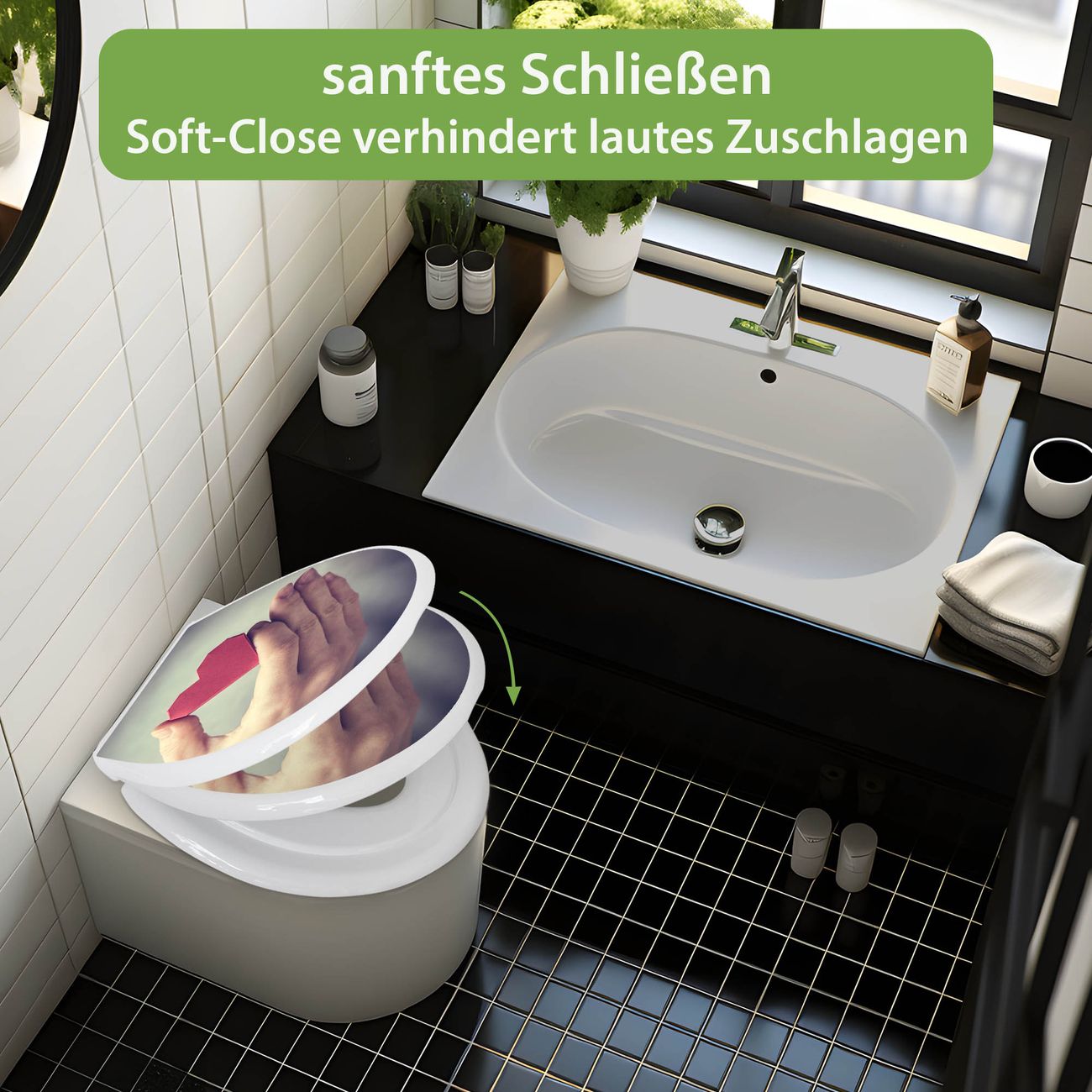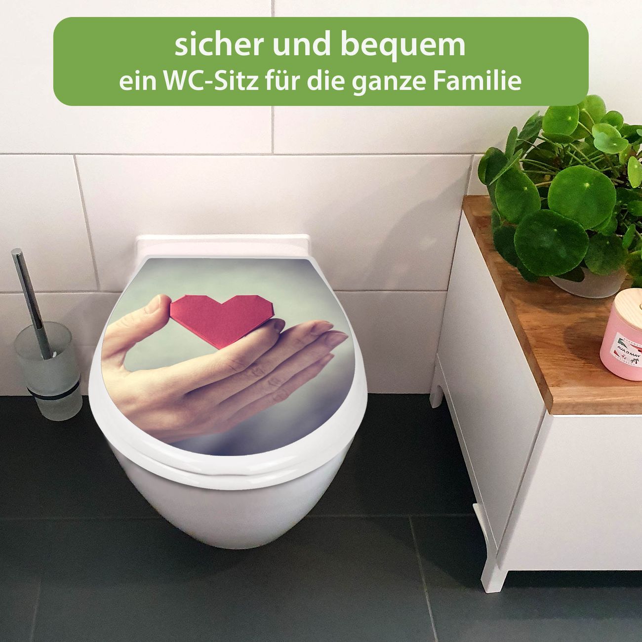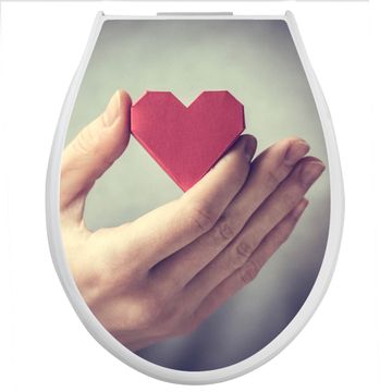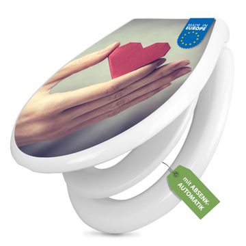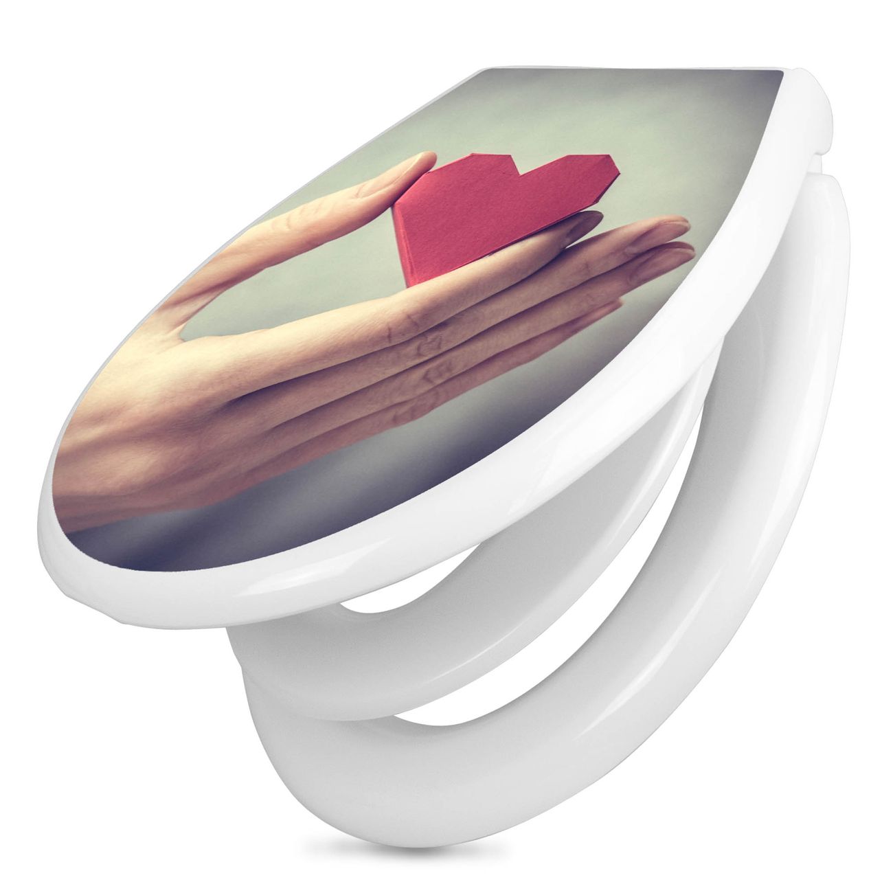 Toilettendeckel weiß mit Absenkautomatik Motiv Hand Aufs Herz