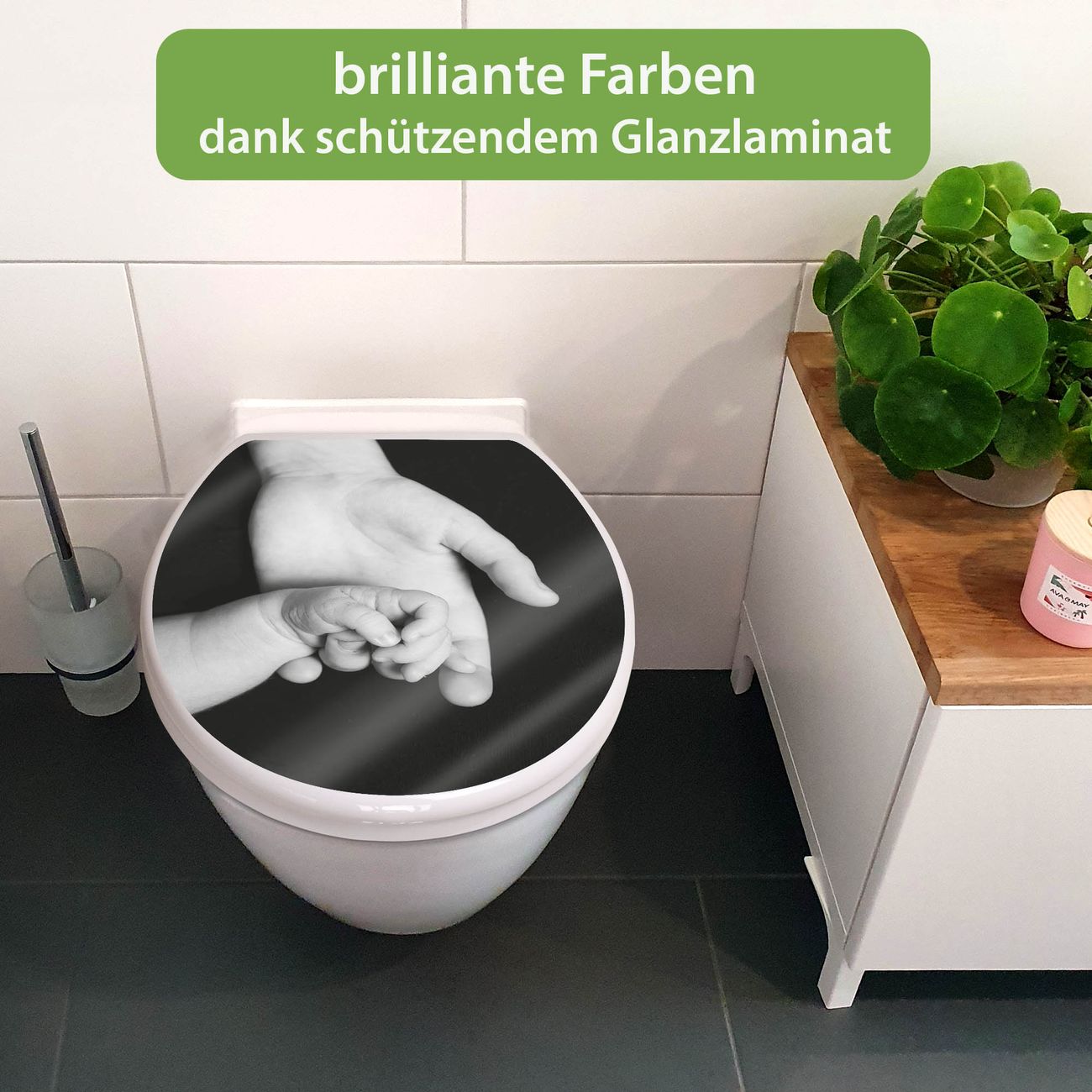 Toilettendeckel weiß mit Absenkautomatik Motiv Hands