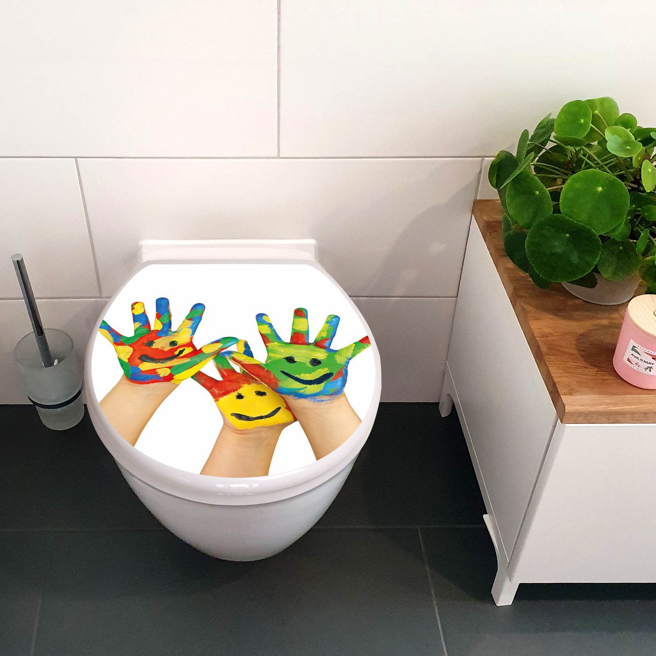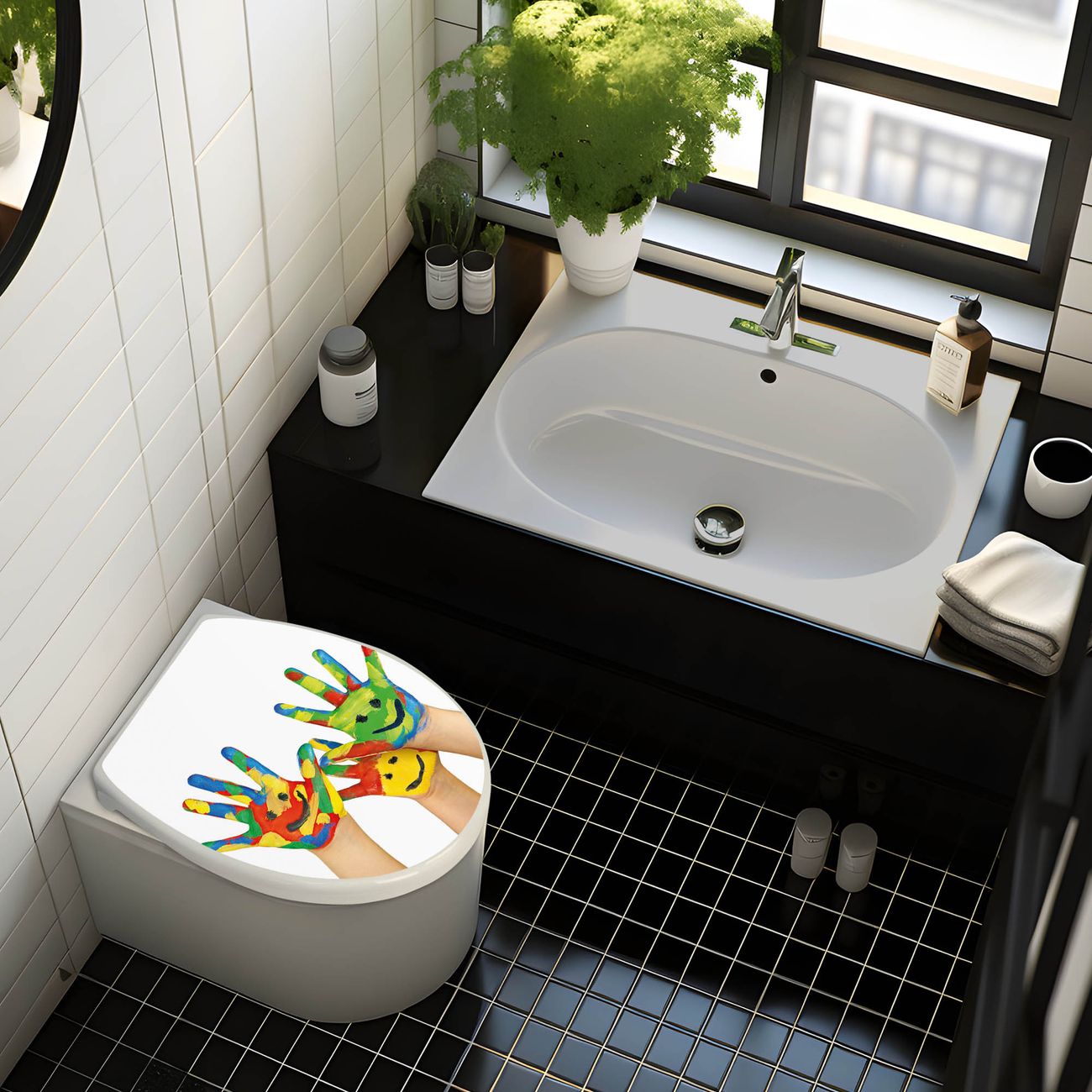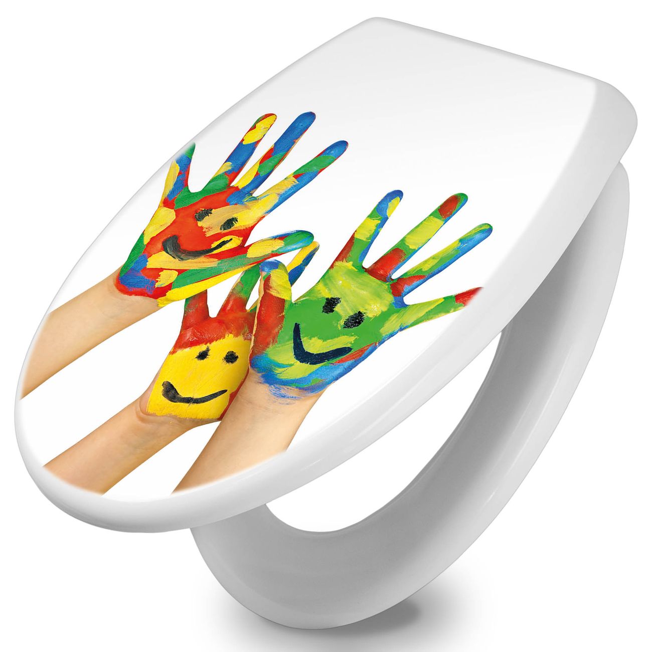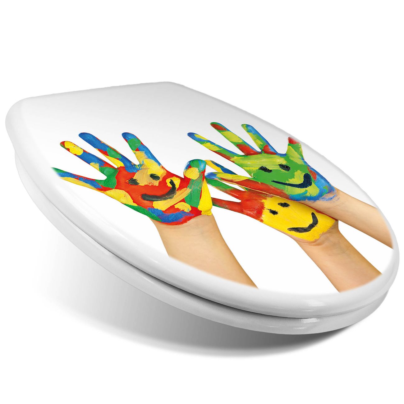 Toilettendeckel weiß mit Absenkautomatik Motiv Happy Hands