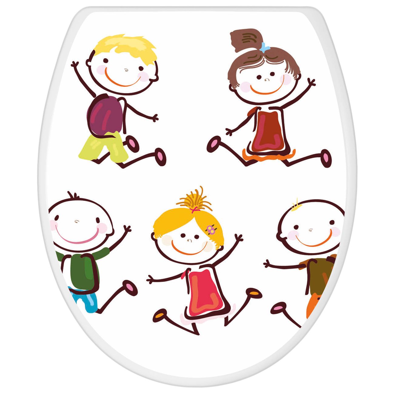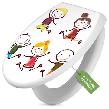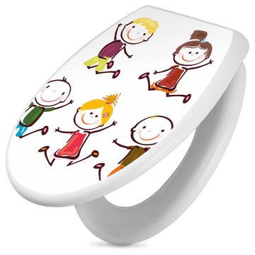 Toilettendeckel weiß mit Absenkautomatik Motiv Happy Kids