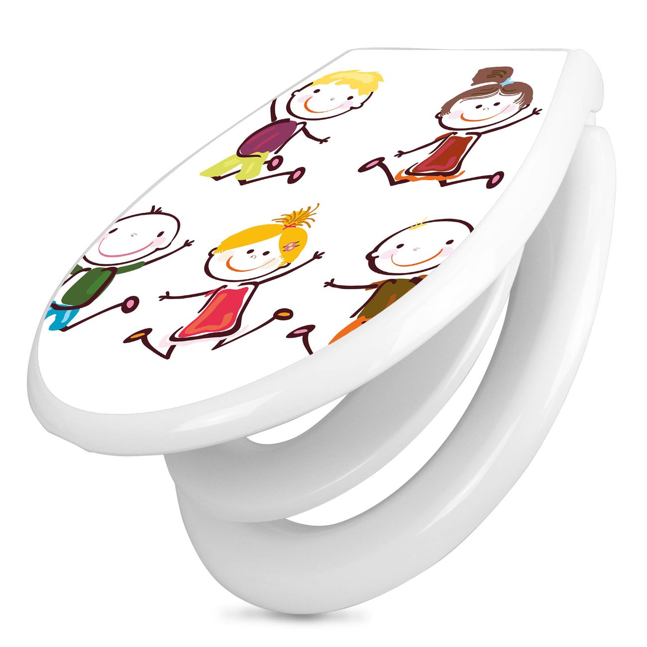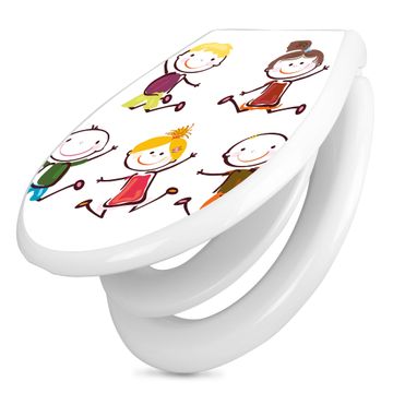 Toilettendeckel weiß mit Absenkautomatik Motiv Happy Kids