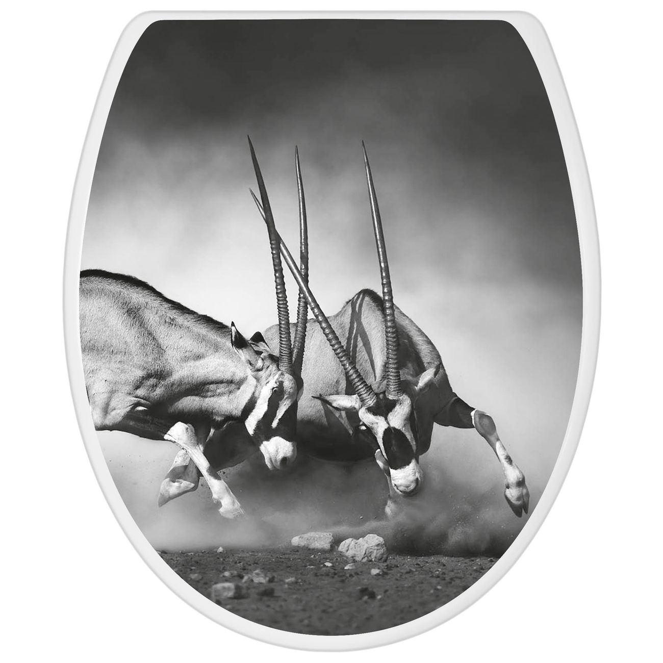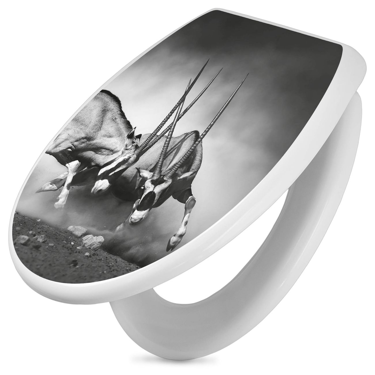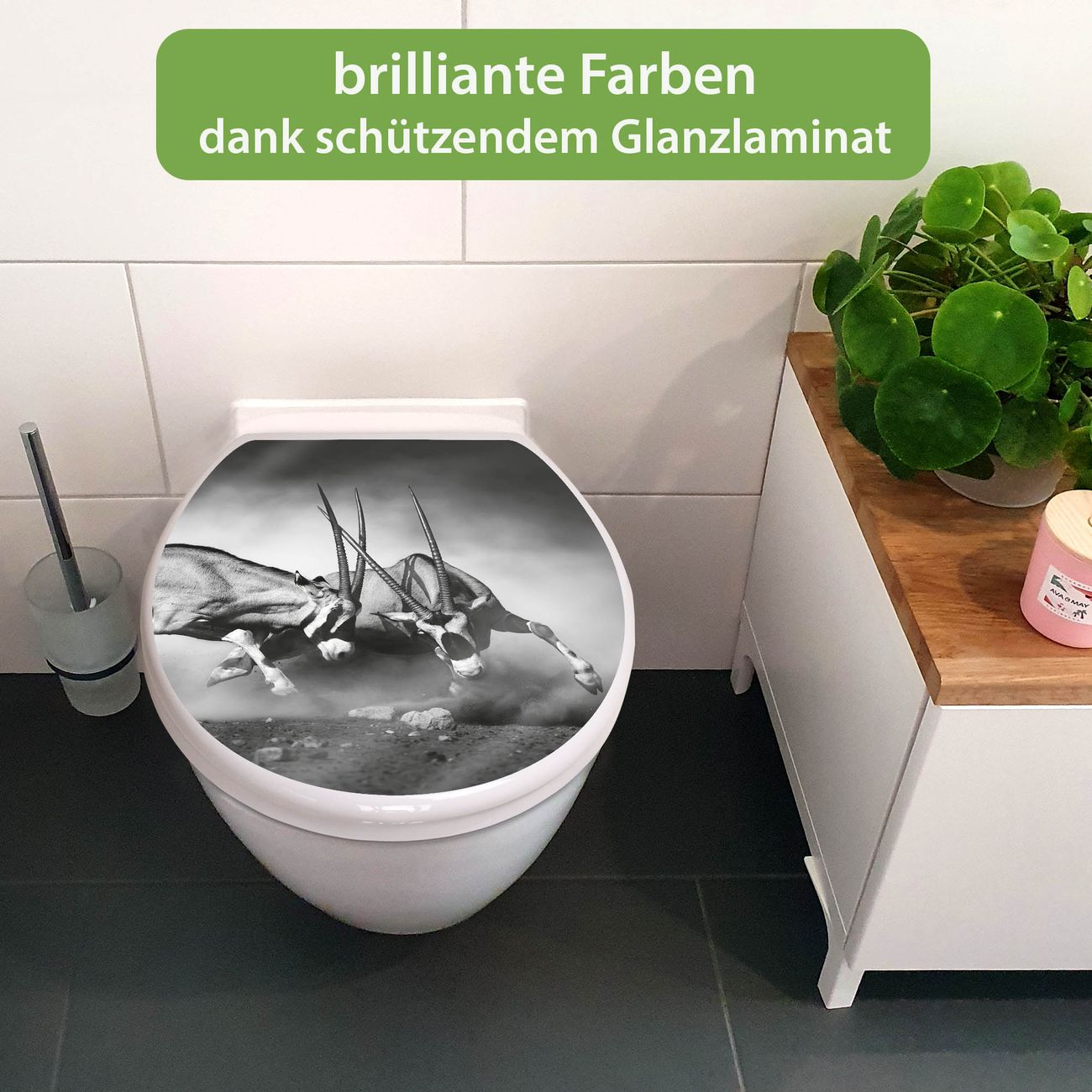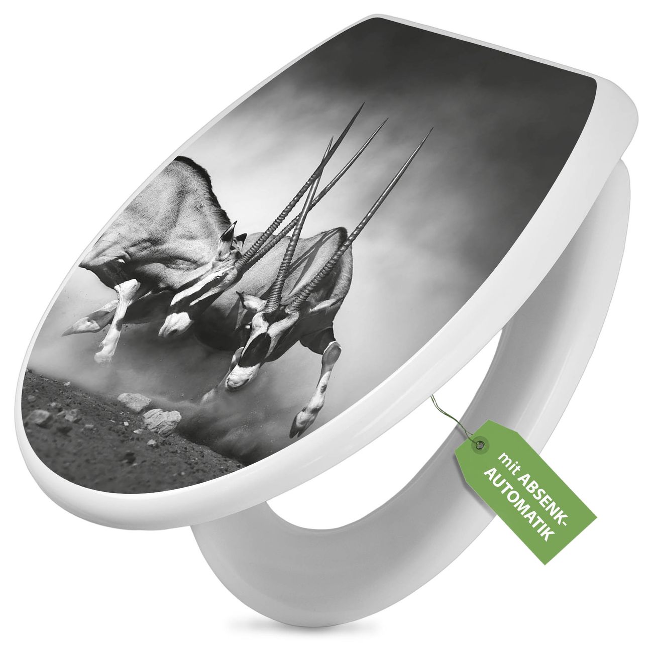 FUNKTION: Mit dem banjado Toilettendeckel mit Absenkautomatik verbinden Sie Design mit Funktionalität. Sie erhalten den WC Sitz in bewährt guter Qualität mit Edelstahl Scharnieren und Montagematerial. DESIGN: Der Klodeckel hat eine ansprechende Optik, eine besondere Form und ist sehr stabil. Das Motiv besteht aus einer farbbrillianten Motivfolie, die durch ein Schutzlaminat zusätzlich vor Kratzern schützt. DETAILS: Der Toilettensitz besteht aus Duroplast, die Scharniere sind aus hochwertigem Edelstahl, Materialien die Ihnen eine leichte und hygienische Reinigung ermöglichen. Die Gesamtgröße beträgt 37,3cm x 45cm x 5cm, die Grundfarbe ist weiß. NUTZEN: Mit Hilfe der detaillierten Aufbauanleitung ermöglichen wir eine schnelle und unkomplizierte Montage. Die banjado Klobrille ist universell geeignet für alle gängigen WC Schüsseln. Der Lochabstand zur Befestigung kann variable eingestellt werden. BANJADO: Ihr WC-Deckel wird in Sachsen in einer kleinen Manufaktur von Hand veredelt. Die Motivfolie ist lösungsmittelfrei und schutzlaminiert, für einen langen Halt. Wir wünschen viel Freude bei der Auswahl eines schönen Motivs.