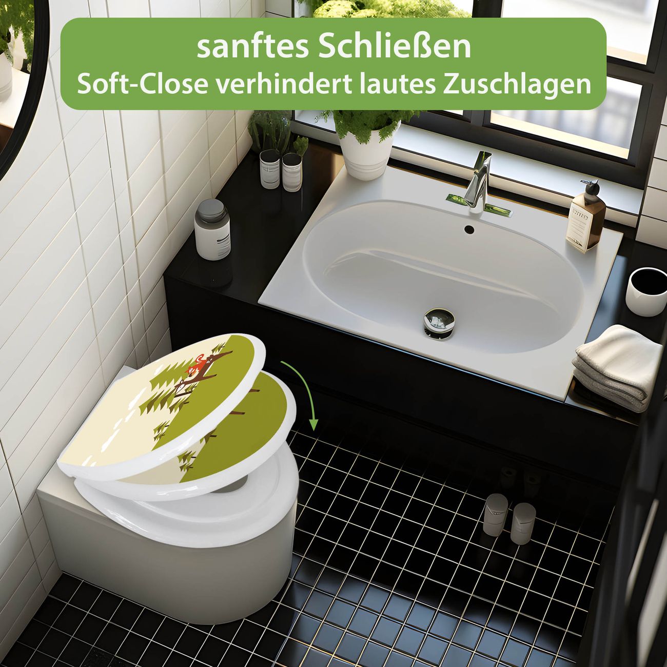 Toilettendeckel weiß mit Absenkautomatik Motiv Heimweg
