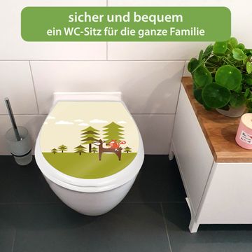 FUNKTION:Mit dem banjado Familien WC Sitz mit Absenkautomatik und dem Motiv Motiv Heimweg verbinden Sie Design mit Funktionalität. Sie erhalten den Toilettendeckel in bewährt guter Qualität mit Montagematerial passend auf alle Euro-WC-Becken. Die Gesamtgröße beträgt 37,1cm x 44,9cm x 5cm, die Grundfarbe ist weiß.</p> DESIGN:Der Klodeckel in weiß mit Motiv Motiv Heimweg hat eine ansprechende Optik, eine besondere Form und ist sehr stabil. Das Motiv besteht aus einer farbbrillianten Motivfolie, die durch ein Schutzlaminat zusätzlich vor Kratzern schützt. Der integrierte Kindersitz fügt sich harmonisch ein. DETAILS:Der Toilettensitz mit Soft Close besteht aus hochwertigem Polypropylen, ist geruchlos, ungiftig und kann mit handelsüblicher Seife gereinigt werden. Die Montage kann von von oben oder von unten erfolgen und ist kinderleicht. NUTZEN:Mit Hilfe der detaillierten Aufbauanleitung ermöglichen wir eine schnelle und unkomplizierte Montage. Die banjado Klobrille ist universell geeignet für alle Euro-WC-Schüsseln. Der Kindersitz kann unkompliziert entfernt werden. BANJADO:Ihr WC-Deckel wird in Sachsen in einer kleinen Manufaktur von Hand veredelt. Die Motivfolie ist lösungsmittelfrei und schutzlaminiert für einen langen Halt. Wir wünschen viel Freude bei der Auswahl eines schönen Motivs.