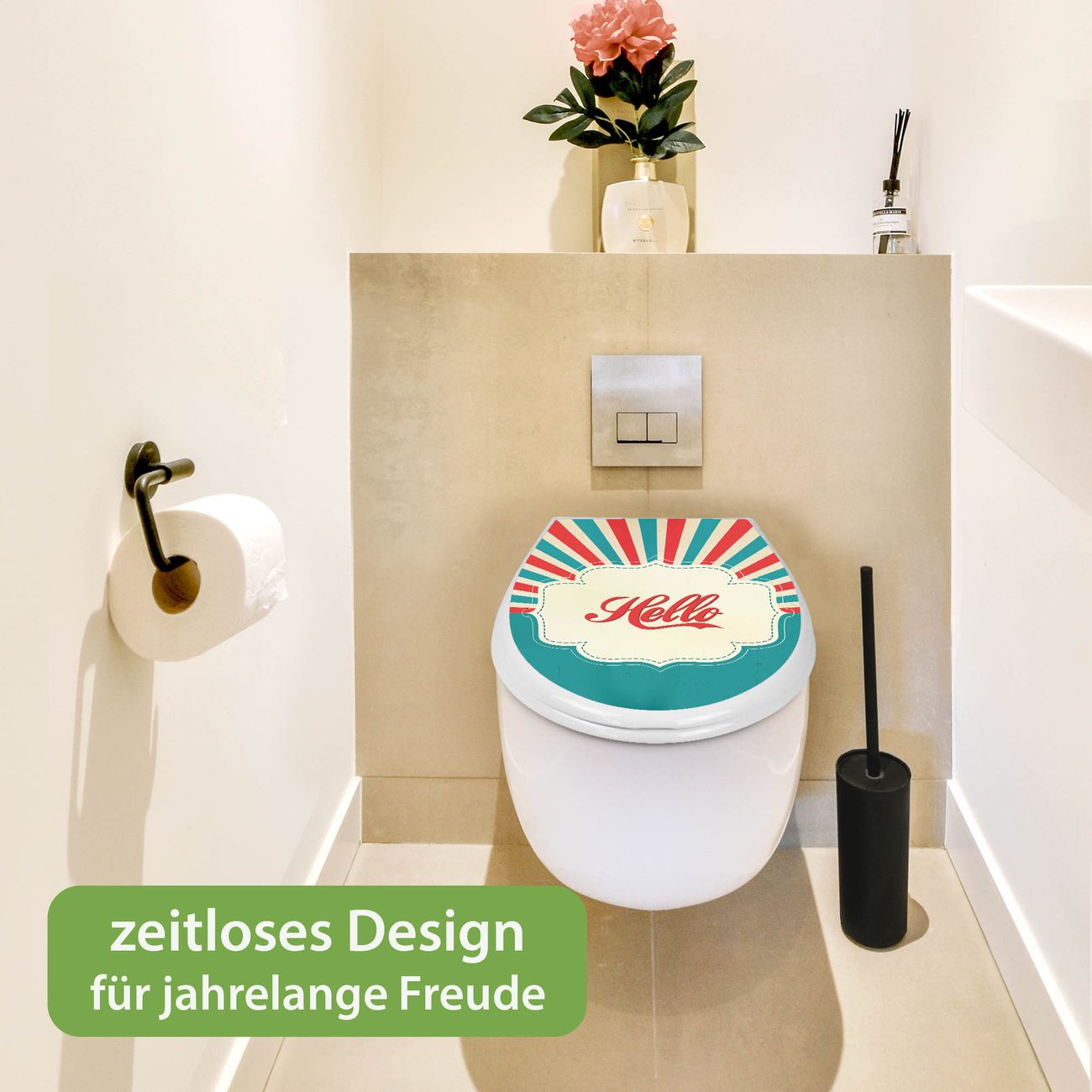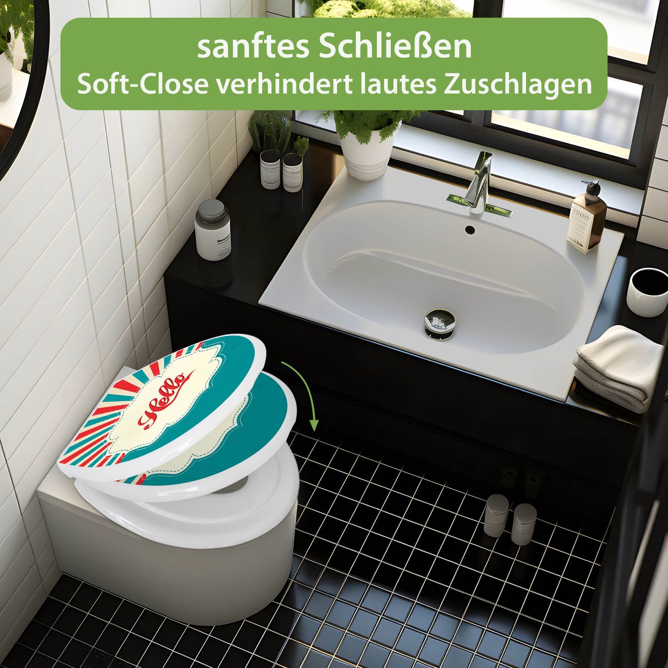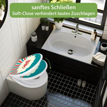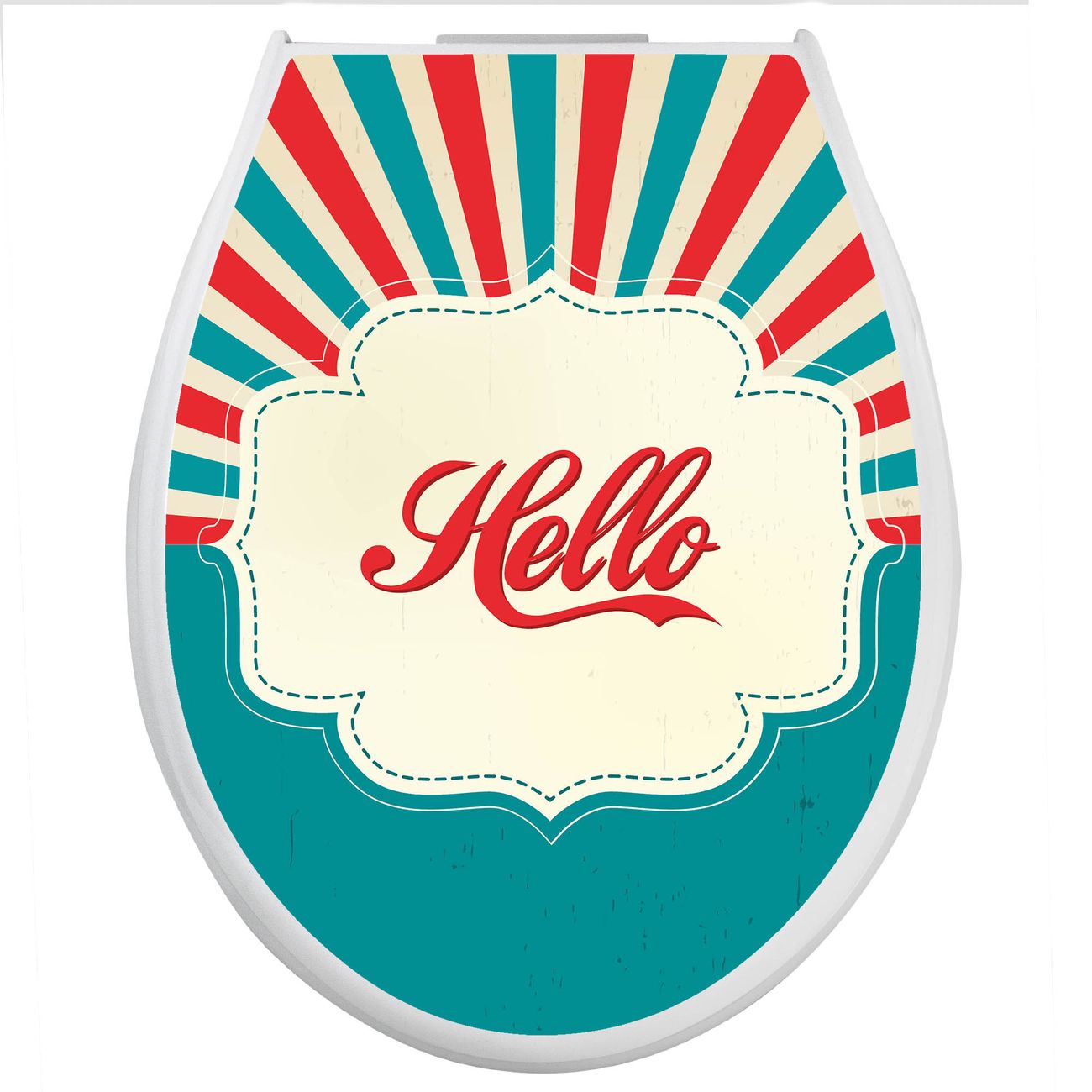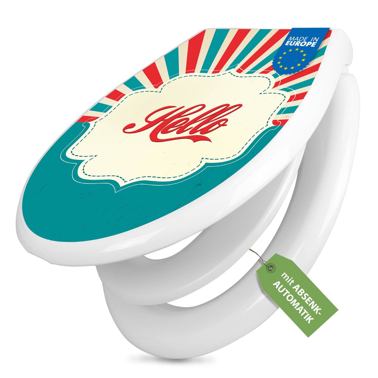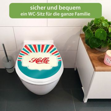 Toilettendeckel weiß mit Absenkautomatik Motiv Hello