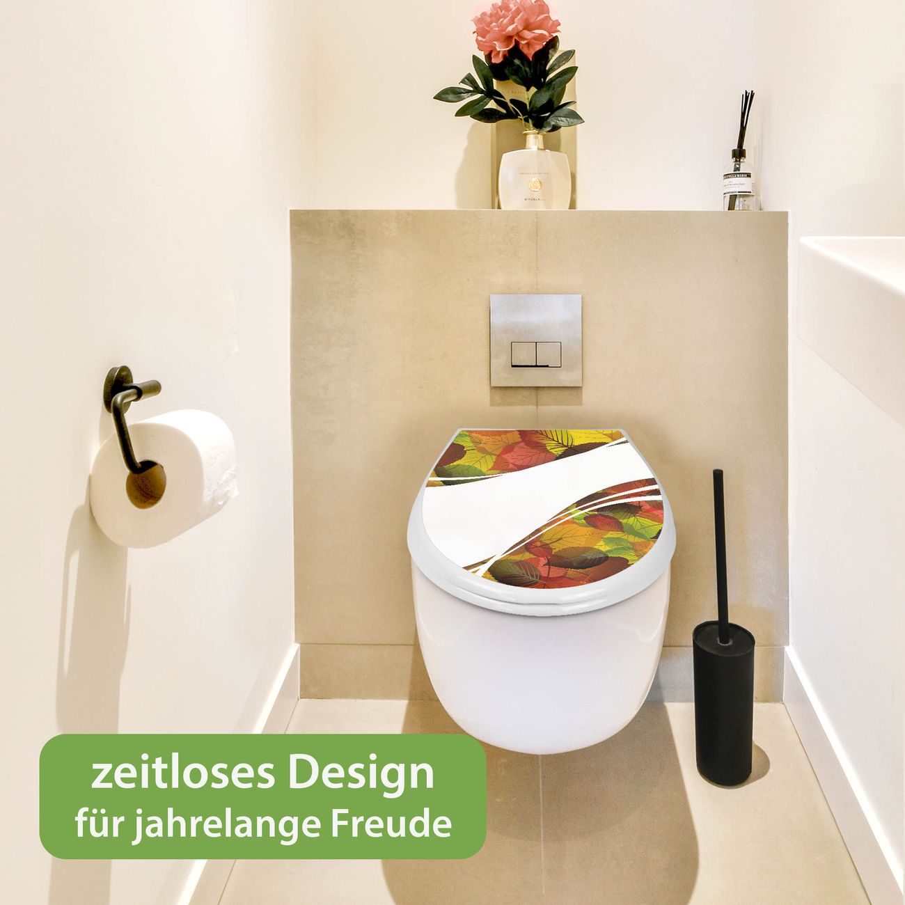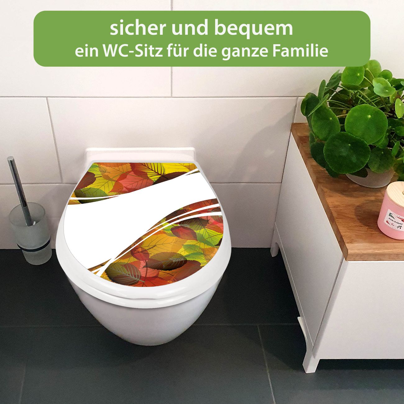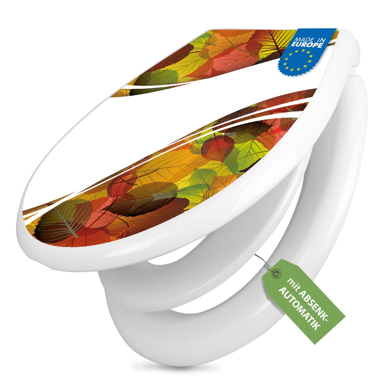Toilettendeckel weiß mit Absenkautomatik Motiv Herbstlaub