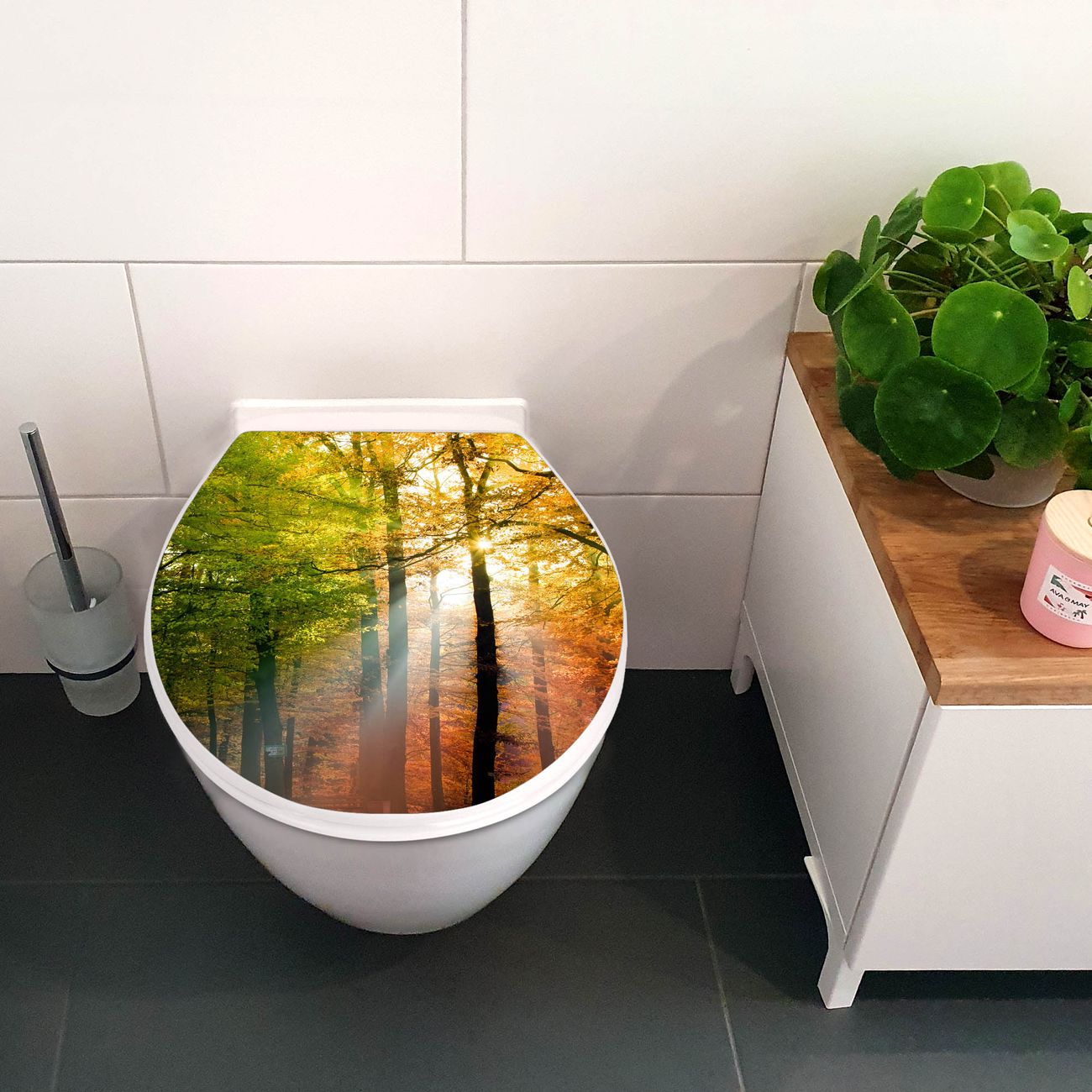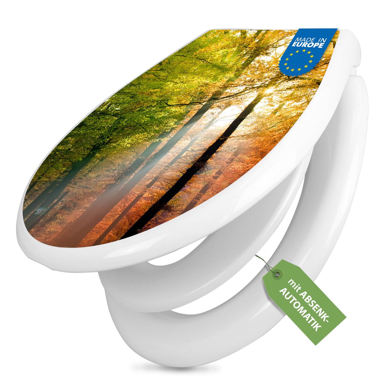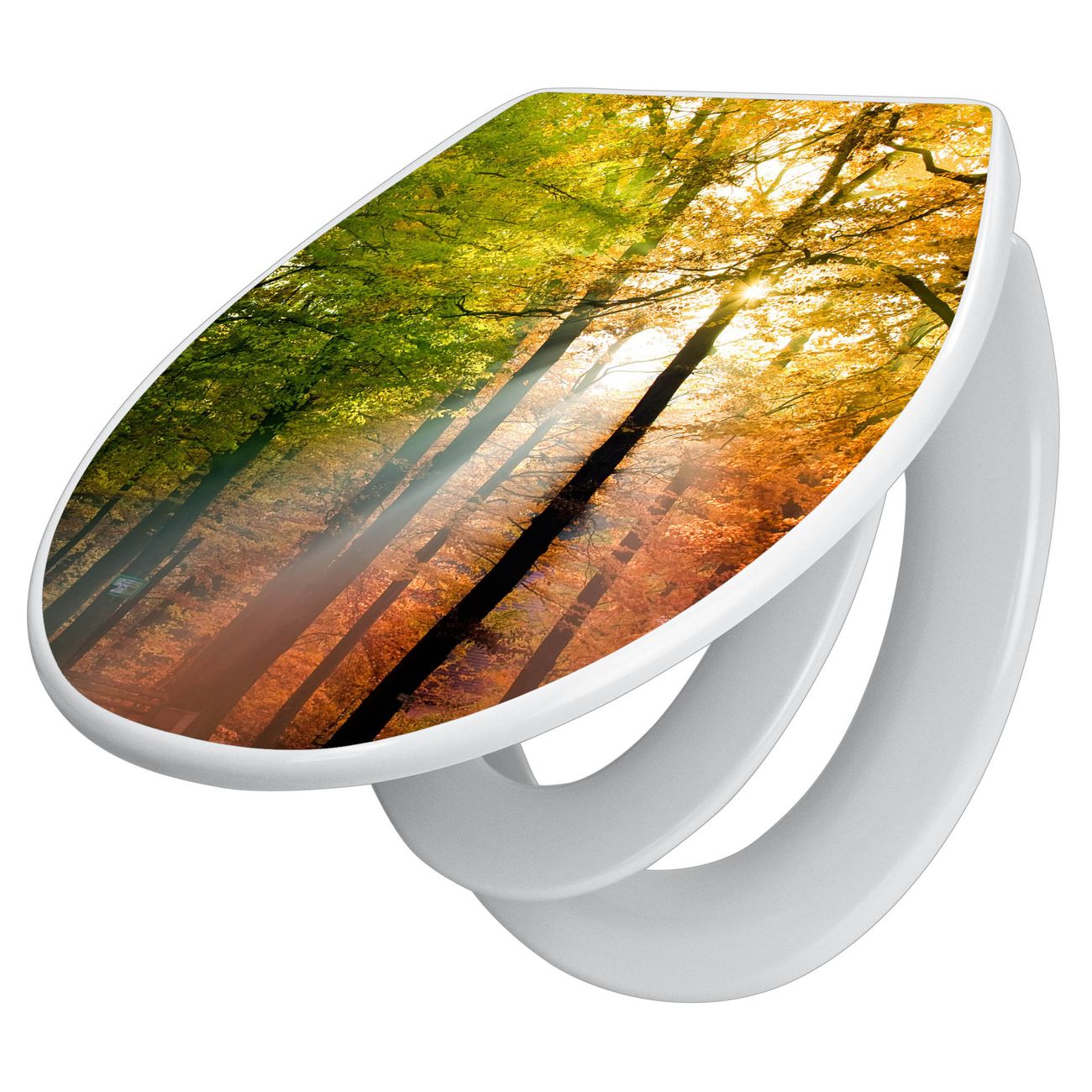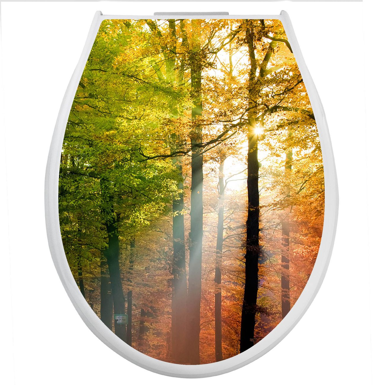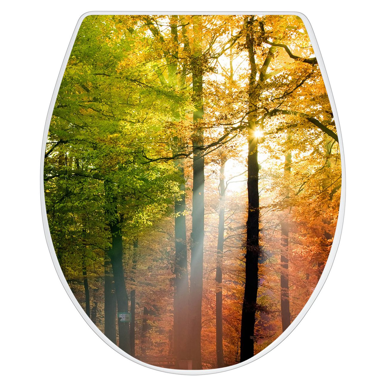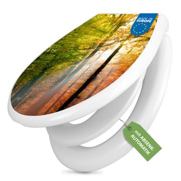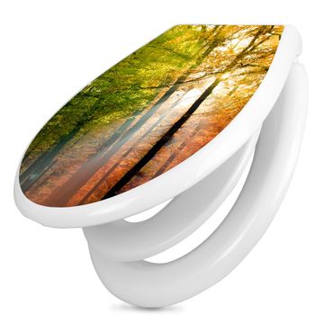 Toilettendeckel weiß mit Absenkautomatik Motiv Herbstwald