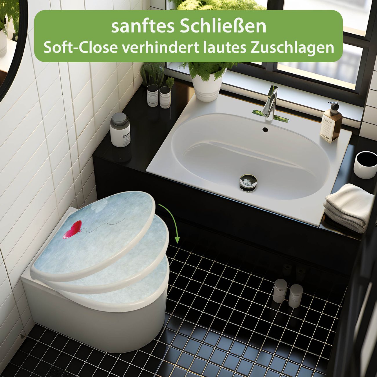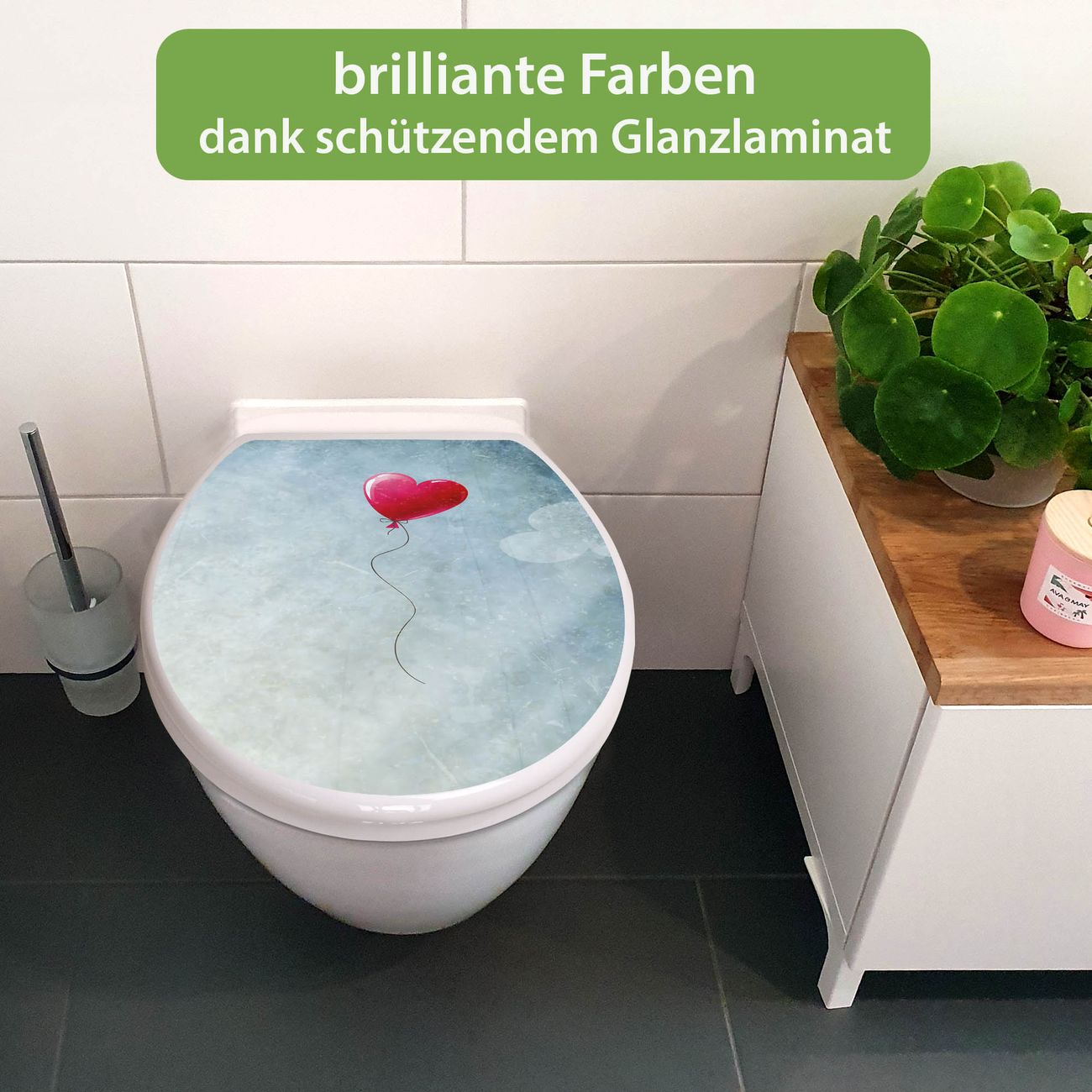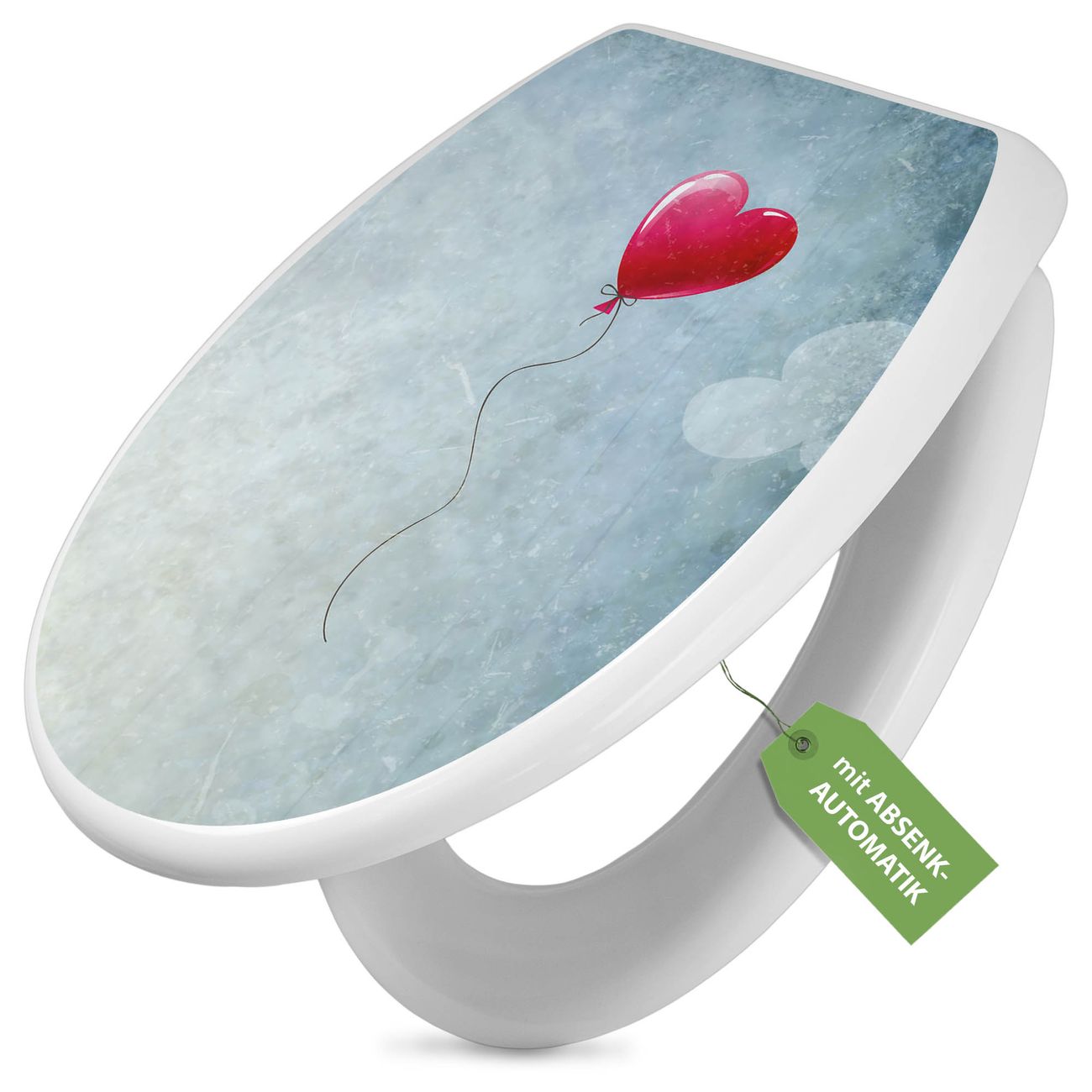 Toilettendeckel weiß mit Absenkautomatik Motiv Herzballon