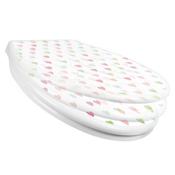 Toilettendeckel weiß mit Absenkautomatik Motiv Herzen Auf Weiß