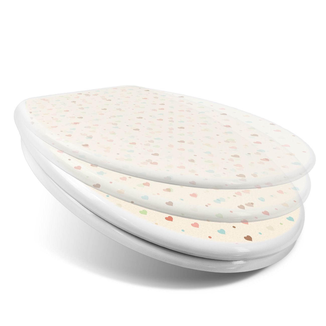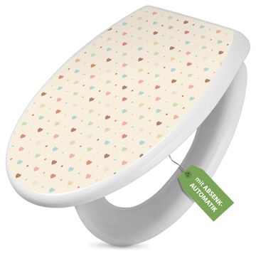 Toilettendeckel weiß mit Absenkautomatik Motiv Herzen bunt
