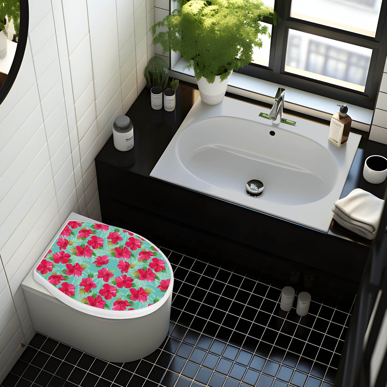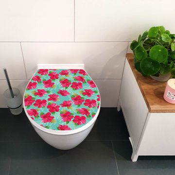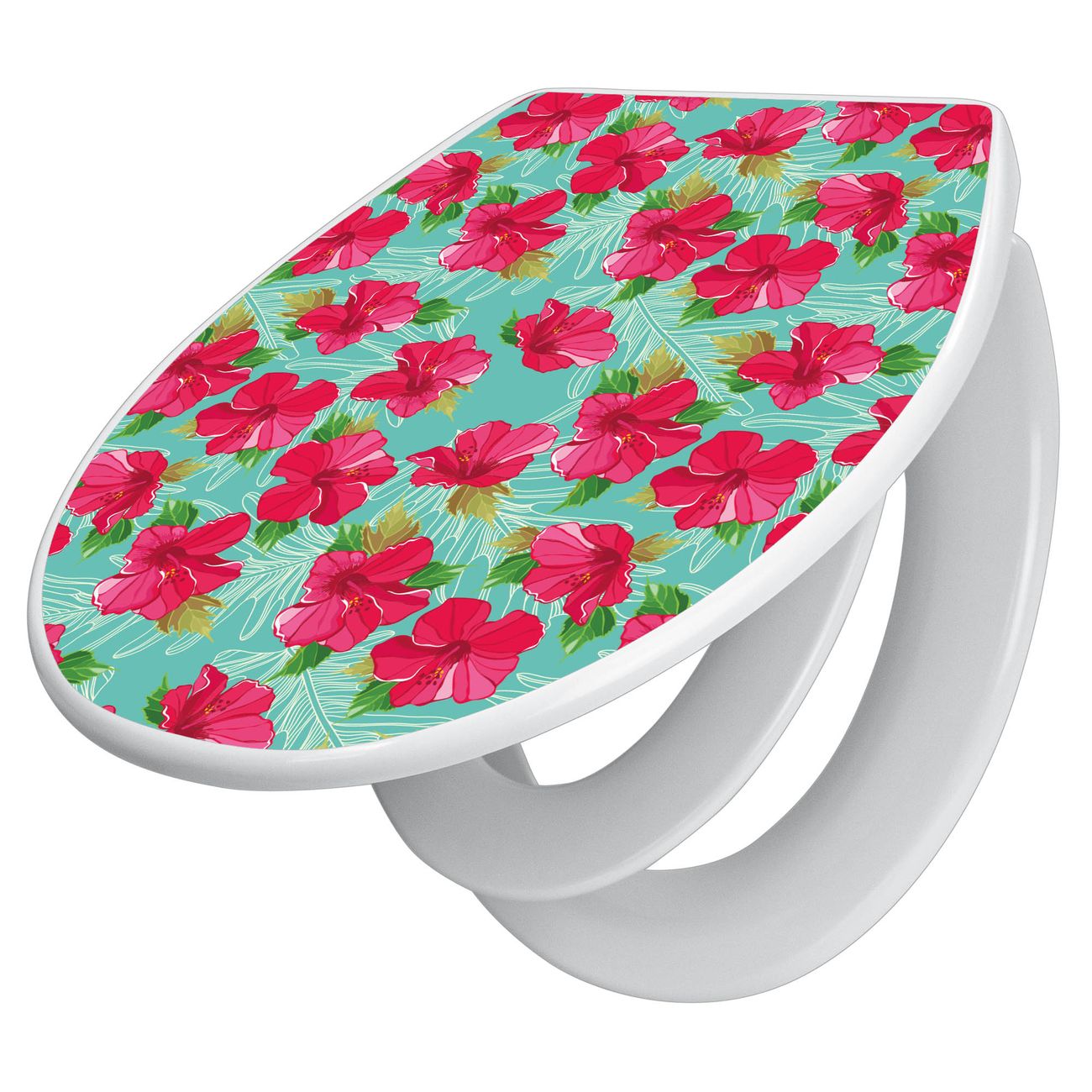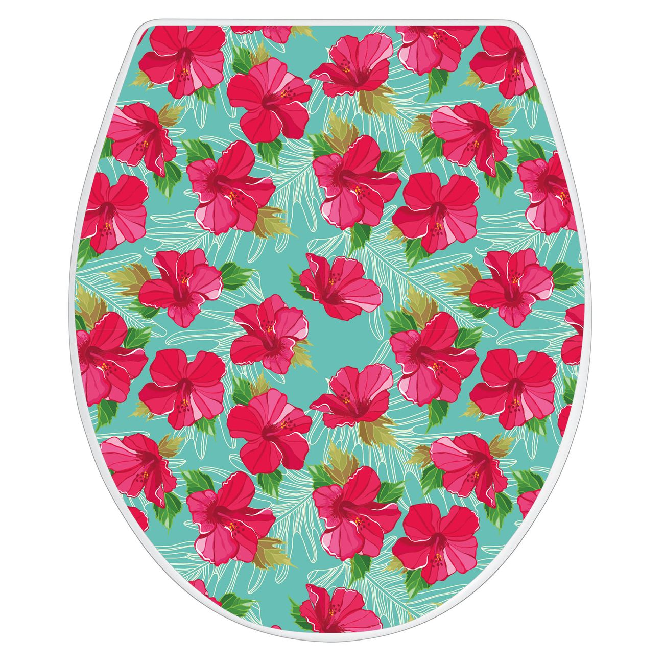 Toilettendeckel weiß mit Absenkautomatik Motiv Hibiskus