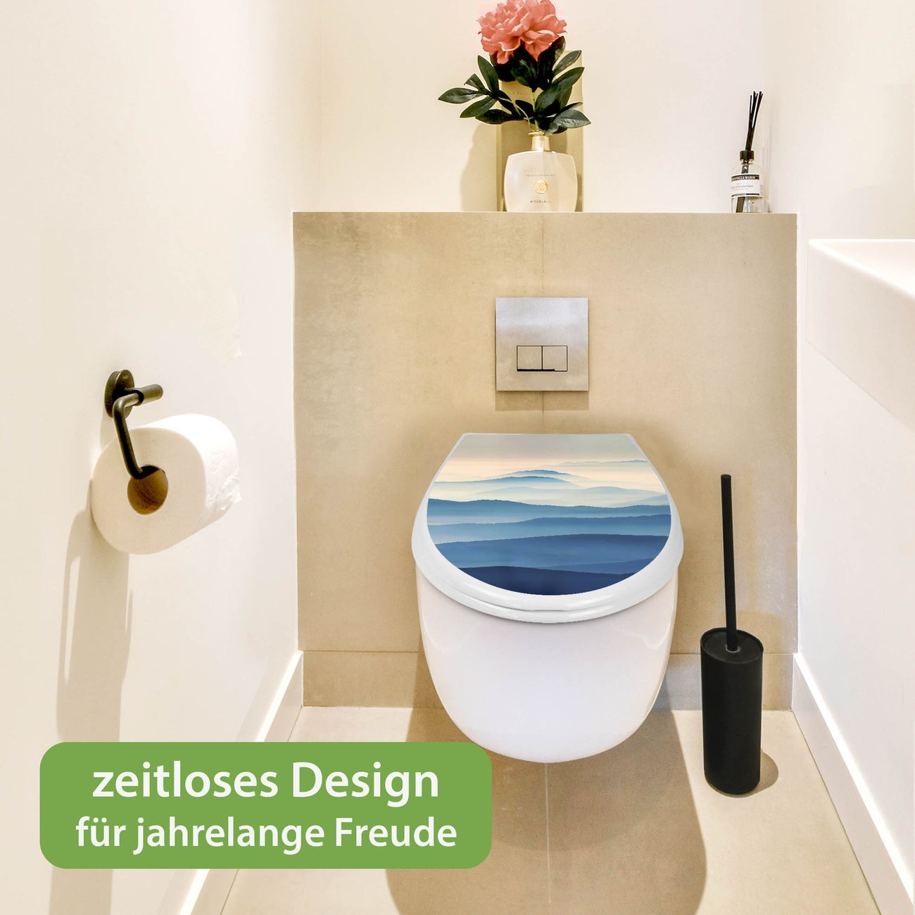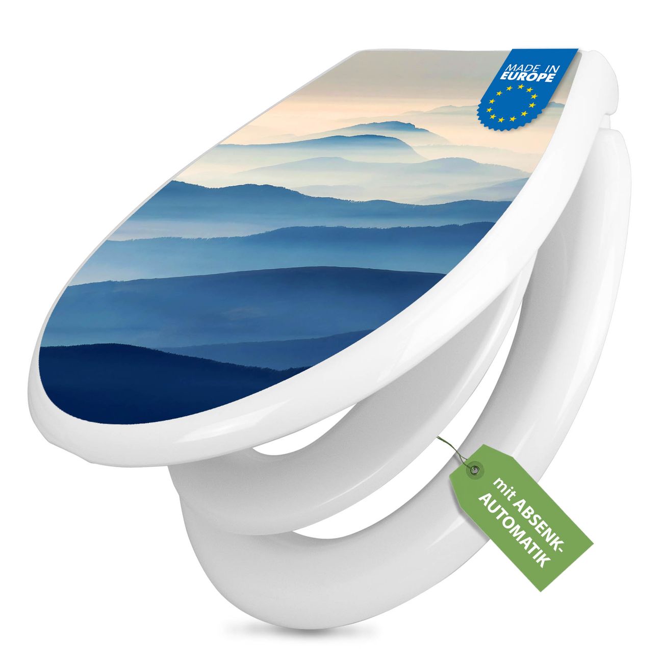 Toilettendeckel weiß mit Absenkautomatik Motiv Hinter den Bergen