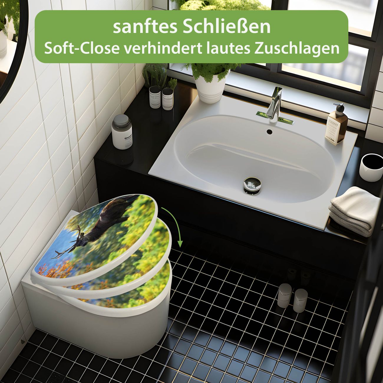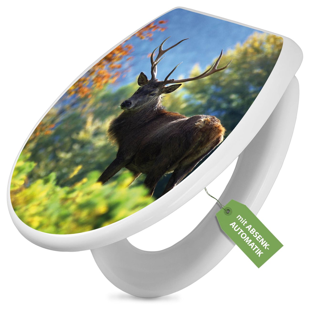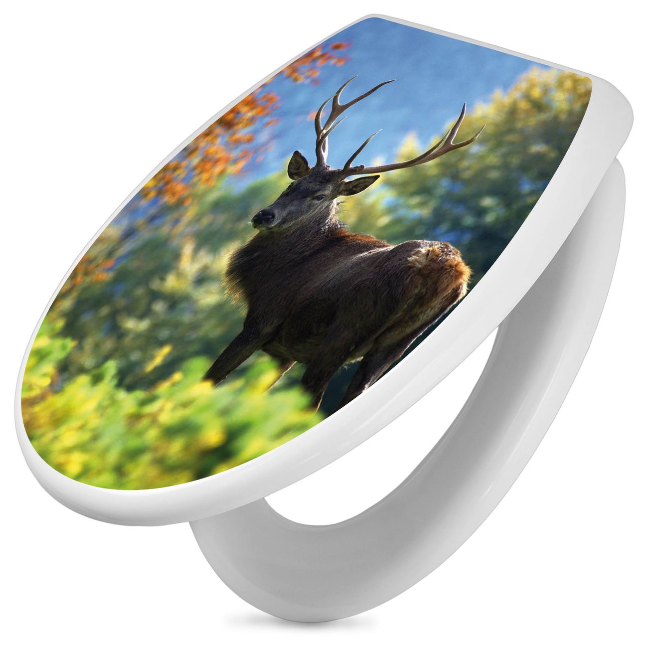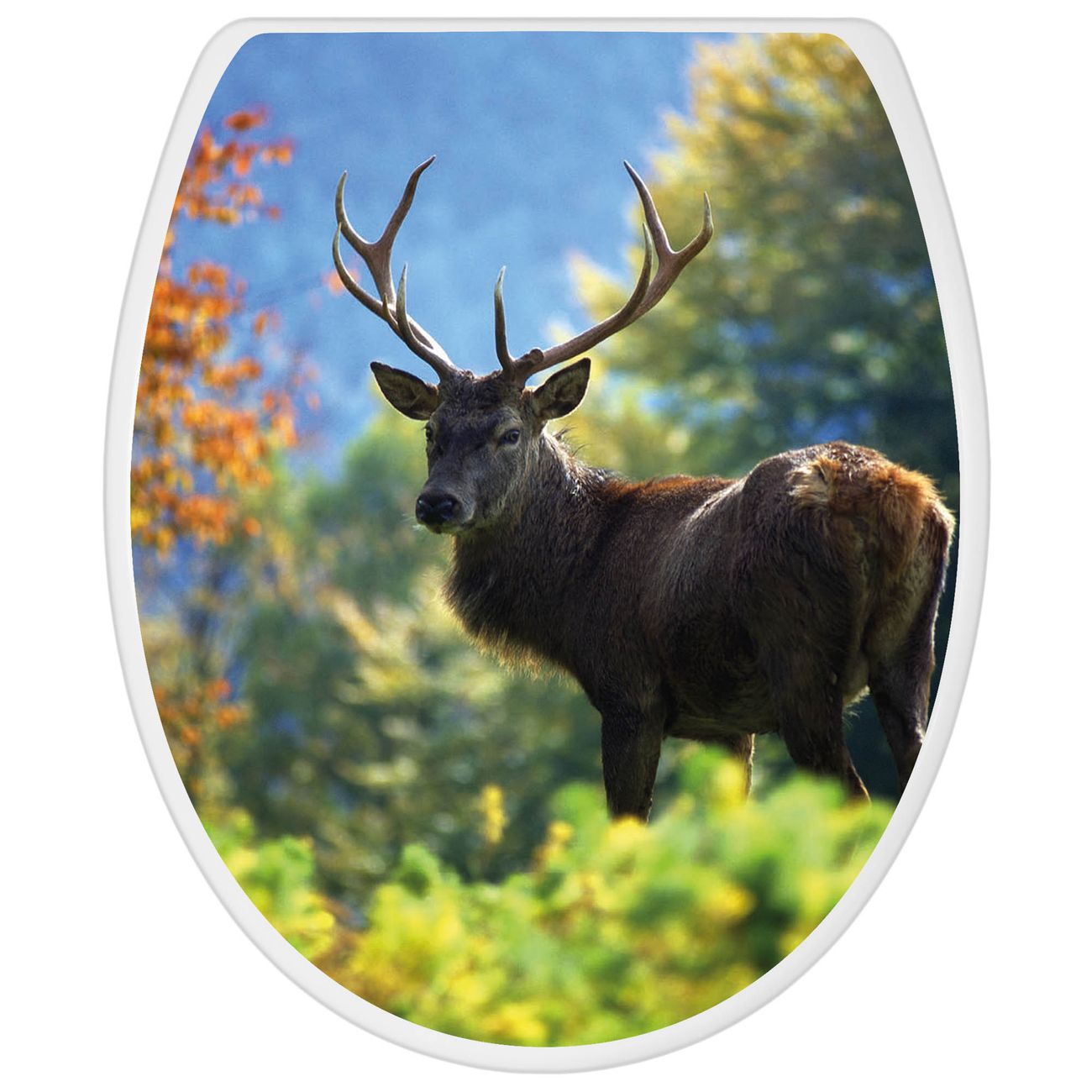 Toilettendeckel weiß mit Absenkautomatik Motiv Hirsch