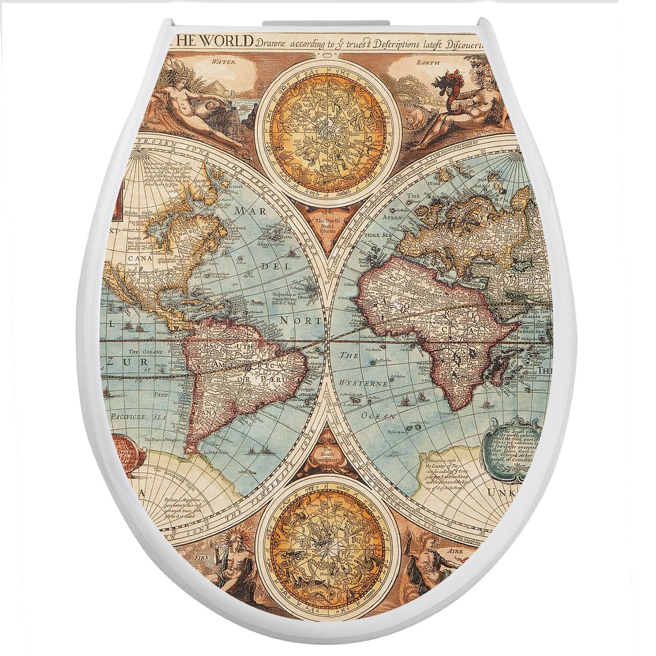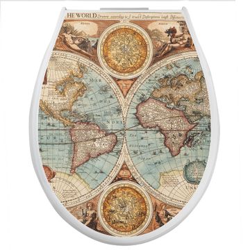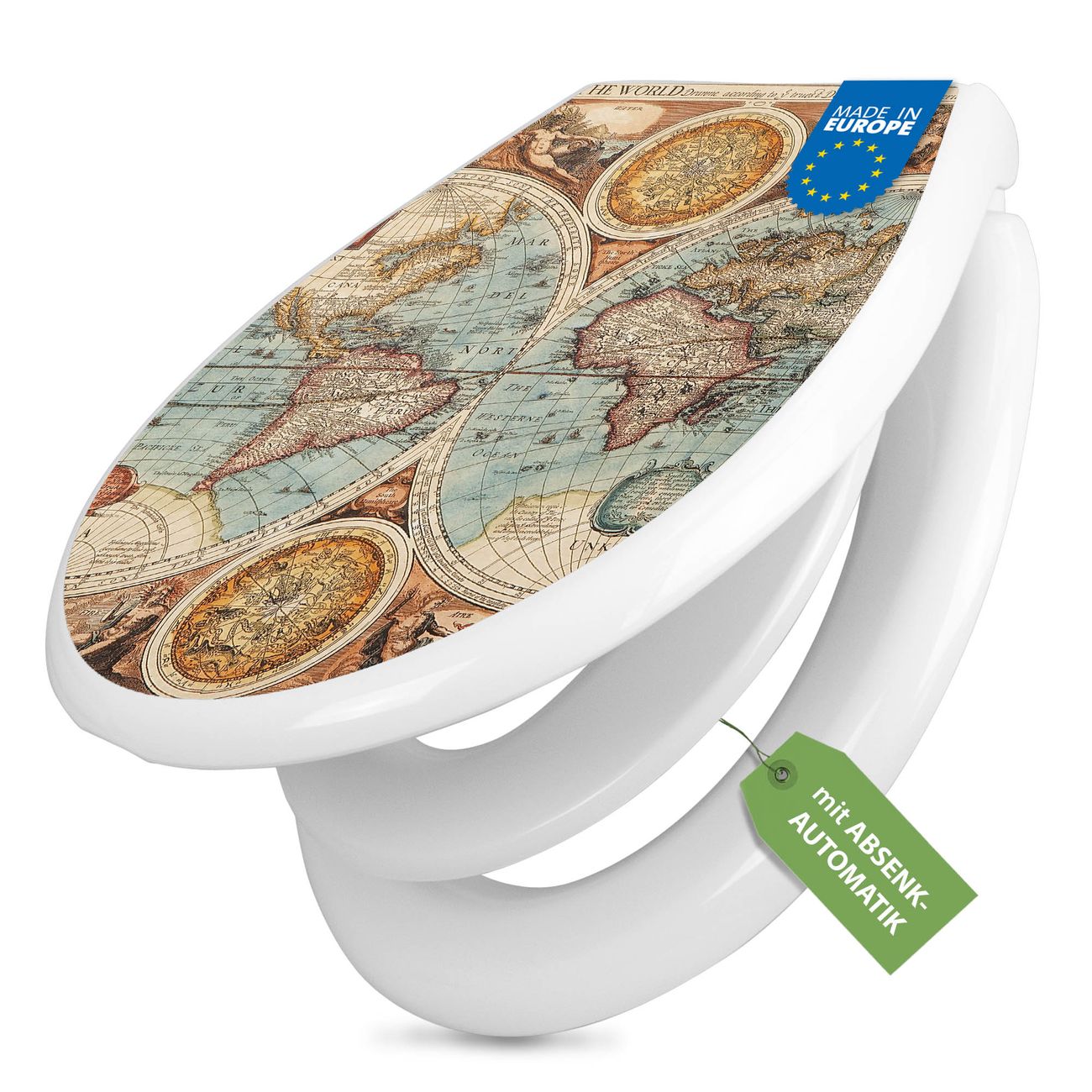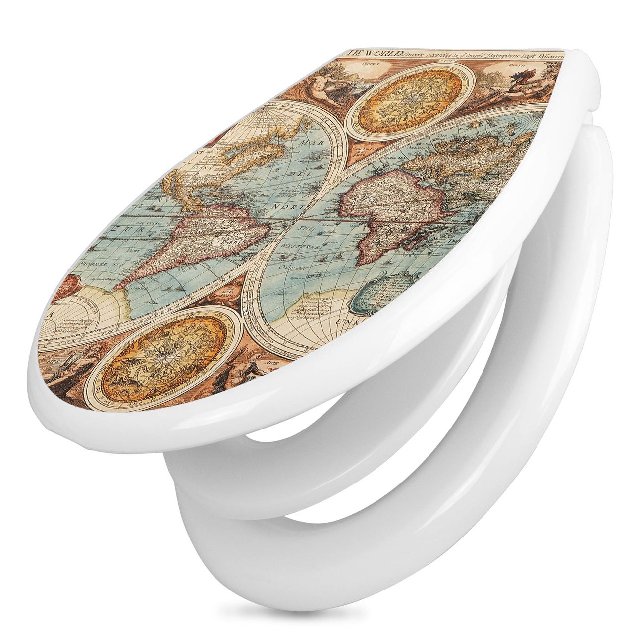 Toilettendeckel weiß mit Absenkautomatik Motiv Historische Weltkarte