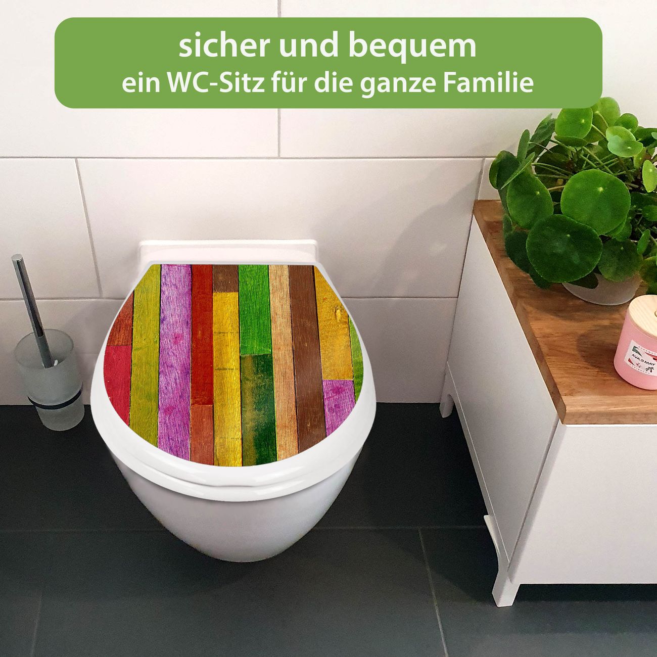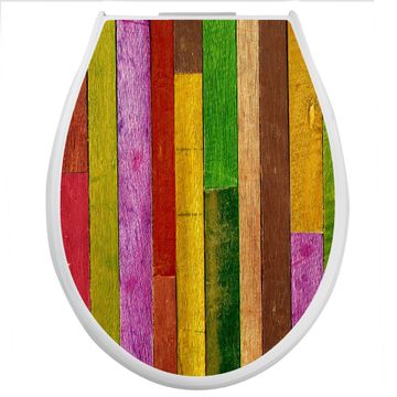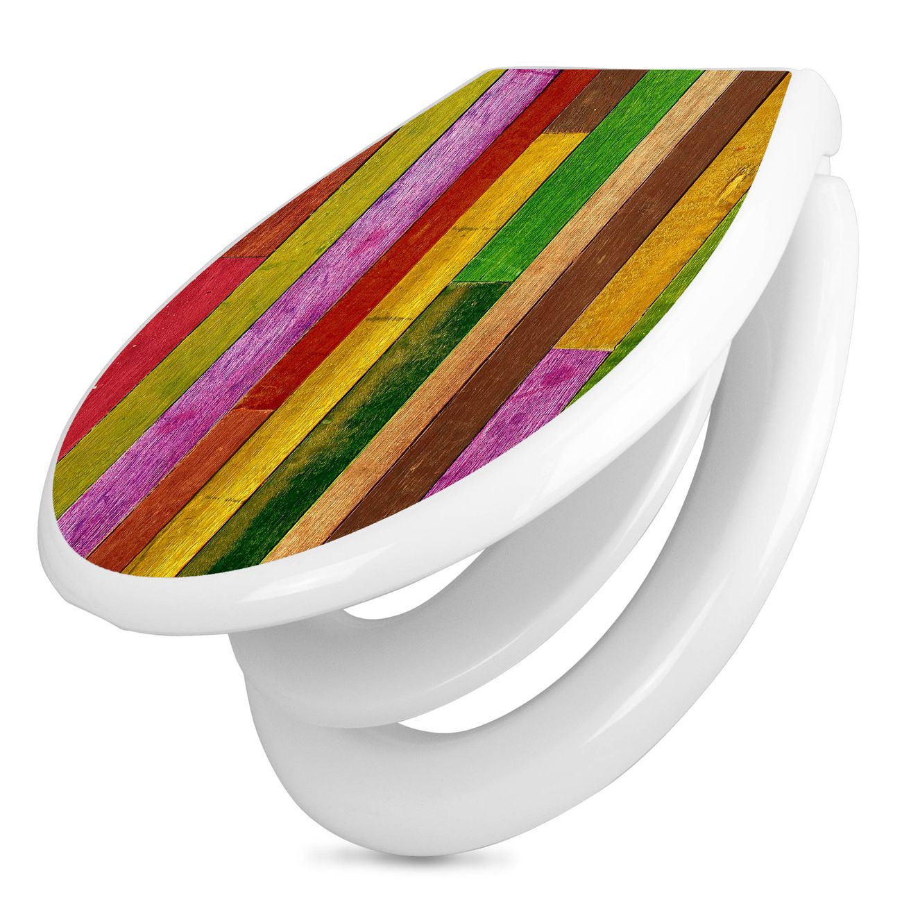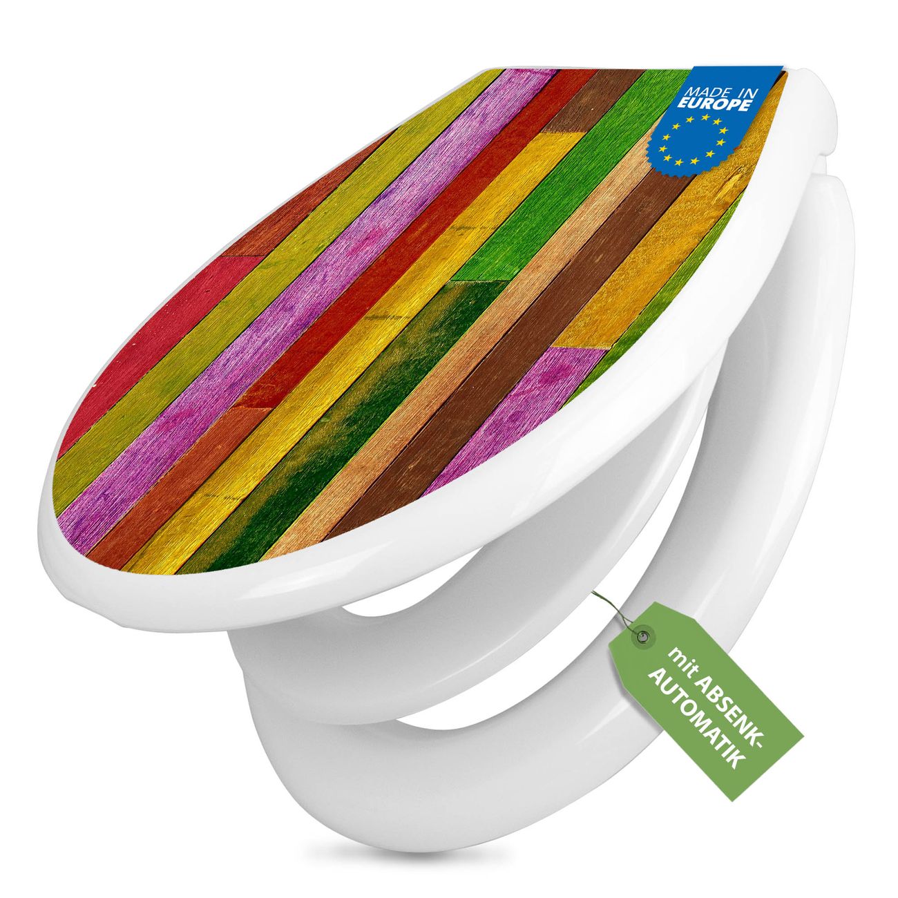 Toilettendeckel weiß mit Absenkautomatik Motiv Holz Collage Bunt