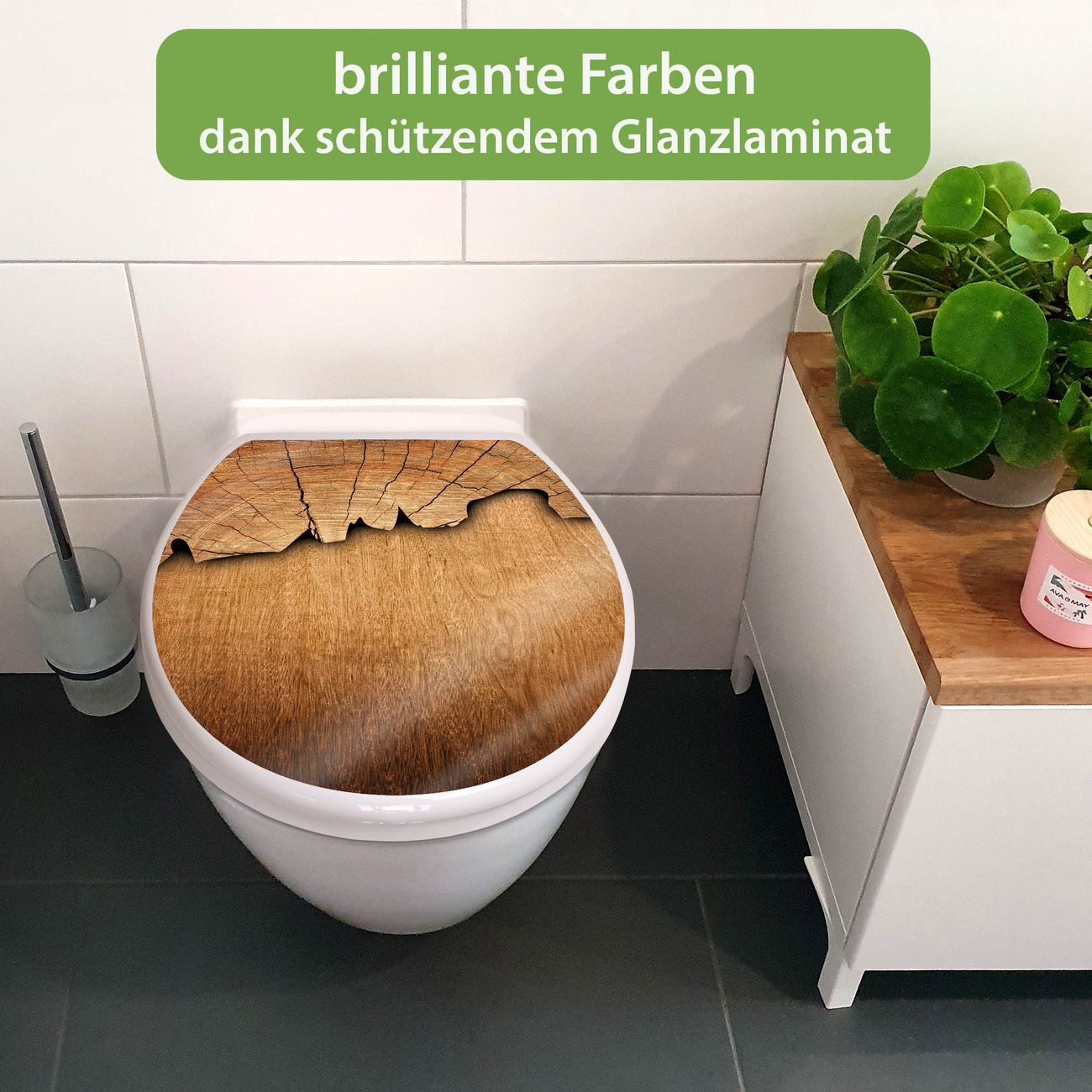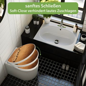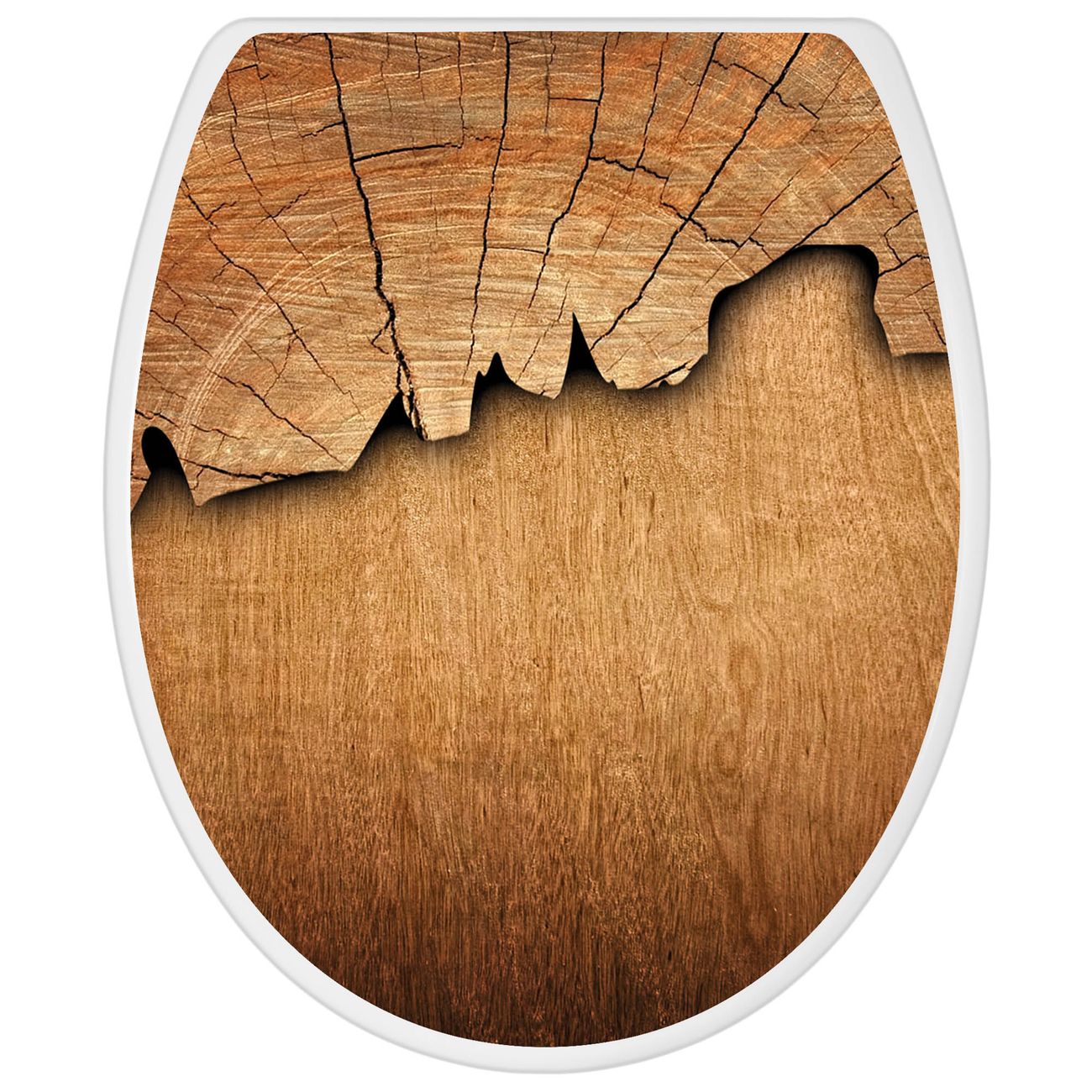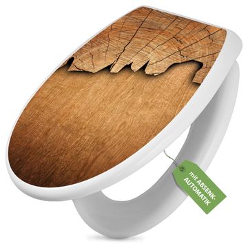 Toilettendeckel weiß mit Absenkautomatik Motiv Holz