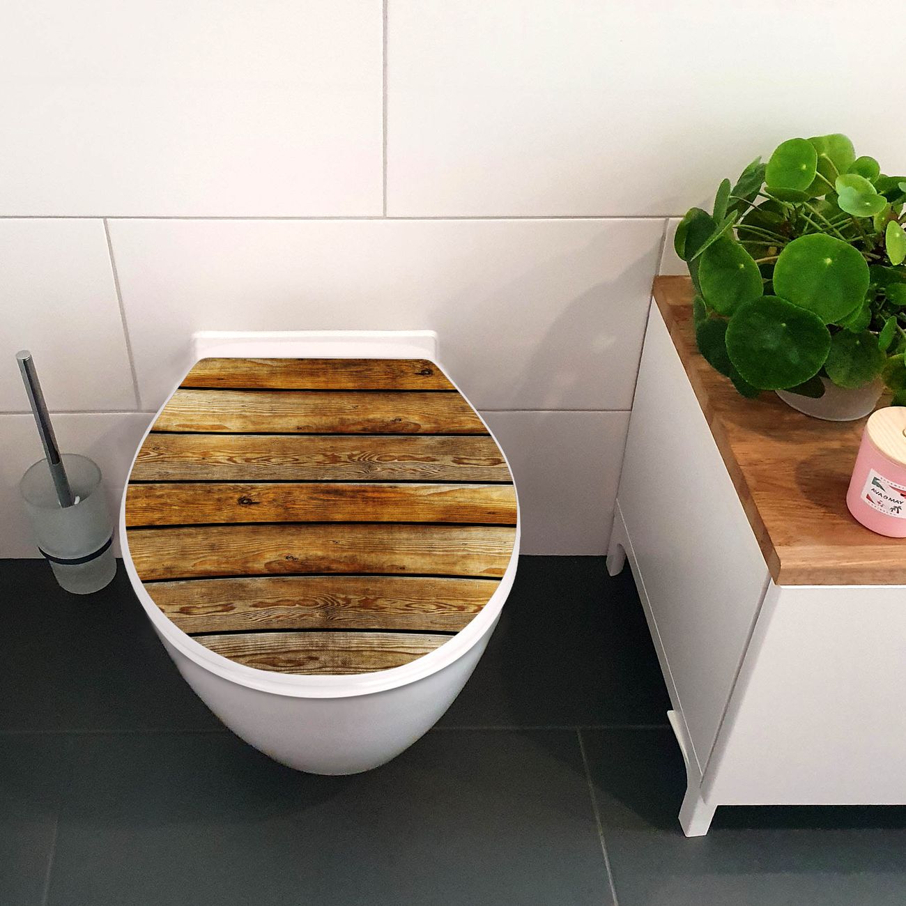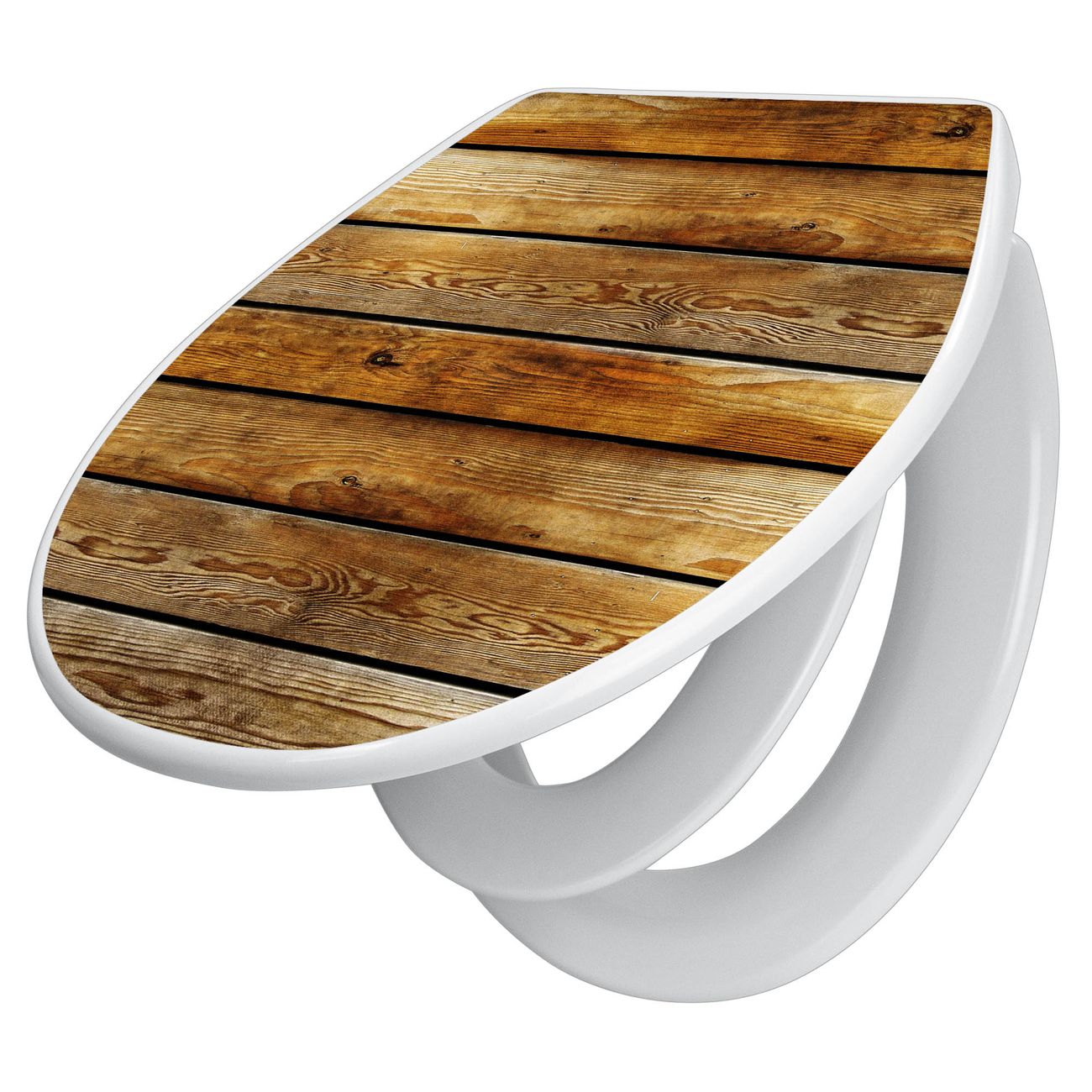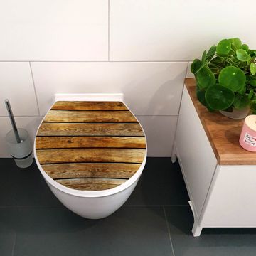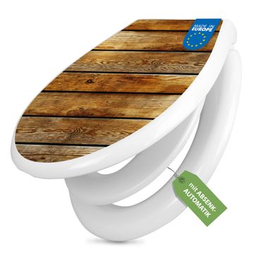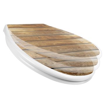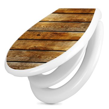 Toilettendeckel weiß mit Absenkautomatik Motiv Holzbretter
