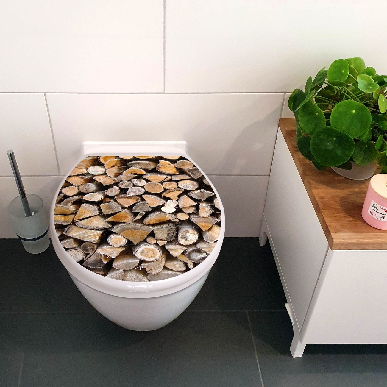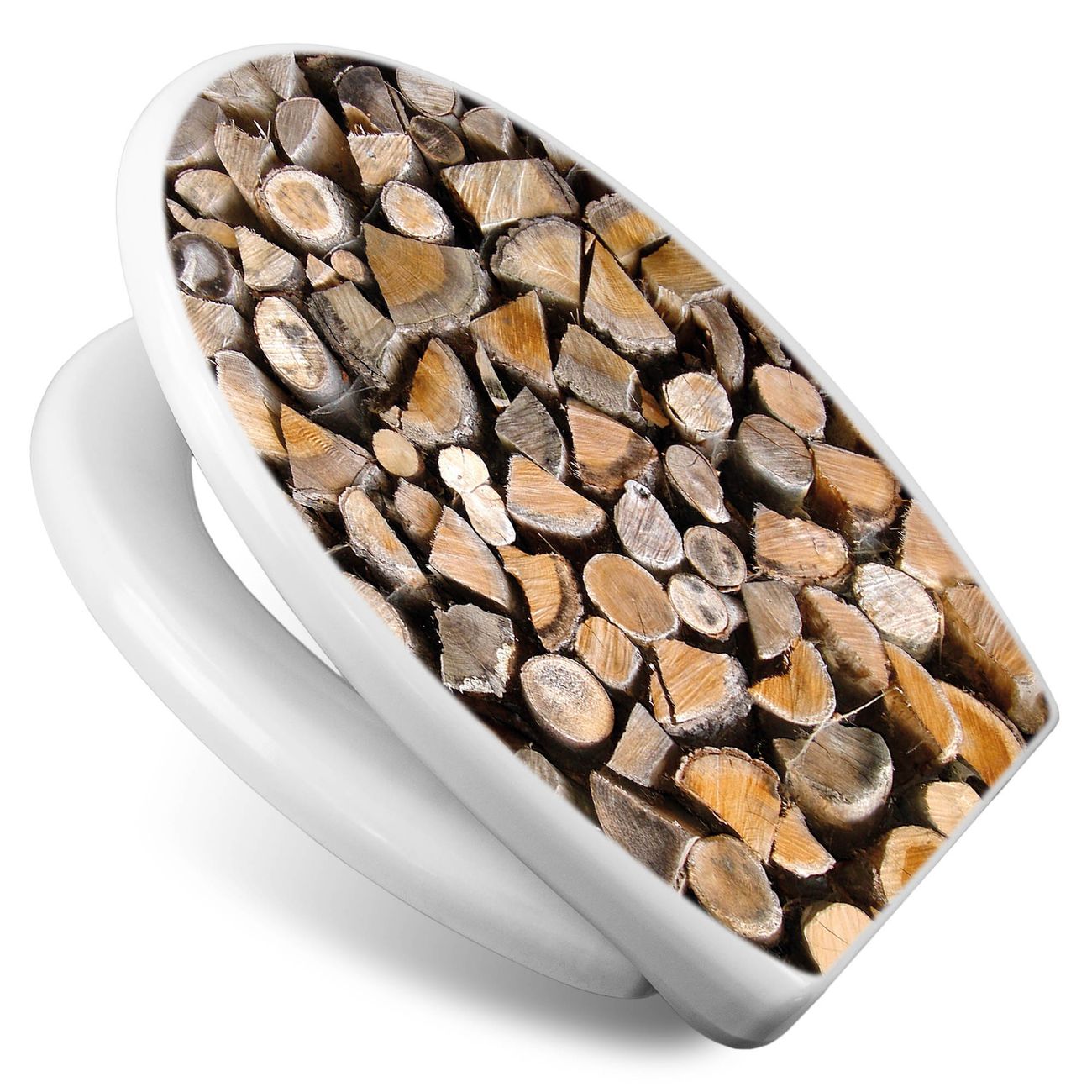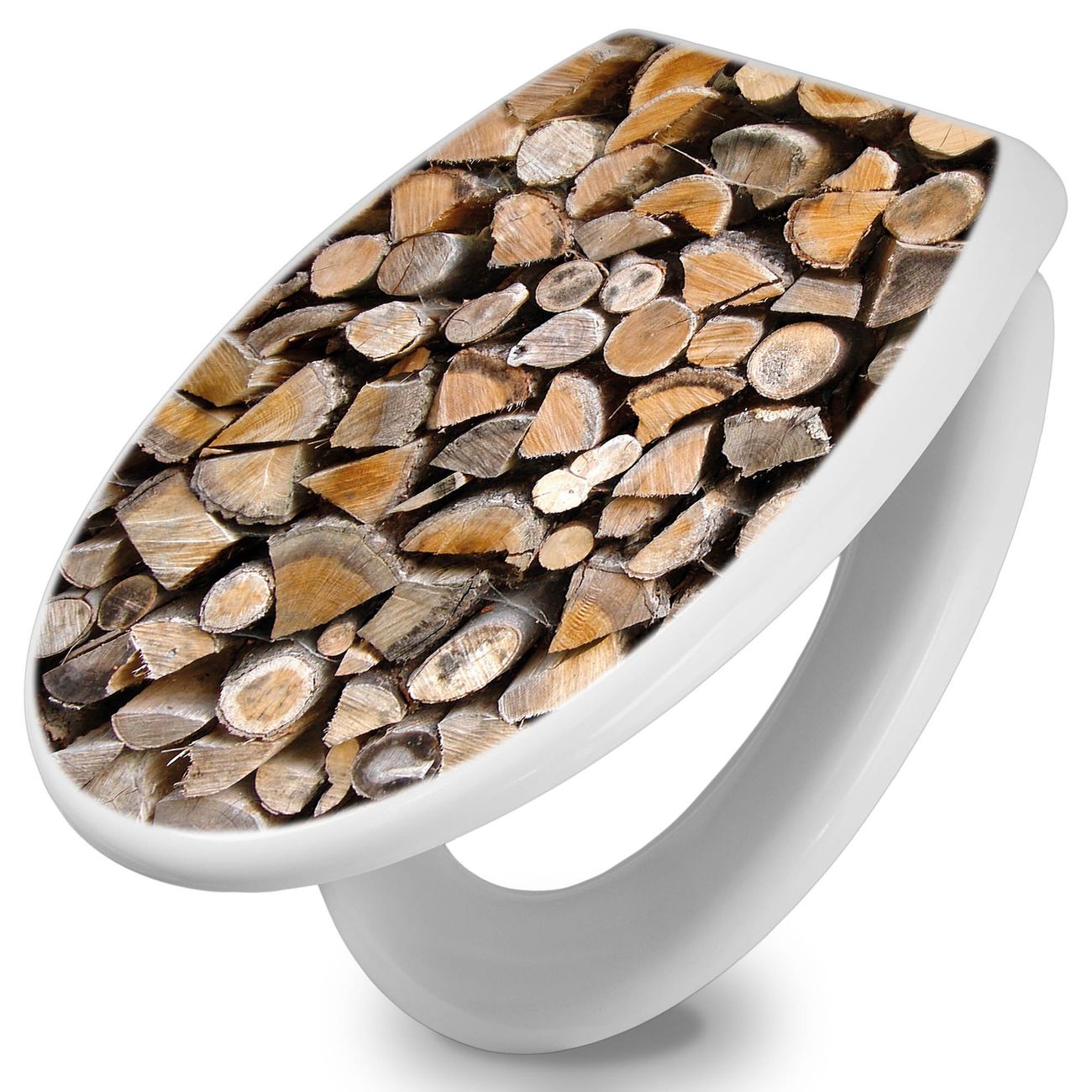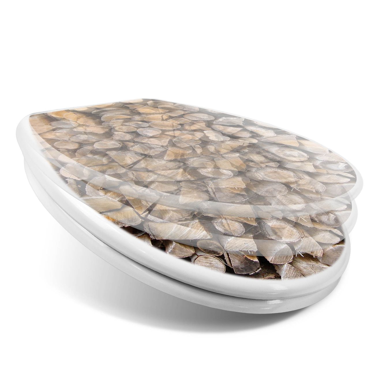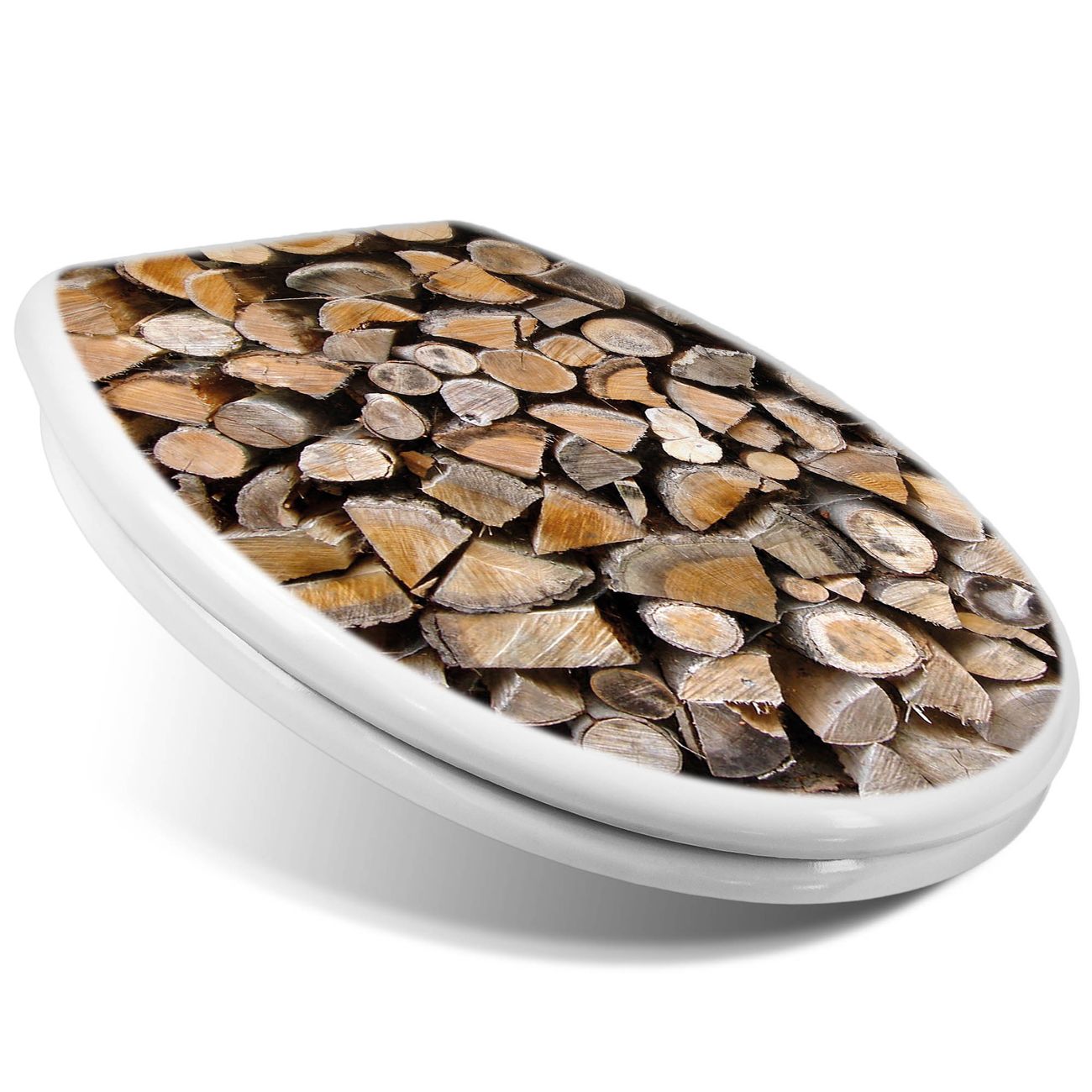 Toilettendeckel weiß mit Absenkautomatik Motiv Holzstapel