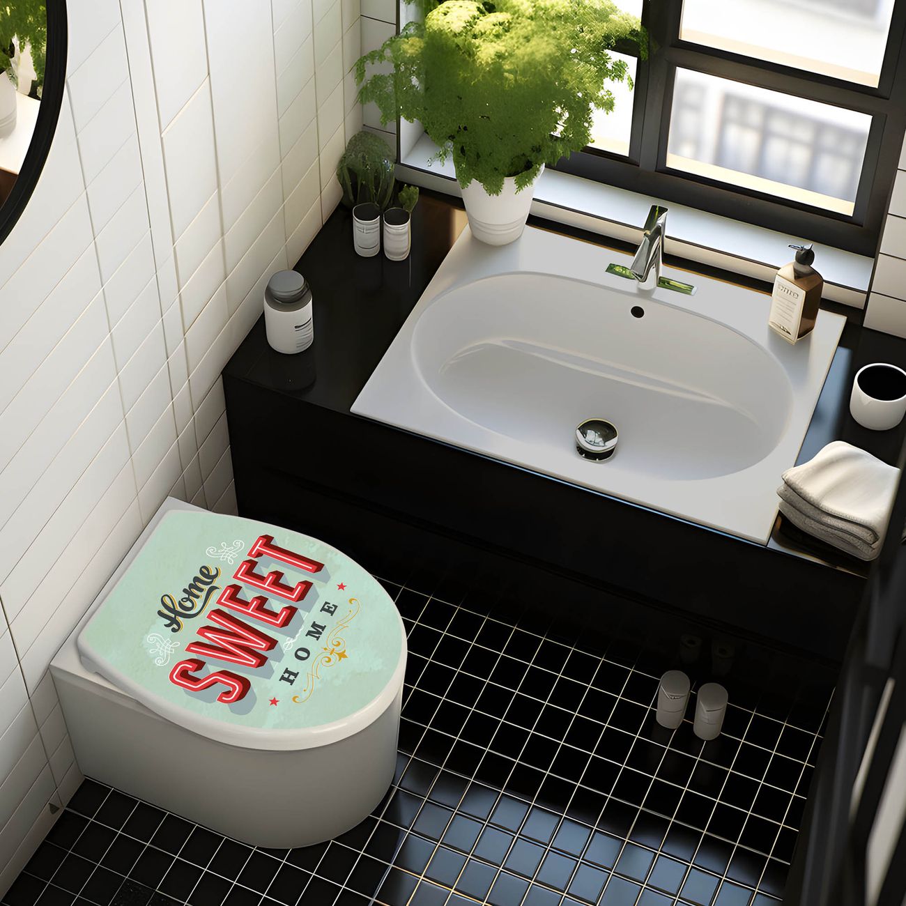 Toilettendeckel weiß mit Absenkautomatik Motiv Home Sweet Home