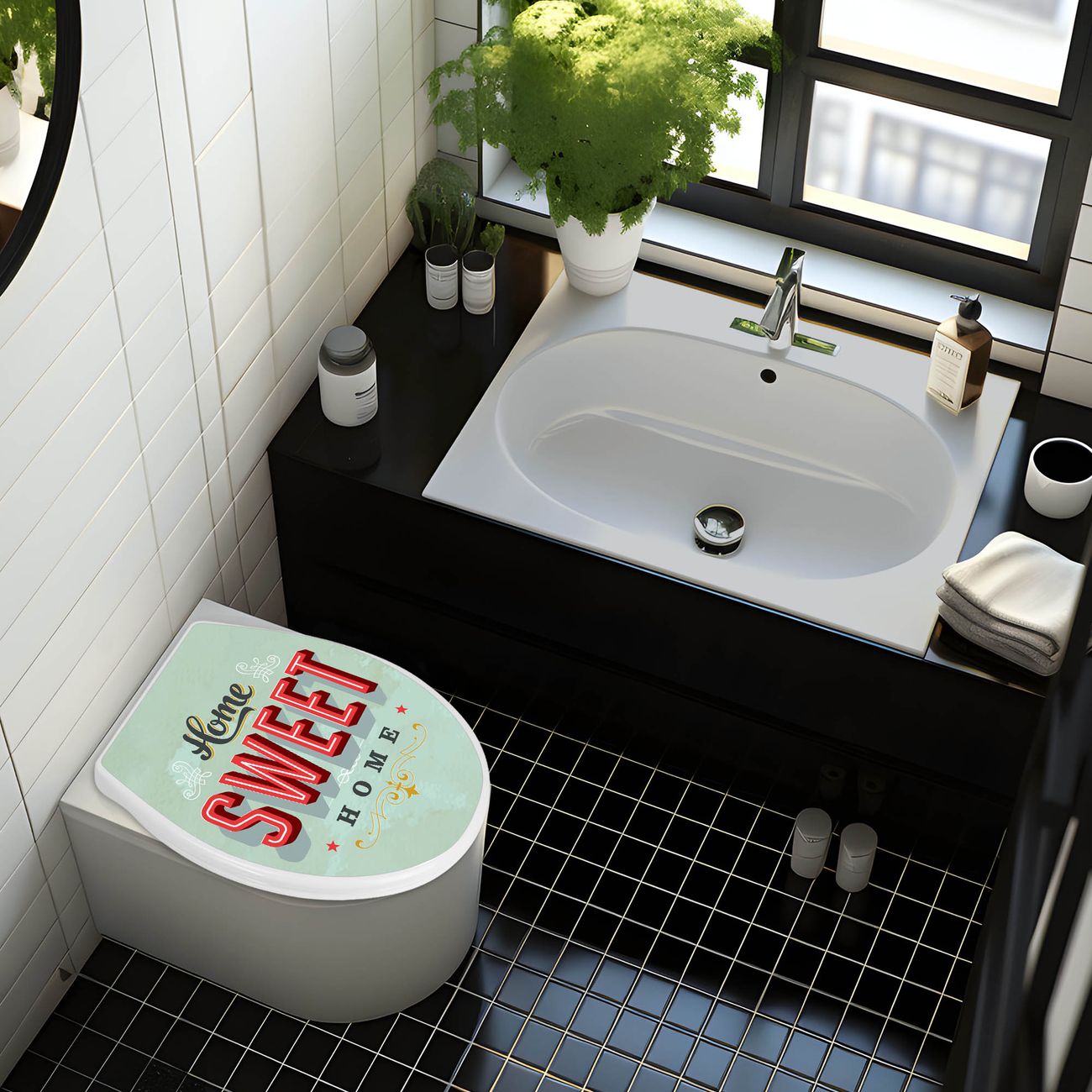 FUNKTION:Mit dem banjado Familien WC Sitz mit Absenkautomatik und dem Motiv Home Sweet Home verbinden Sie Design mit Funktionalität. Sie erhalten den Toilettendeckel in bewährt guter Qualität mit Montagematerial passend auf alle Euro-WC-Becken. Die Gesamtgröße beträgt 37cm x 44,5cm x 5cm, die Grundfarbe ist weiß.</p> DESIGN:Der Klodeckel in weiß mit Motiv Home Sweet Home hat eine ansprechende Optik, eine besondere Form und ist sehr stabil. Das Motiv besteht aus einer farbbrillianten Motivfolie, die durch ein Schutzlaminat zusätzlich vor Kratzern schützt. Der integrierte Kindersitz fügt sich harmonisch ein. DETAILS:Der Toilettensitz mit Soft Close besteht aus hochwertigem Polypropylen, ist geruchlos, ungiftig und kann mit handelsüblicher Seife gereinigt werden. Die Montage kann von von oben oder von unten erfolgen und ist kinderleicht. NUTZEN:Mit Hilfe der detaillierten Aufbauanleitung ermöglichen wir eine schnelle und unkomplizierte Montage. Die banjado Klobrille ist universell geeignet für alle Euro-WC-Schüsseln. Der Kindersitz kann unkompliziert entfernt werden. BANJADO:Ihr WC-Deckel wird in Sachsen in einer kleinen Manufaktur von Hand veredelt. Die Motivfolie ist lösungsmittelfrei und schutzlaminiert für einen langen Halt. Wir wünschen viel Freude bei der Auswahl eines schönen Motivs.