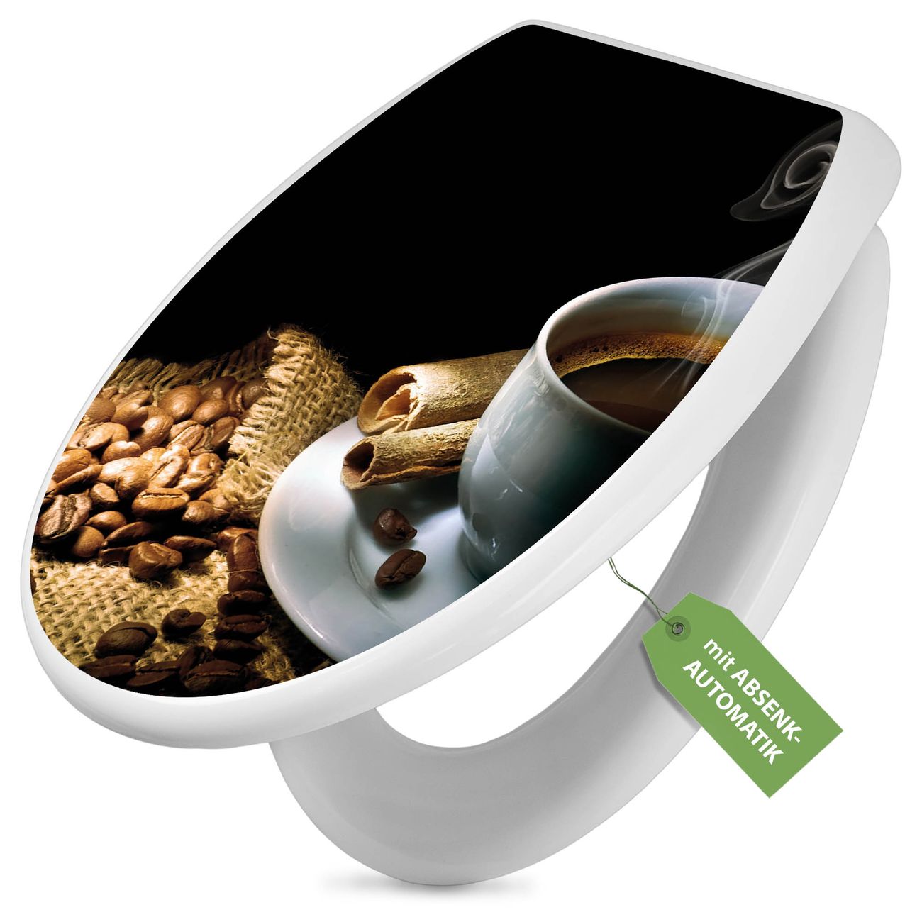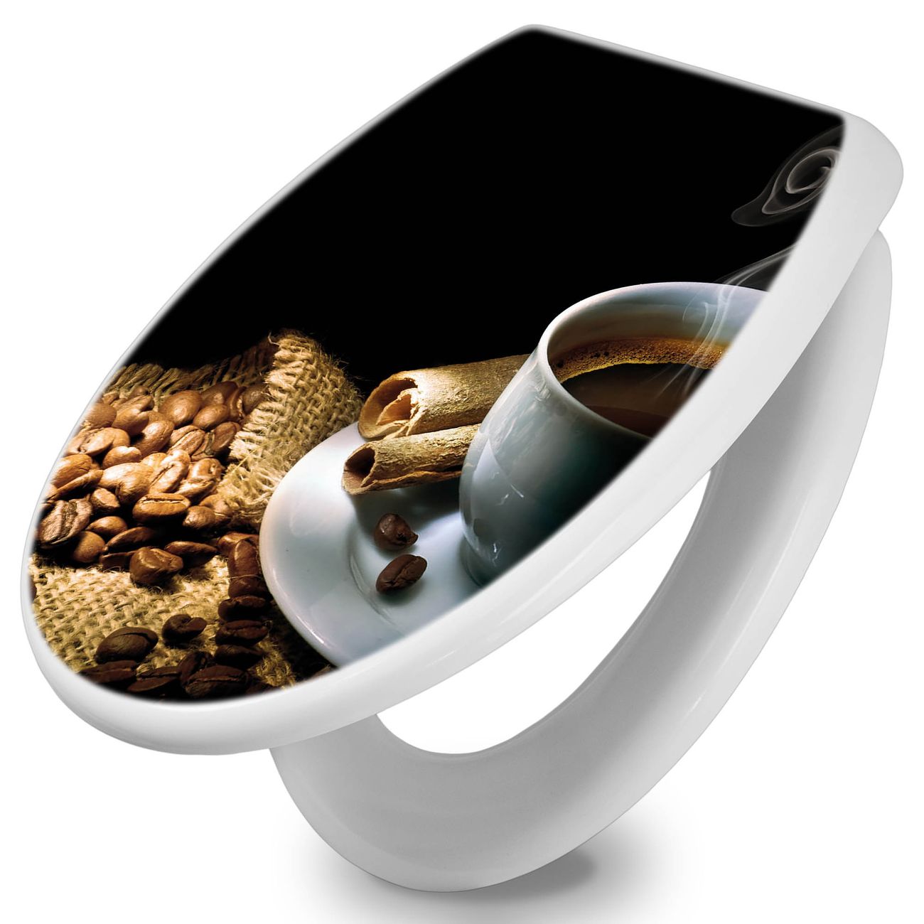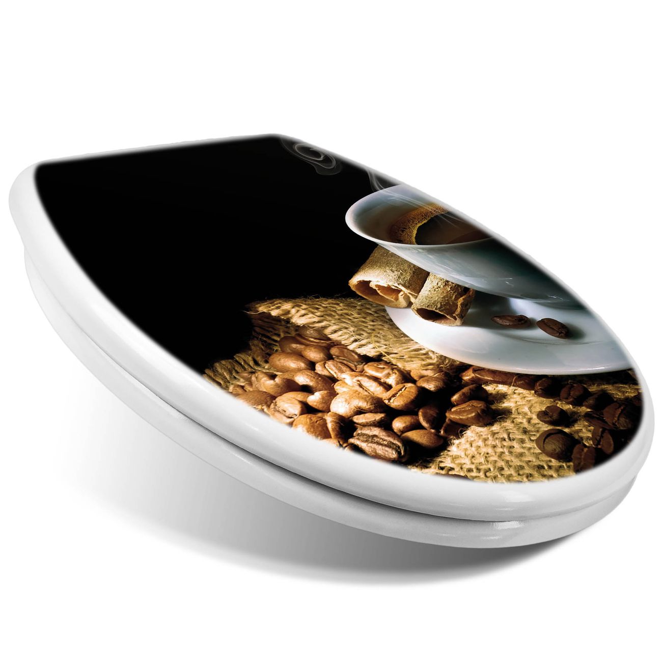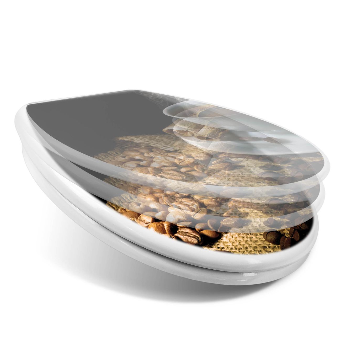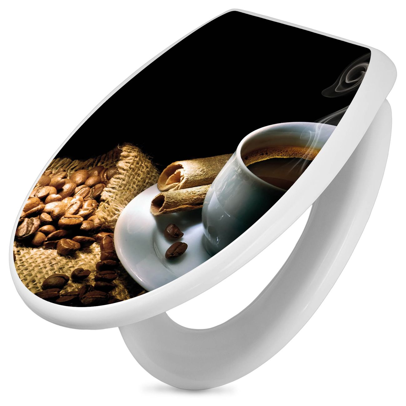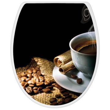 Toilettendeckel weiß mit Absenkautomatik Motiv Hot Coffee