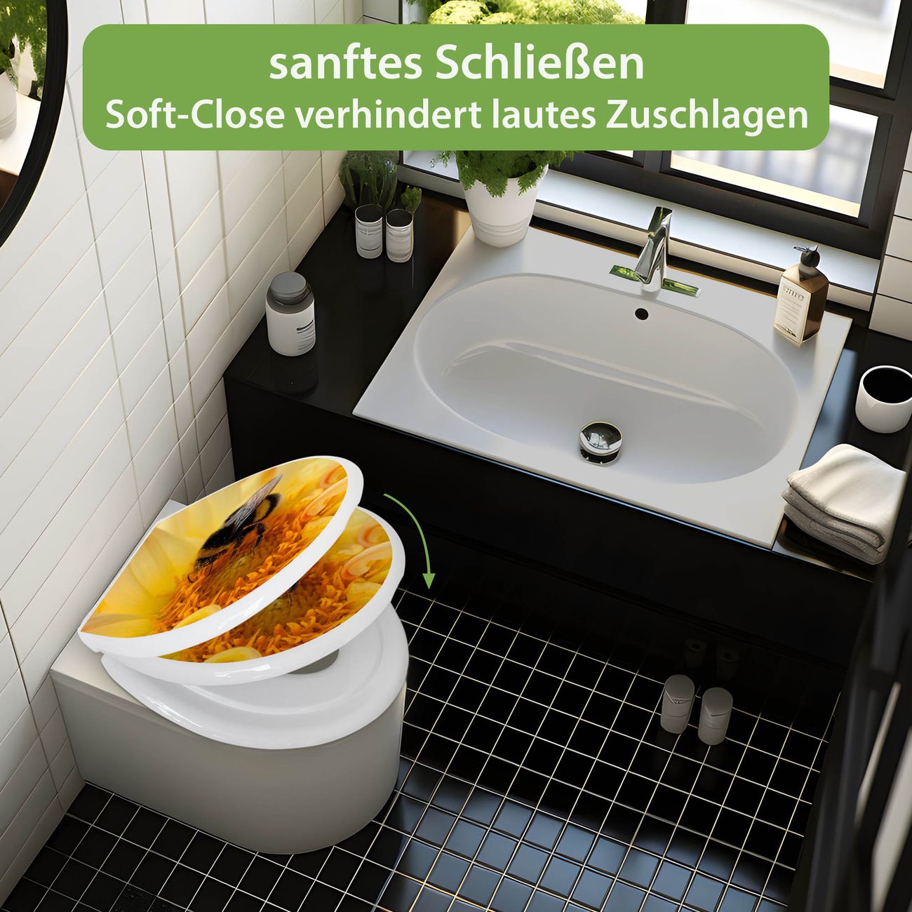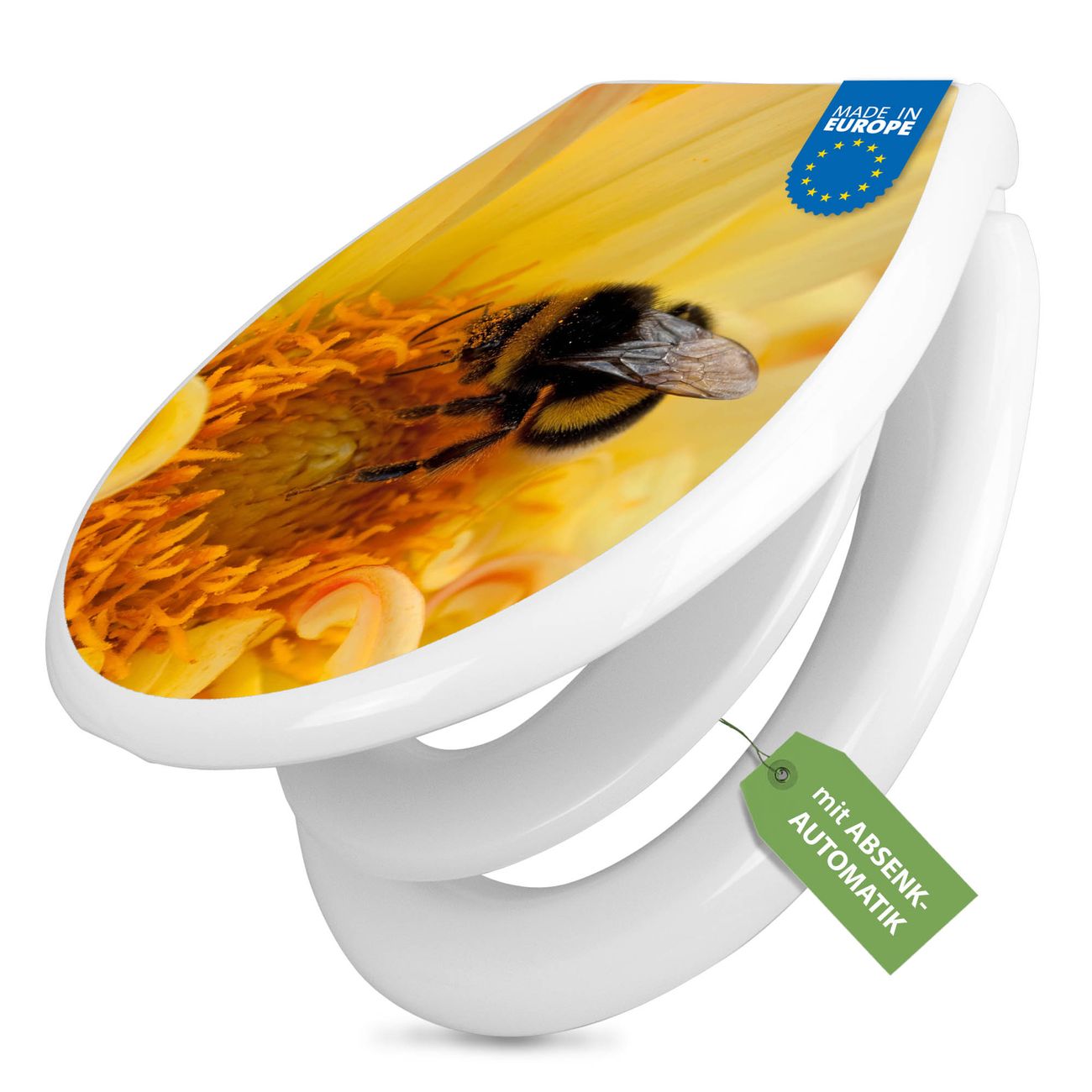 Toilettendeckel weiß mit Absenkautomatik Motiv Hummel