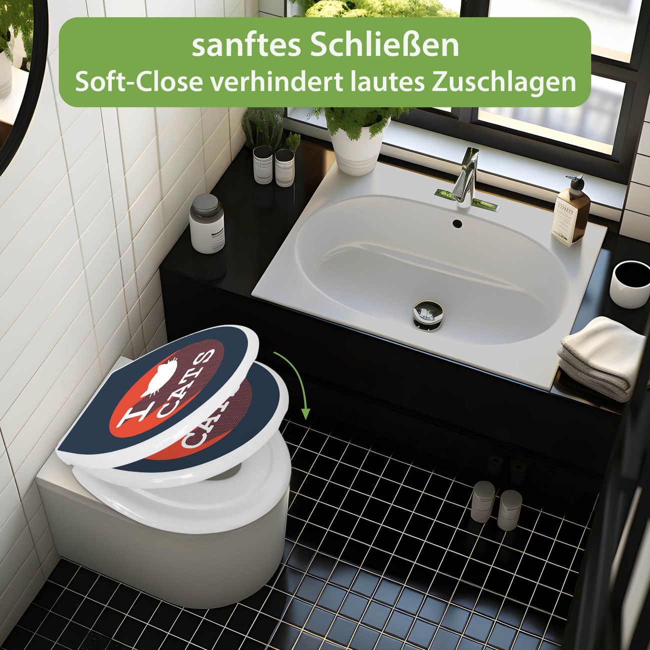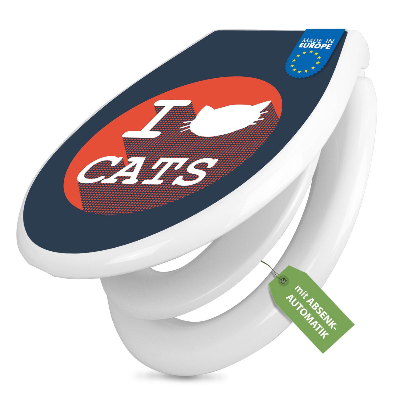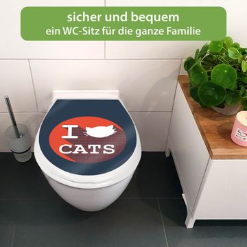 Toilettendeckel weiß mit Absenkautomatik Motiv I Love Cats