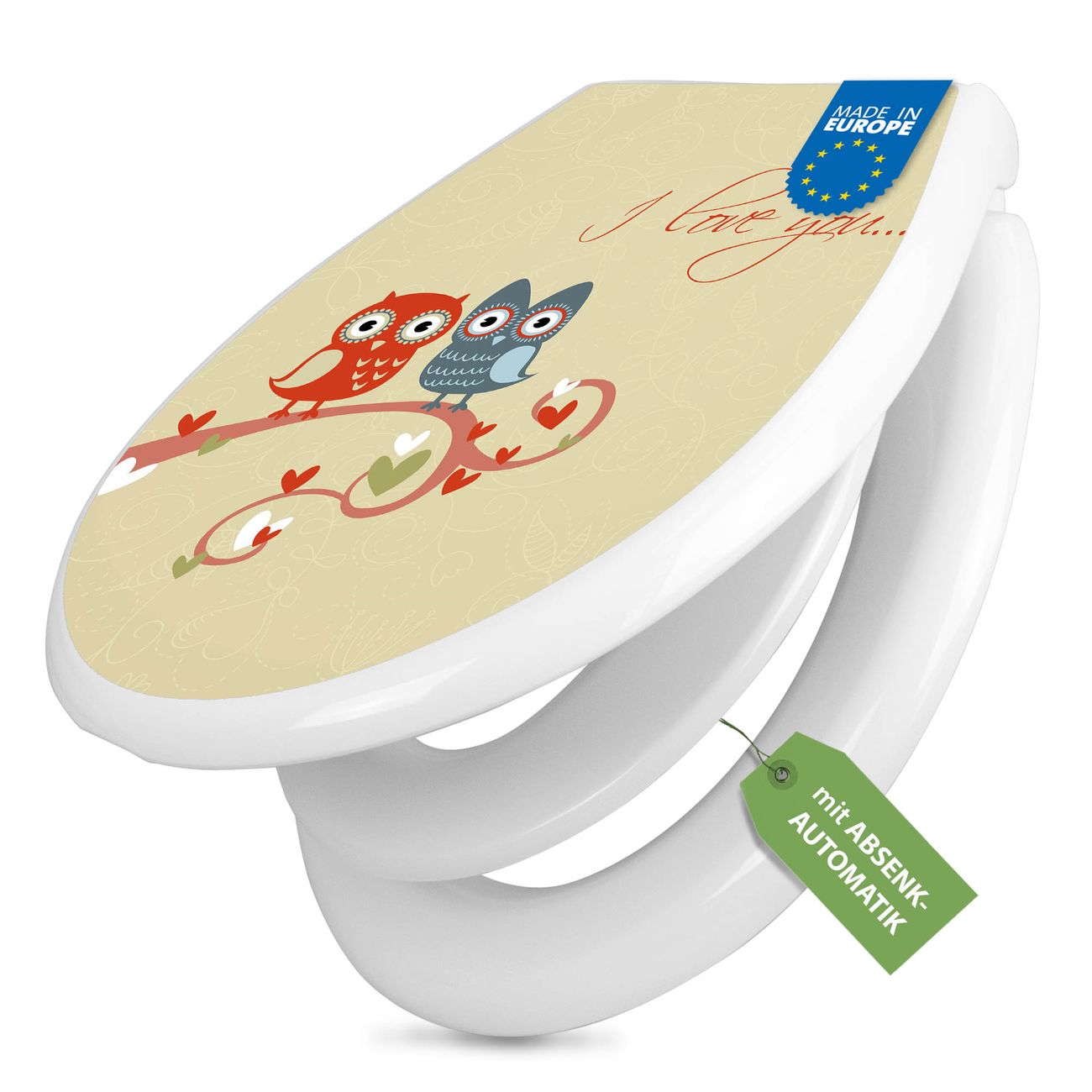 Toilettendeckel weiß mit Absenkautomatik Motiv I Love You