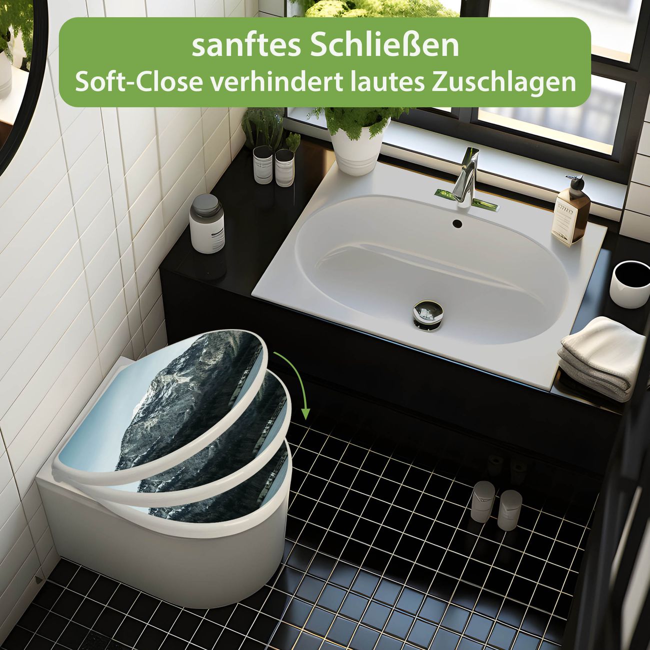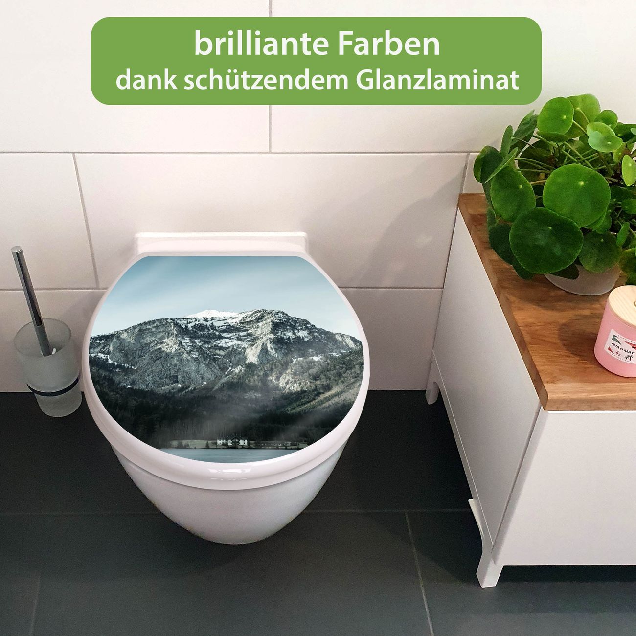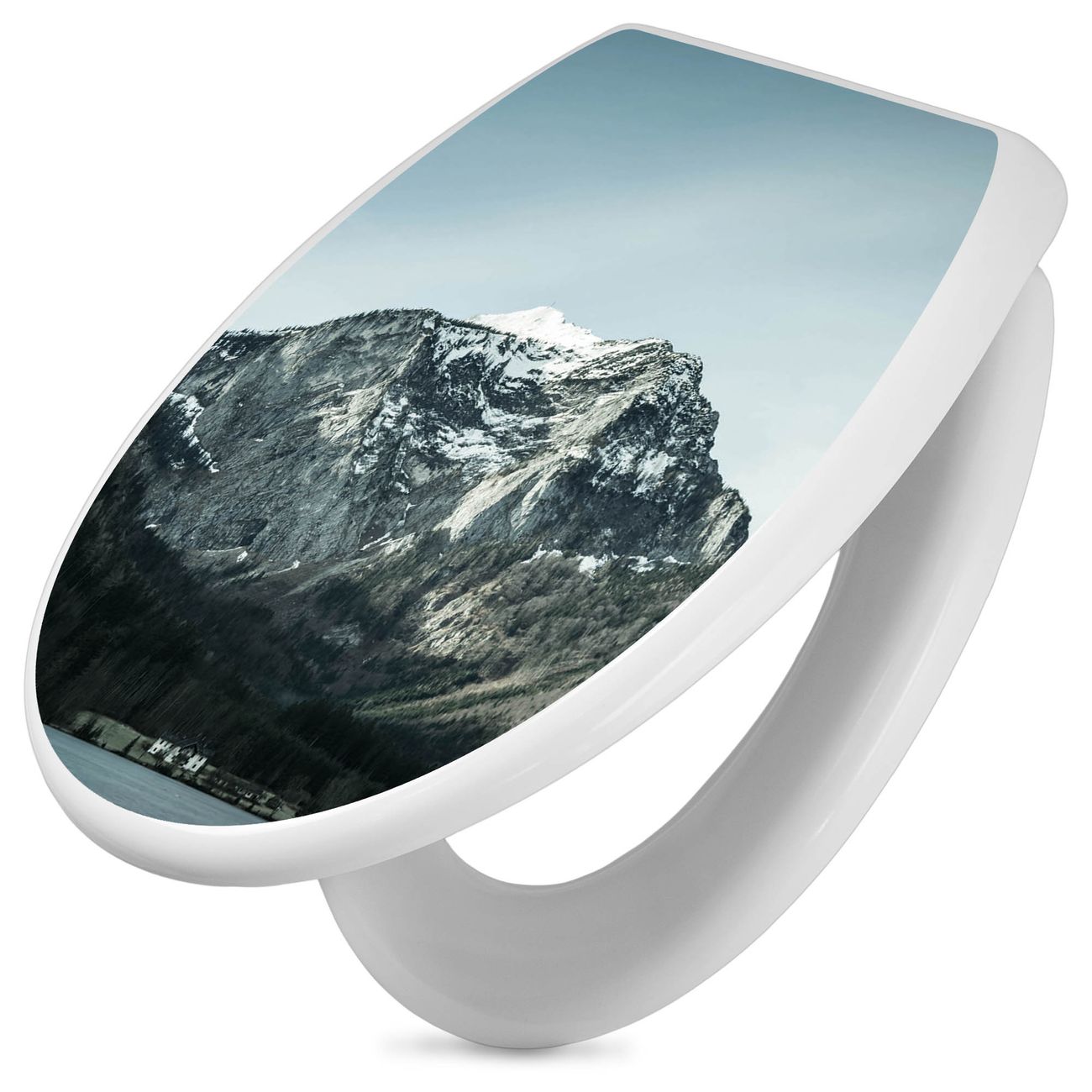 Toilettendeckel weiß mit Absenkautomatik Motiv Im Schatten des Bergs